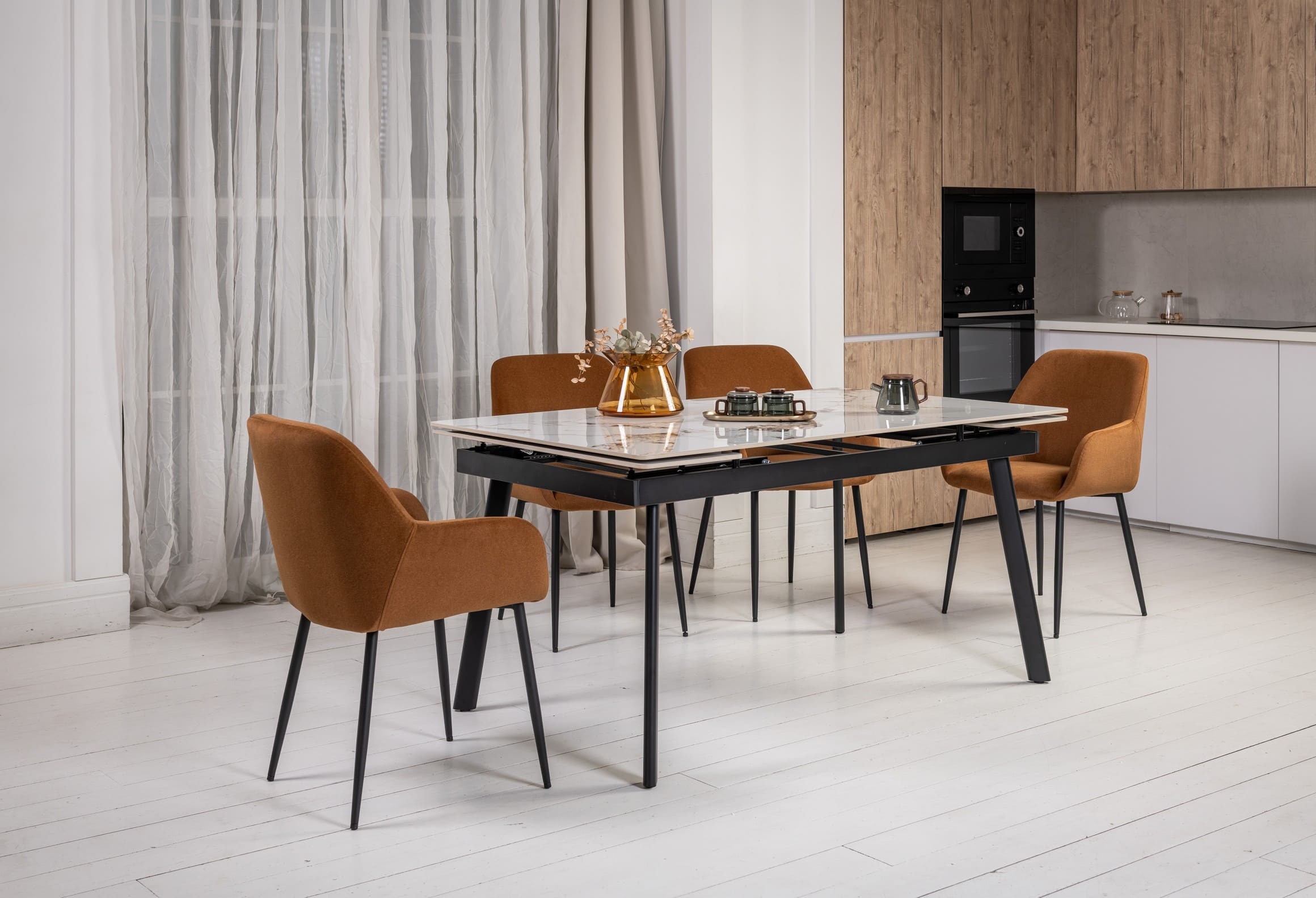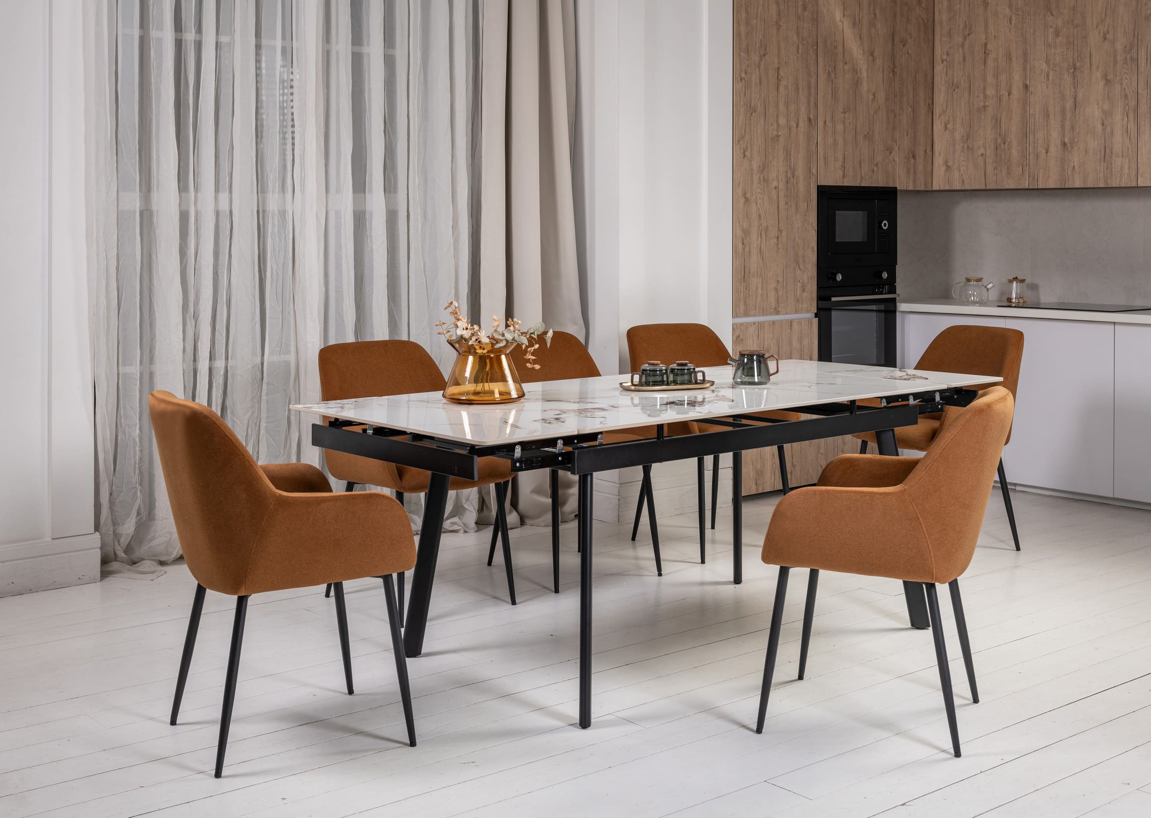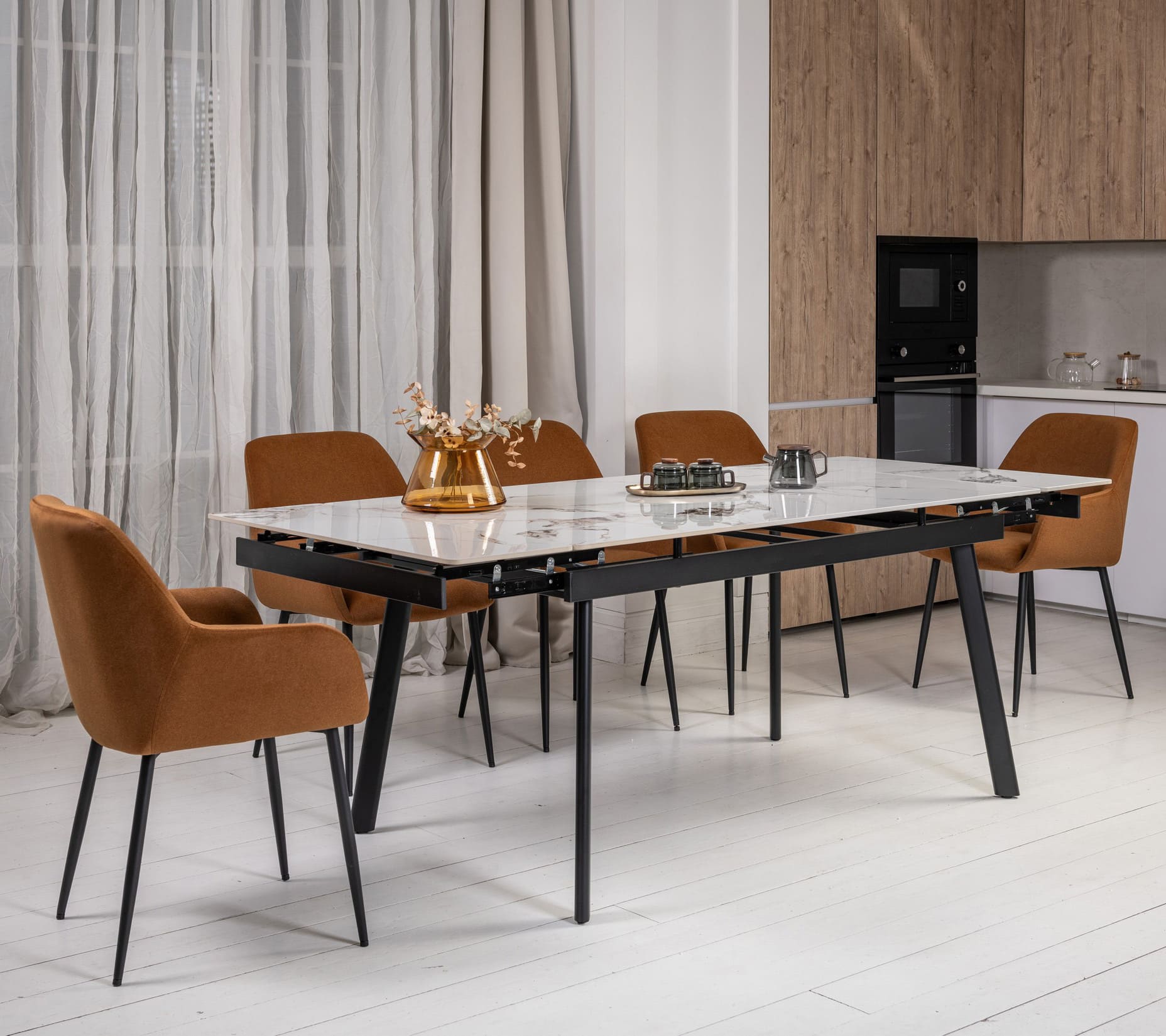 Функціональність моделі не поступається її дизайну. Завдяки продуманому боковому механізму стіл легко трансформується: у зібраному вигляді його довжина становить 150 см, а при розкладанні — цілих 210 см. Це дозволяє організувати простір під будь-які потреби — від камерної вечері до масштабного святкування.