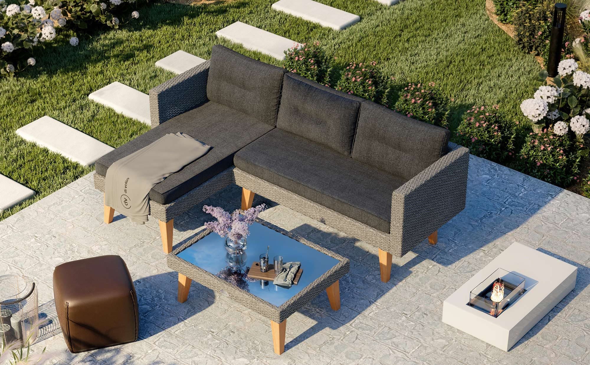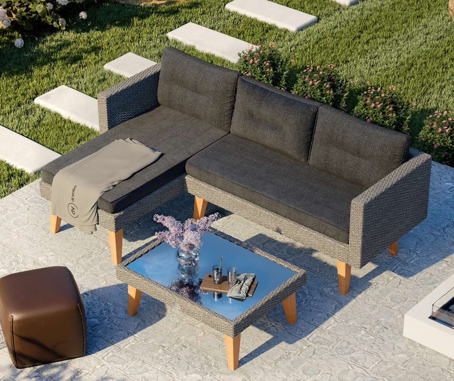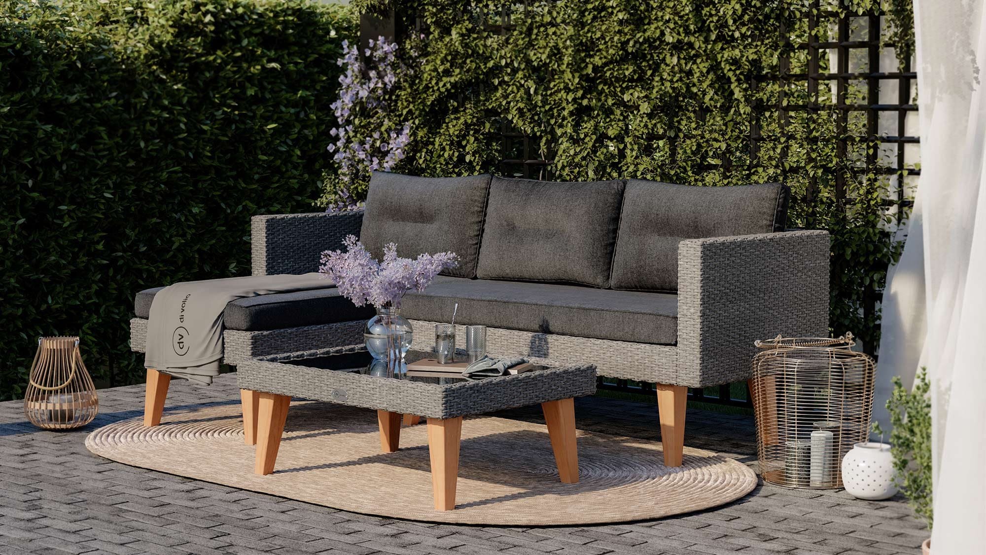 - Каркас меблів виготовлений з алюмінію, який забезпечує надійний захист від передчасної корозії та гарантує тривалий термін служби.