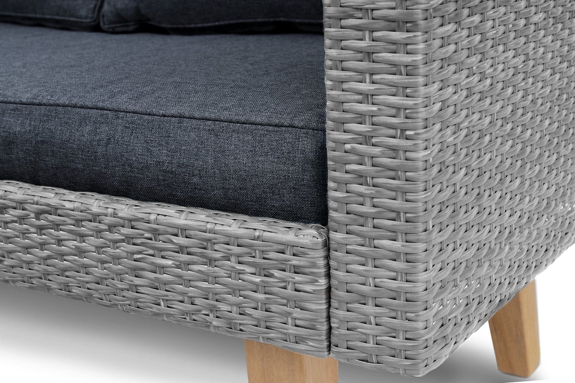 - Верхня оббивка, виготовлена зі штучного ротангу, відмінно протистоїть палючому сонцю, сильними дощами та будь-яким іншим погодним умовам.
