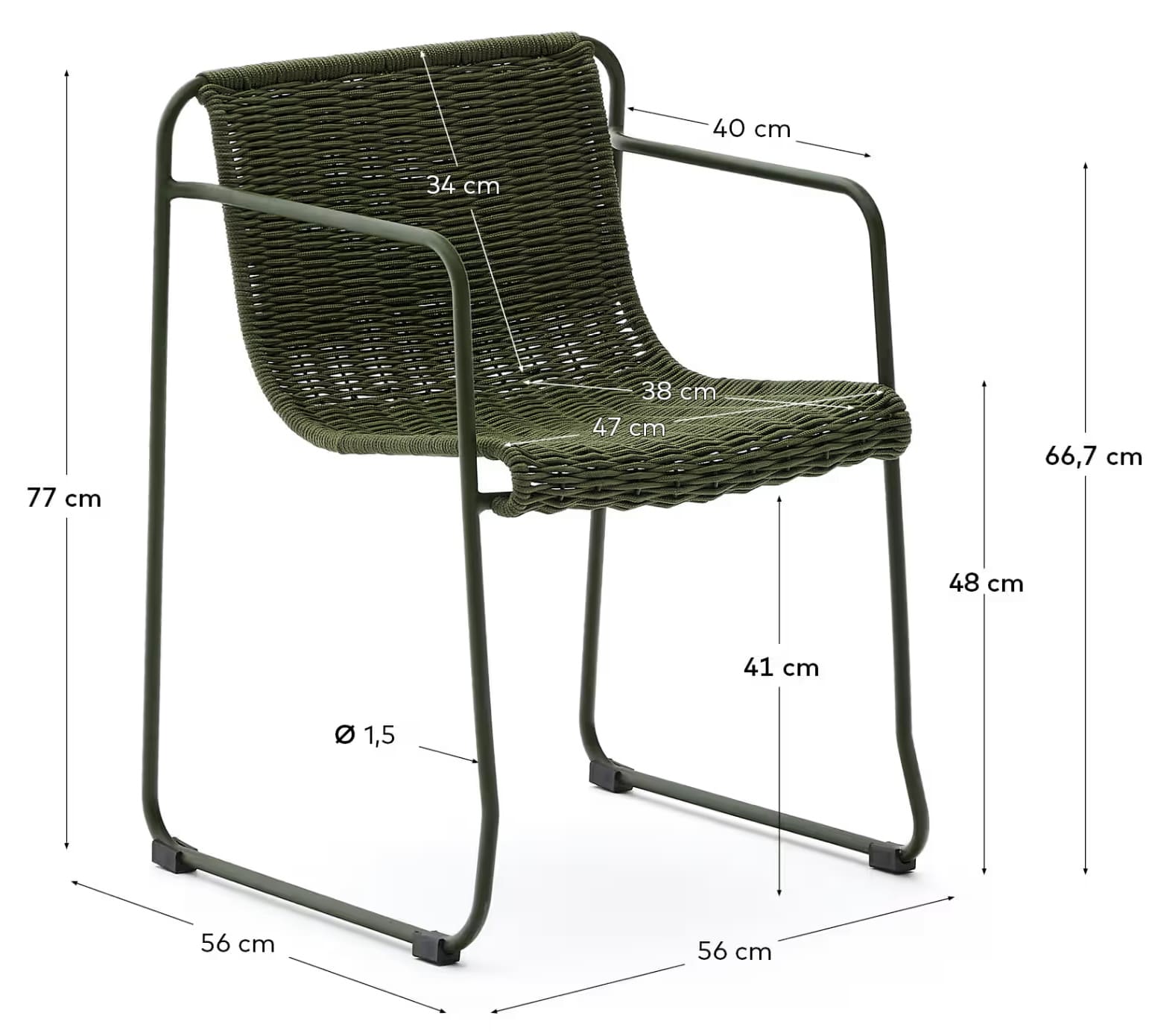 Садовий комплект Kave Home Maurina Зелений (стіл та 6 стільців) - стильне рішення для тераси, саду або кафе.