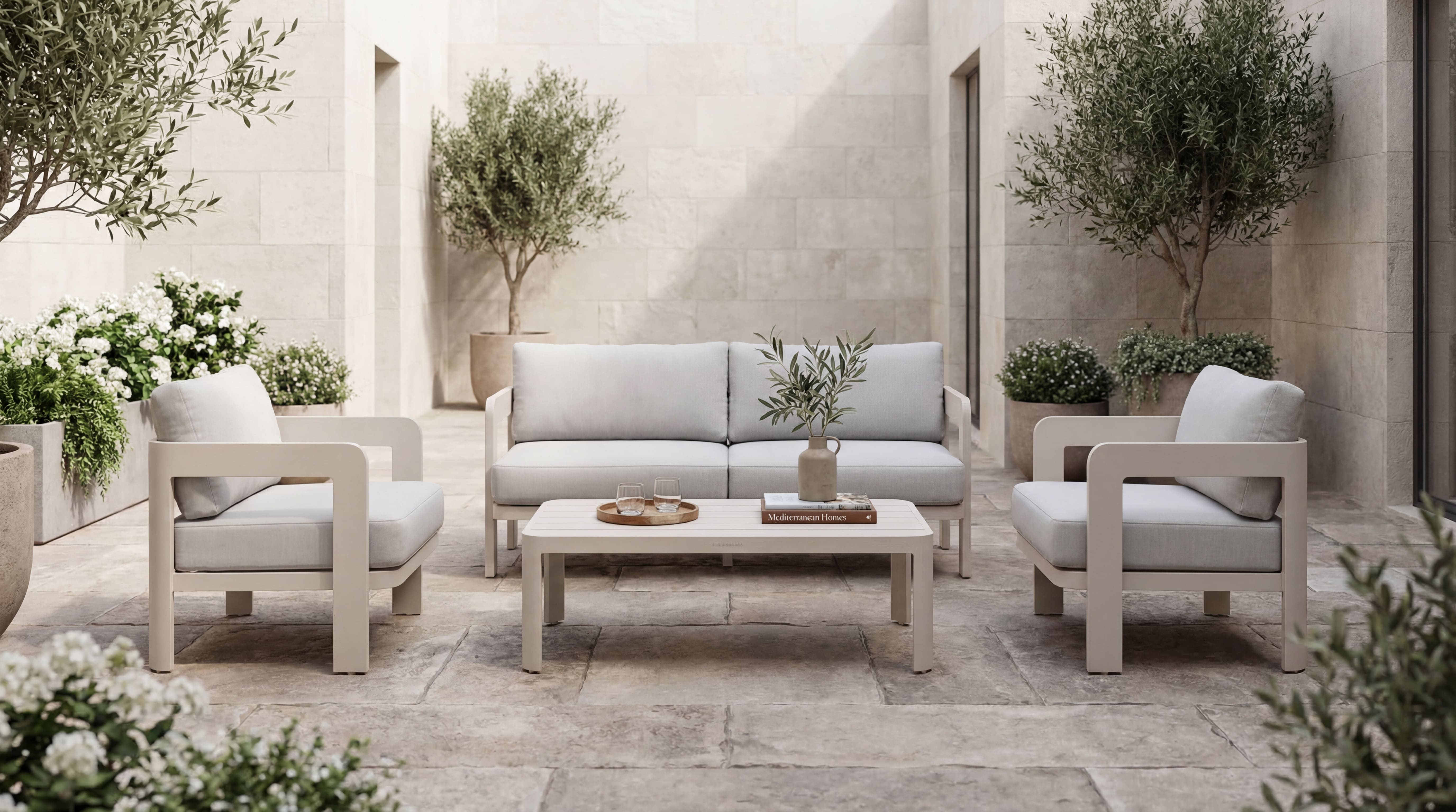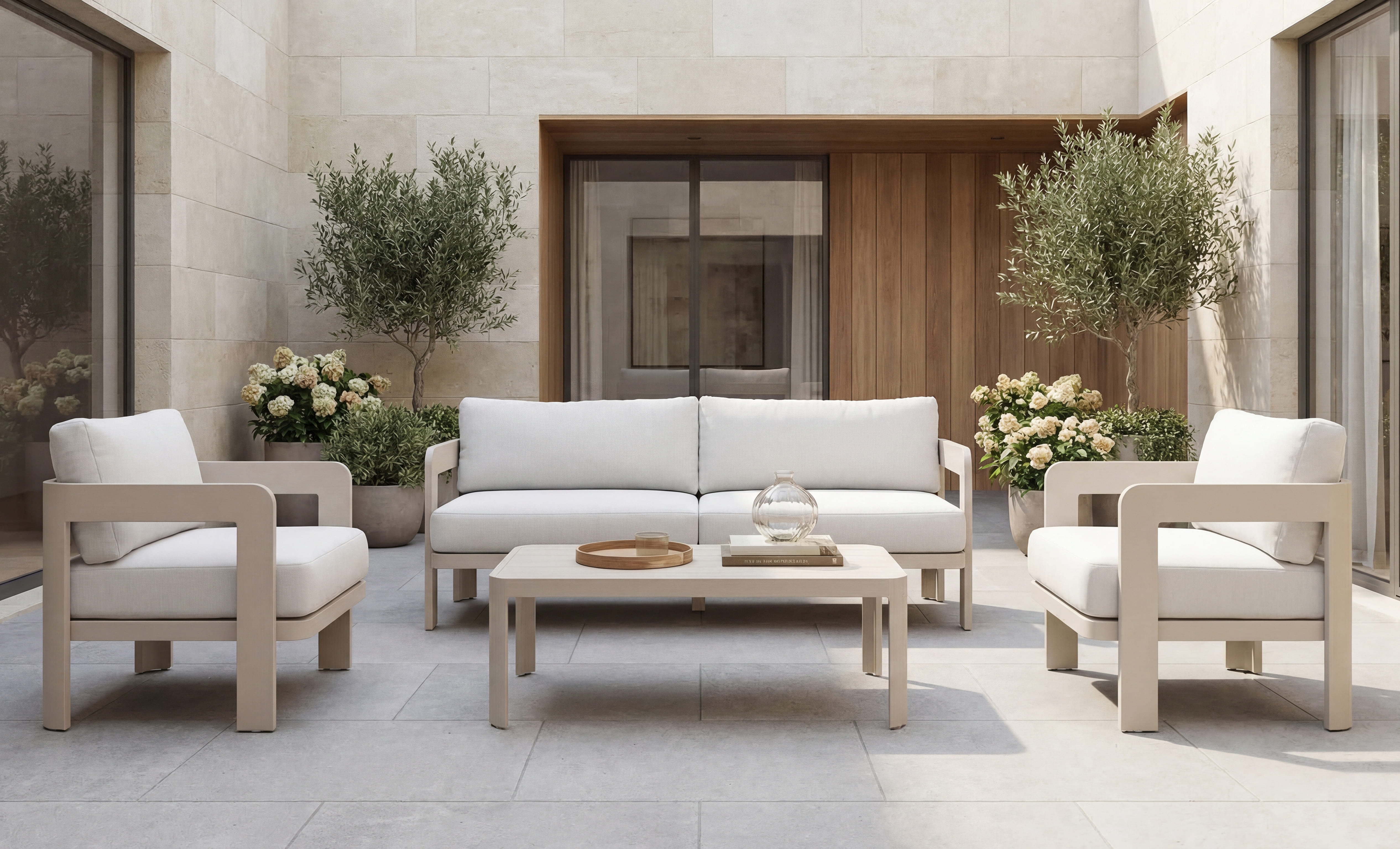 Дизайнерський комплект садових меблів Саванна ODS-3 від Vetro – це сучасне рішення для оформлення тераси, саду чи лаунж-зони. Каркас із пофарбованого алюмінію у поєднанні з м'якими подушками створює лаконічний, легкий та елегантний зовнішній вигляд.