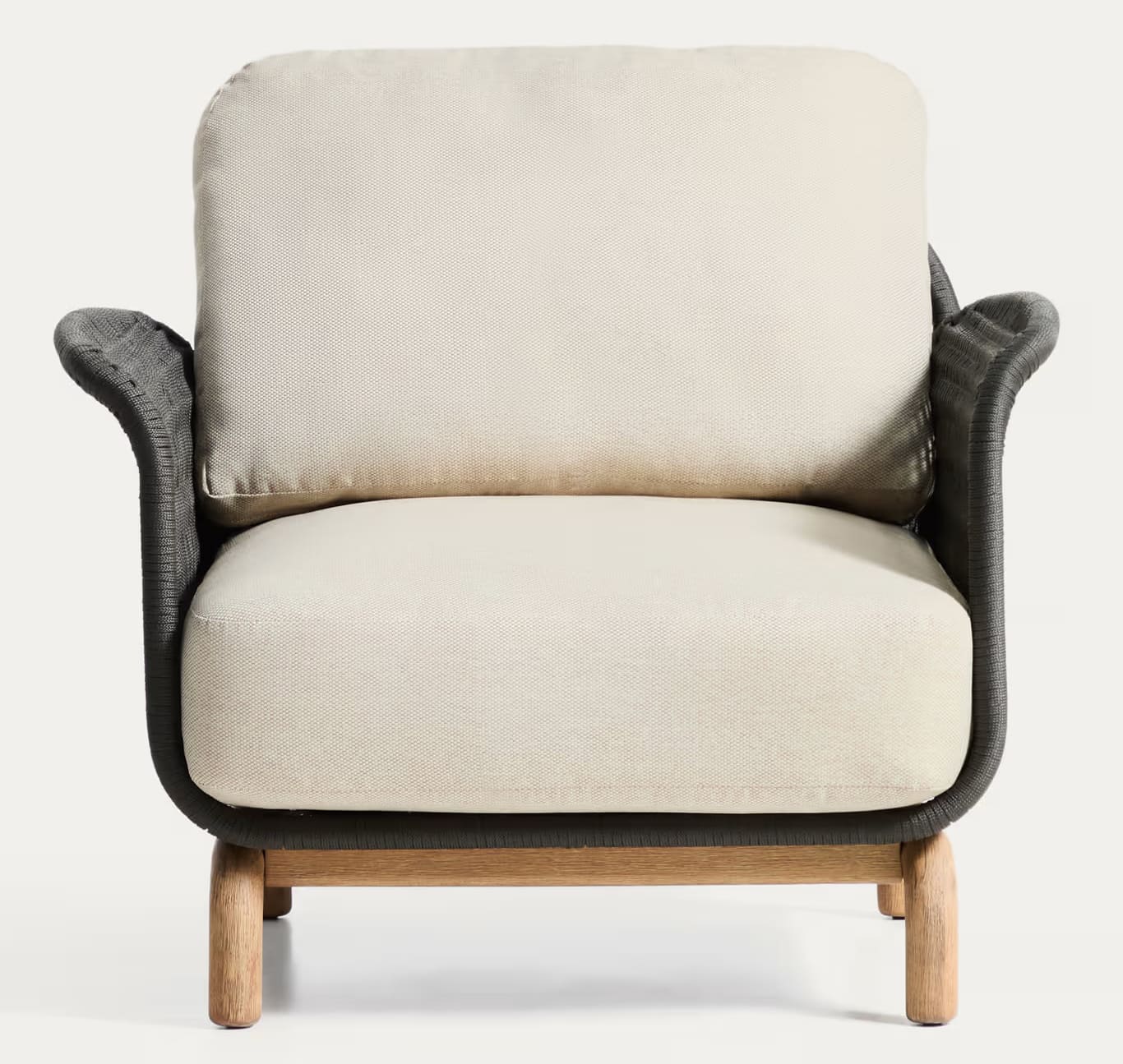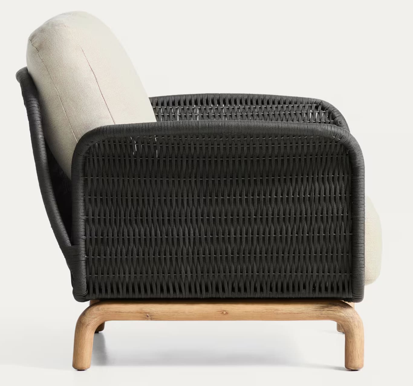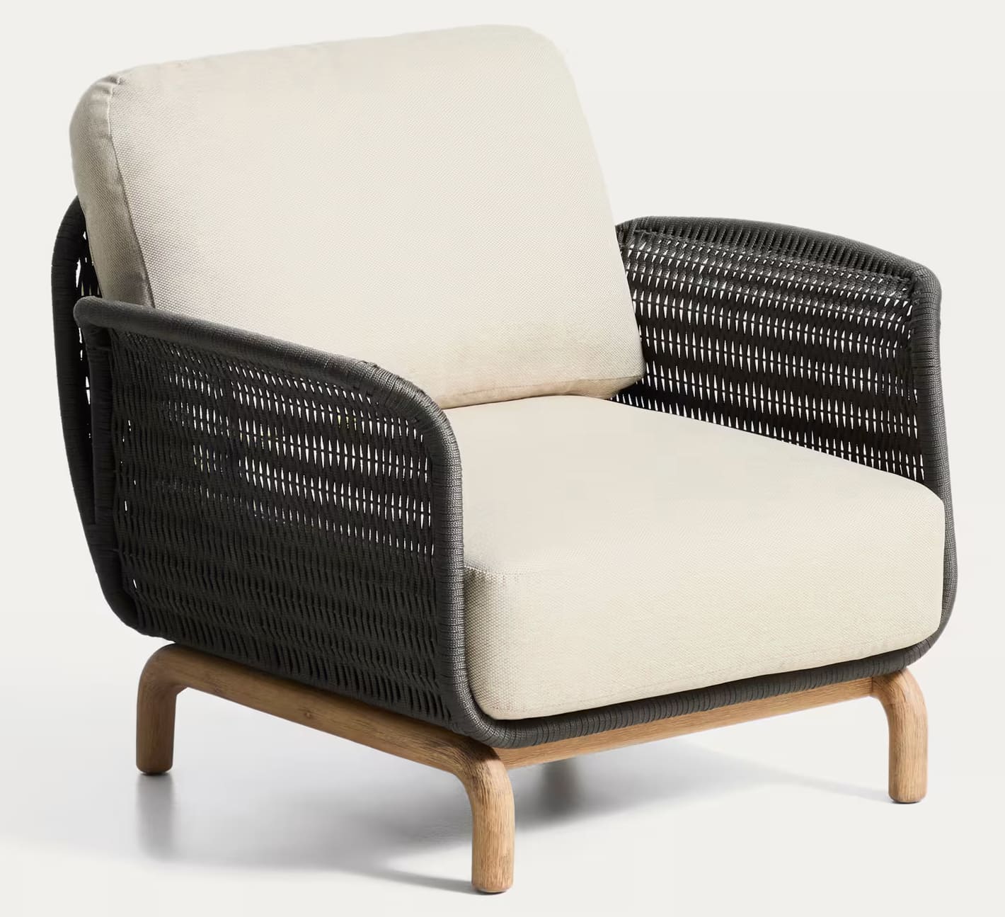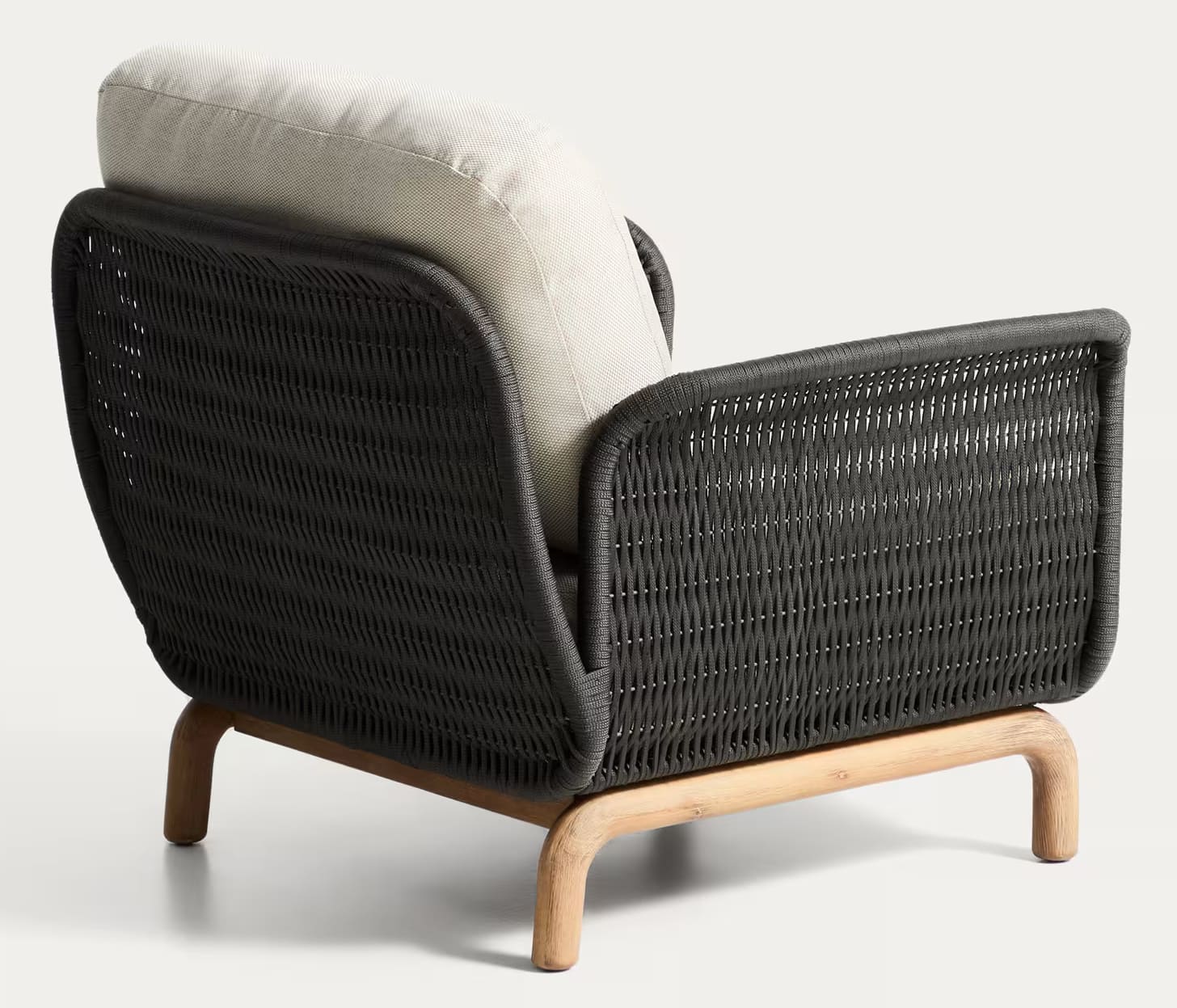 Крісло Kave Home Alipa масив акації / плетений шнур графіт (FSC 100%) - елегантний дизайнерський елемент, який поєднує природні матеріали, виразну текстуру та сучасну естетику, ідеально доповнюючи простір тераси, саду чи стильного інтер'єру будинку.
