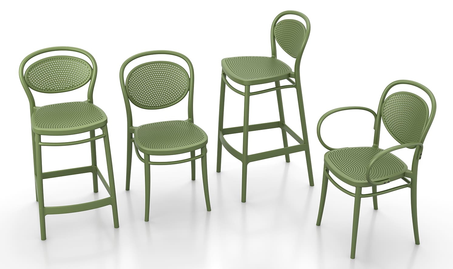 Напівбарний стілець пластиковий Siesta Marcel Bar 65 Чорний - це сучасне дизайнерське рішення для тераси, кухні, бару або зони HoReCa. Модель виконана з міцного поліпропілену, що забезпечує високу стійкість до навантажень та зовнішніх впливів.