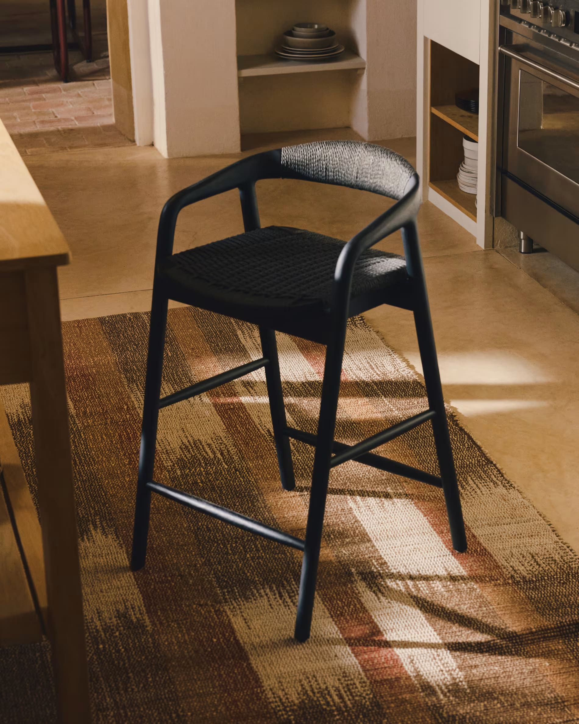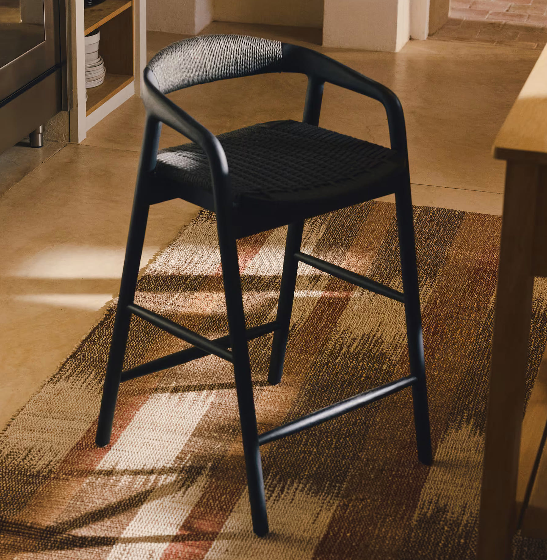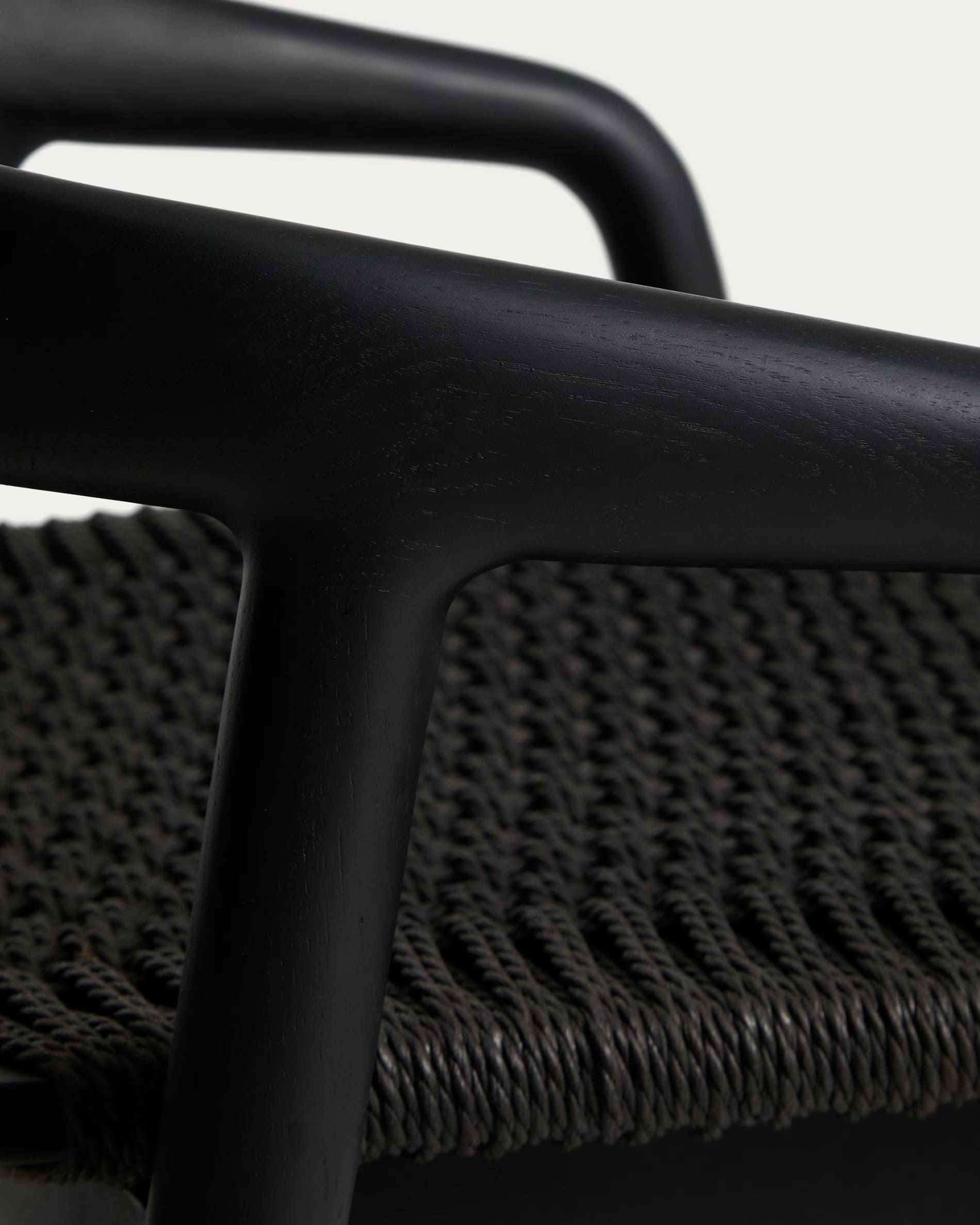 - Стілець виготовлений із масиву дуба, сидіння та спинка — зі сплетеної вручну мотузки.
