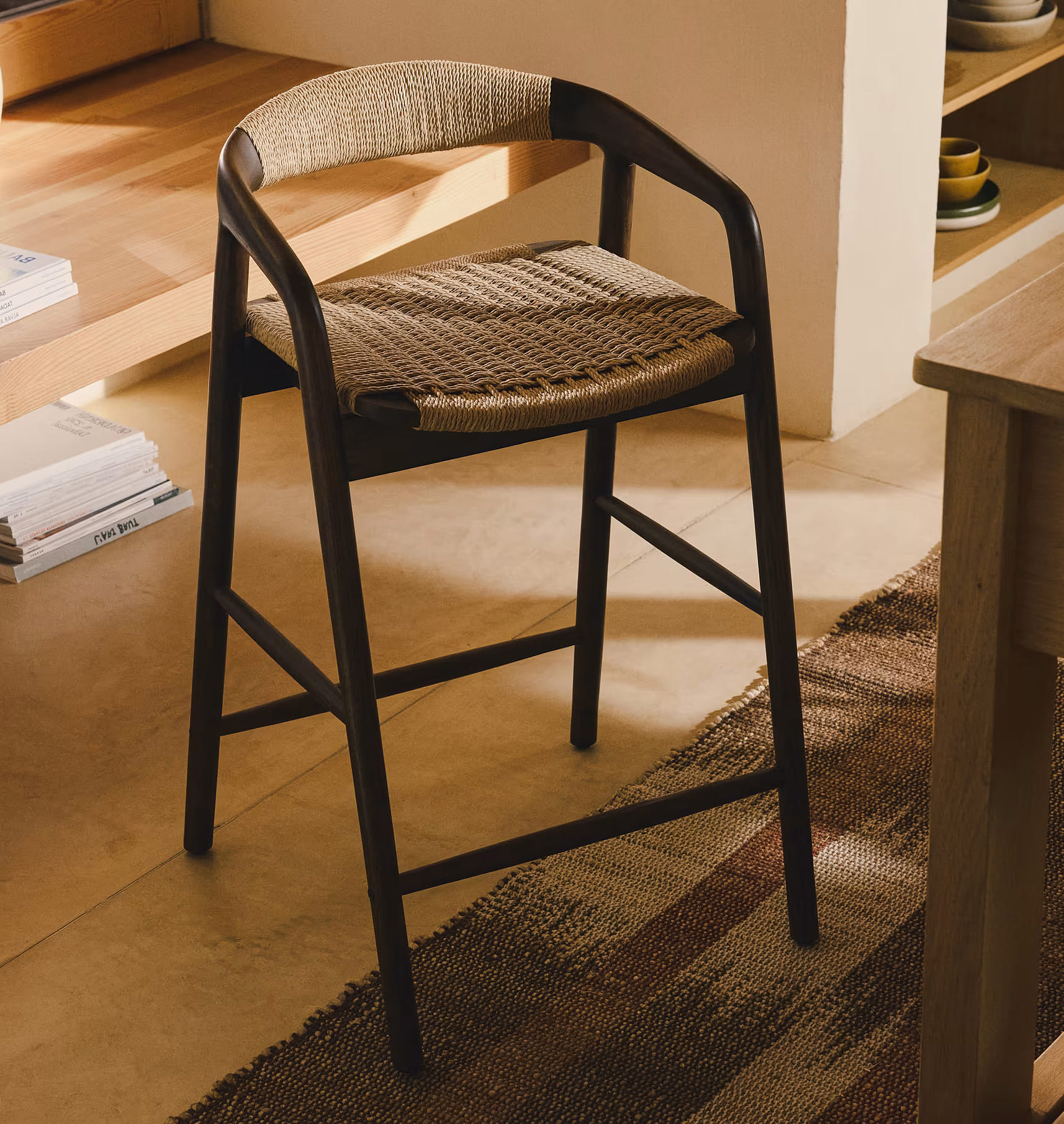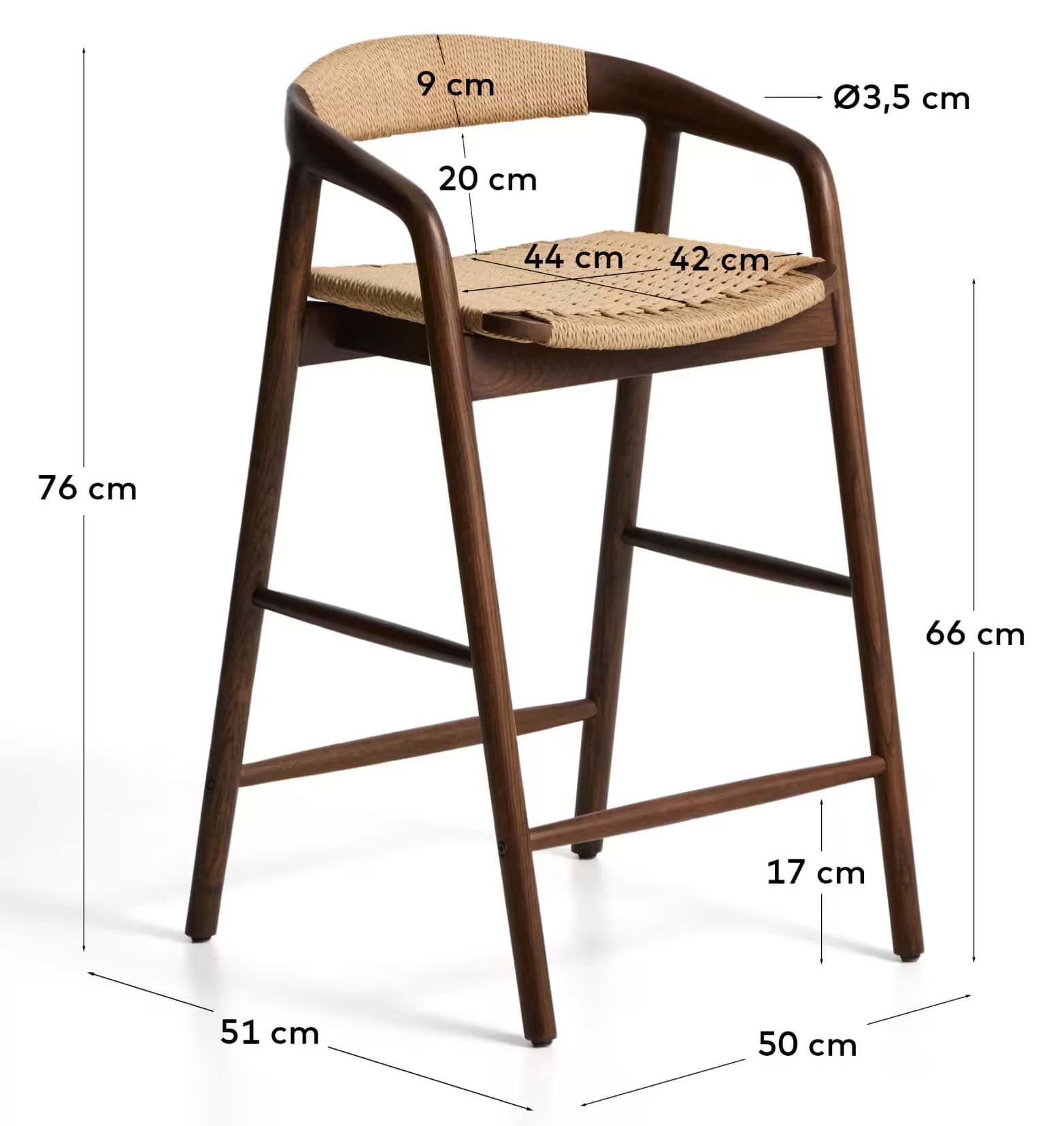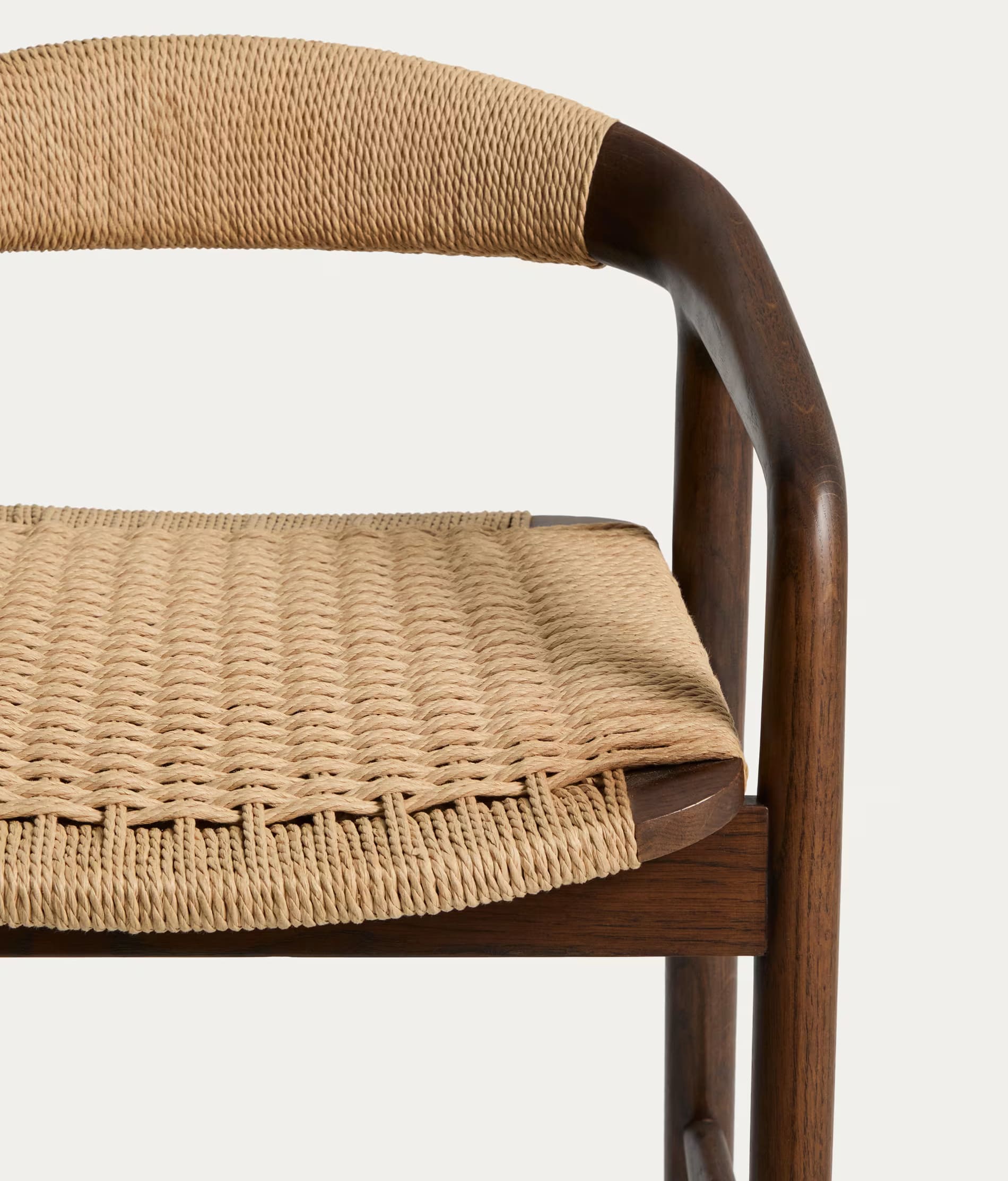 - Стілець виготовлений із масиву дуба, сидіння та спинка — зі сплетеної вручну мотузки.
