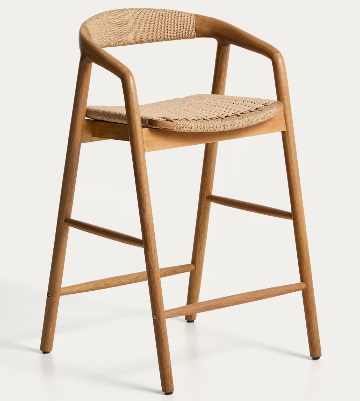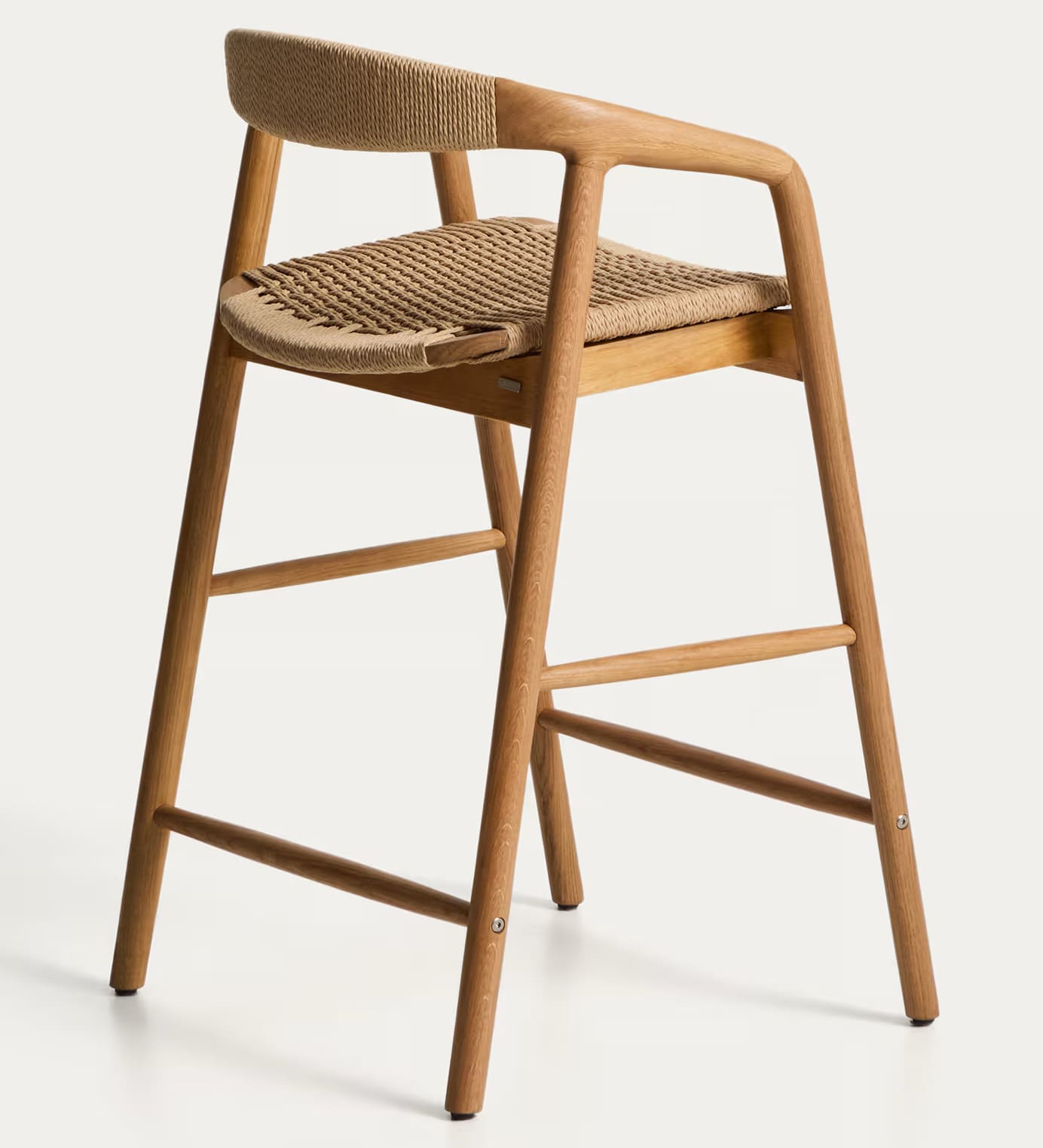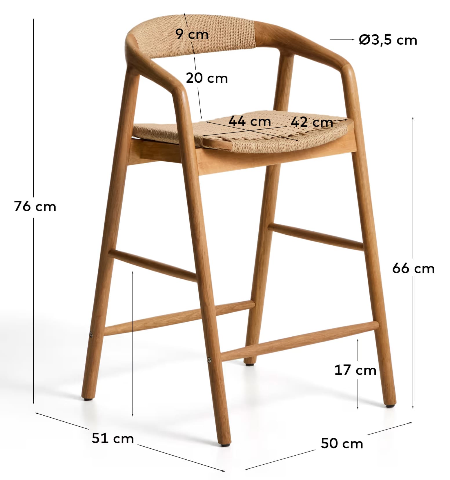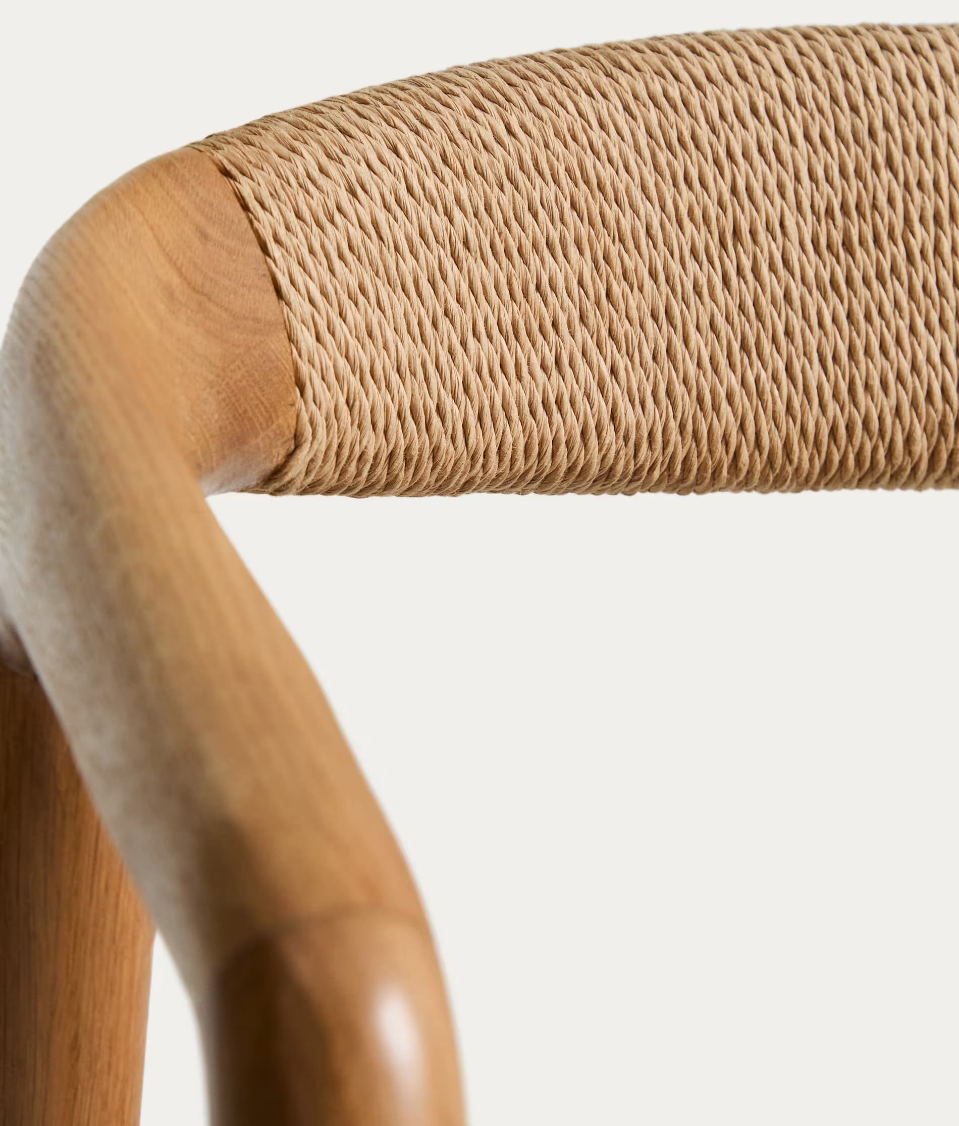 - Стілець виготовлений із масиву дуба, сидіння та спинка — зі сплетеної вручну мотузки.