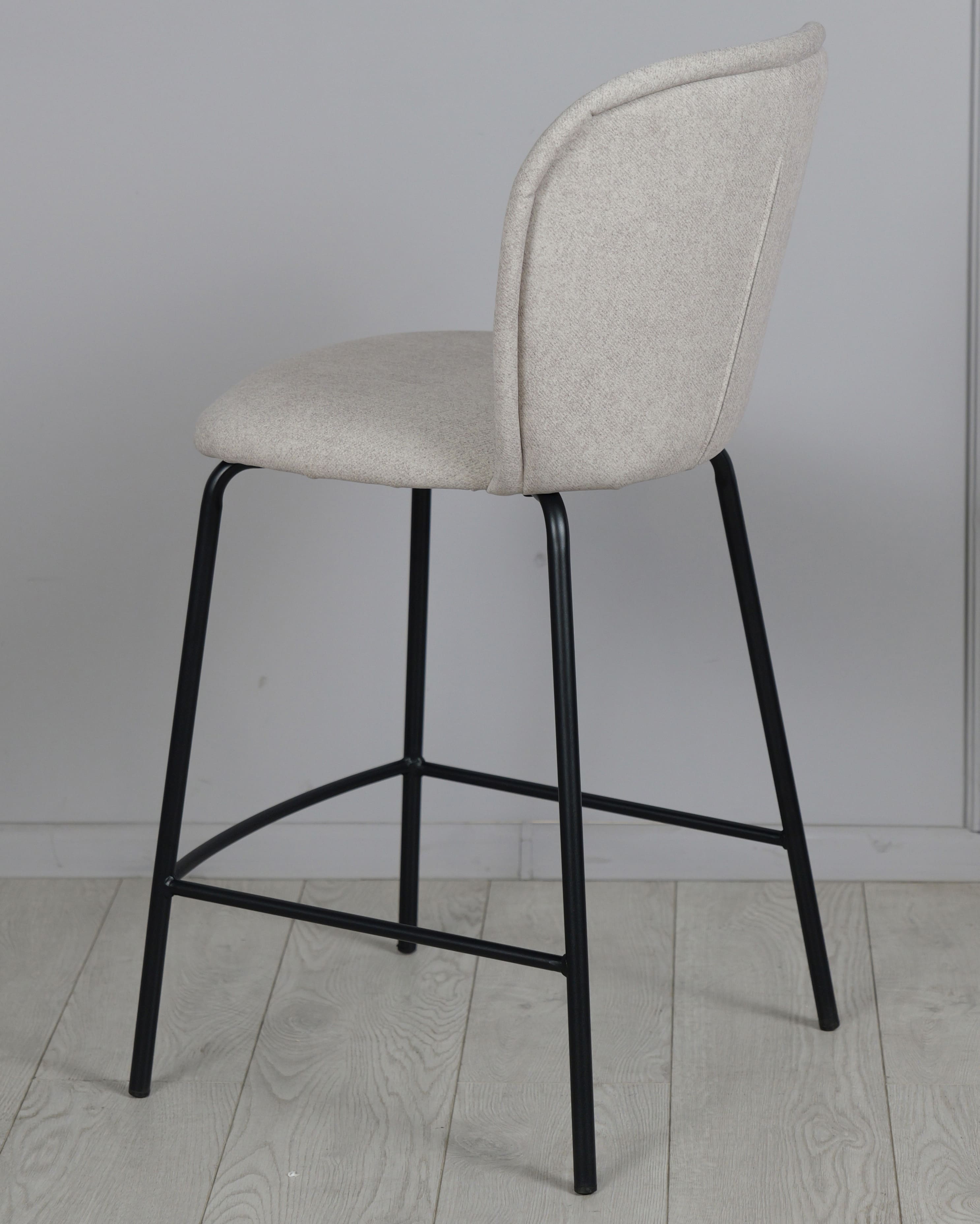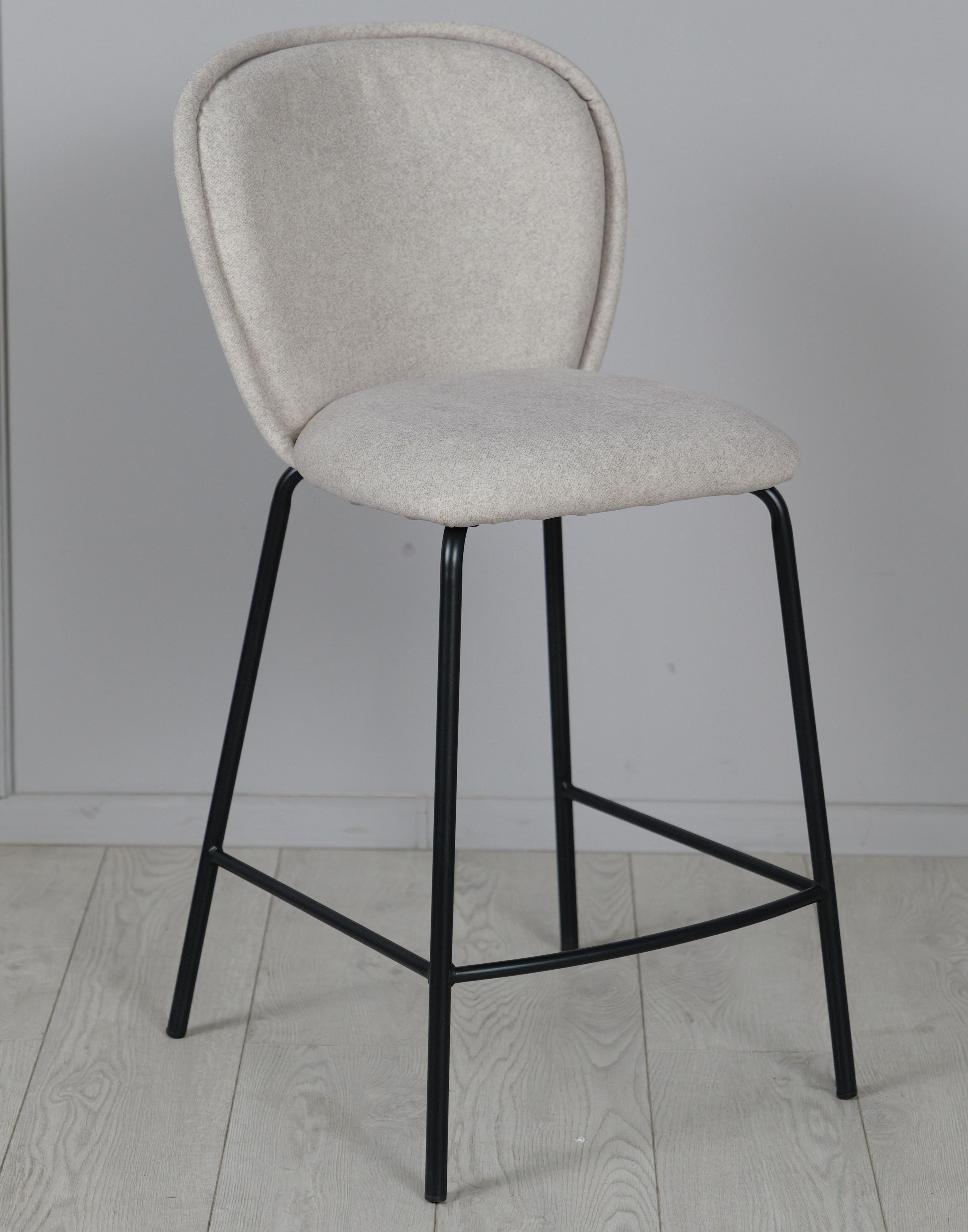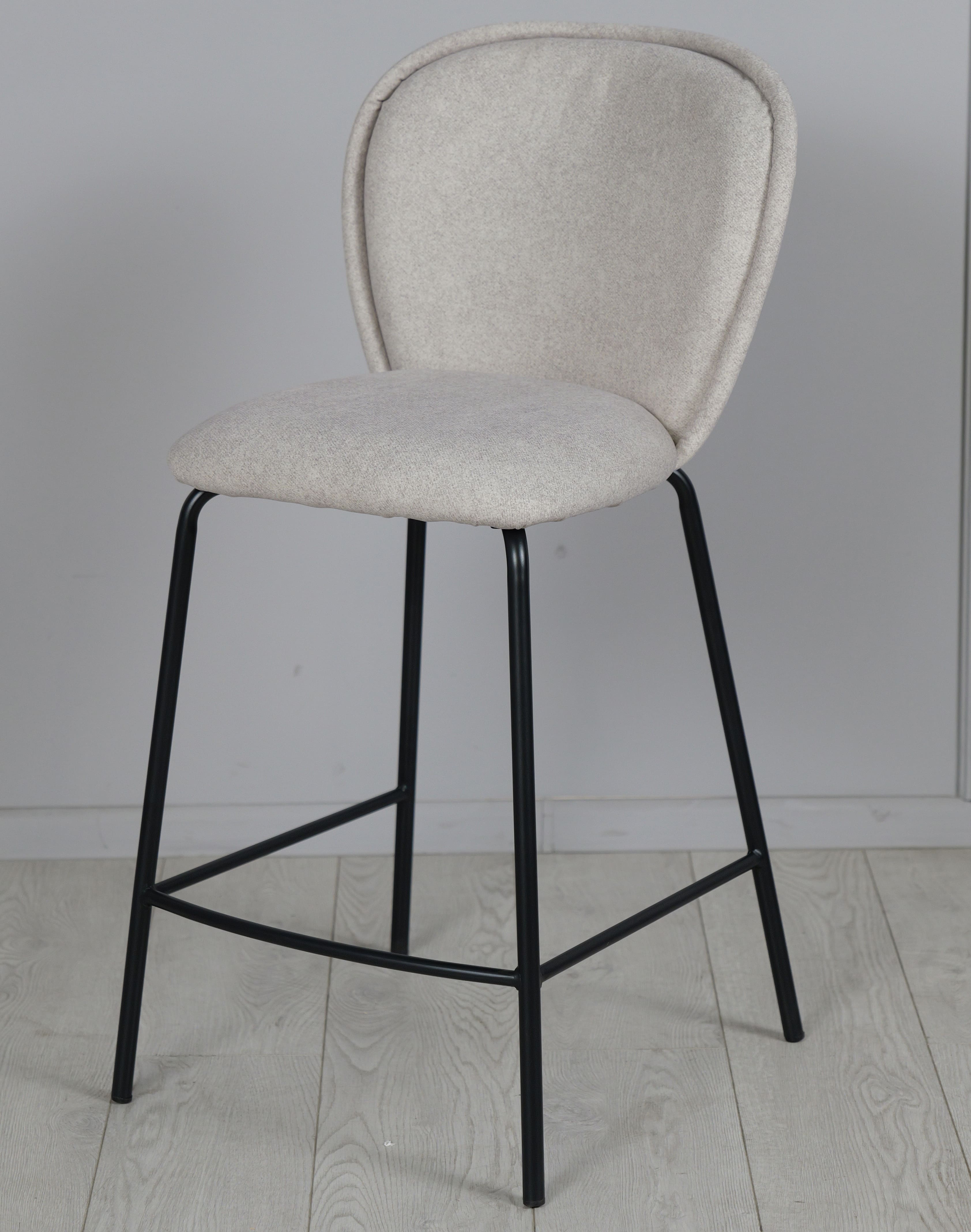 Напівбарний стілець Prestol Симпл Світло-сірий/чорний - стильне та практичне рішення для кухонного острова, барної стійки або обідньої зони з підвищеною посадкою. Світло-сіра тканинна оббивка створює відчуття затишку, а міцні металеві чорні ніжки підкреслюють сучасний характер виробу.