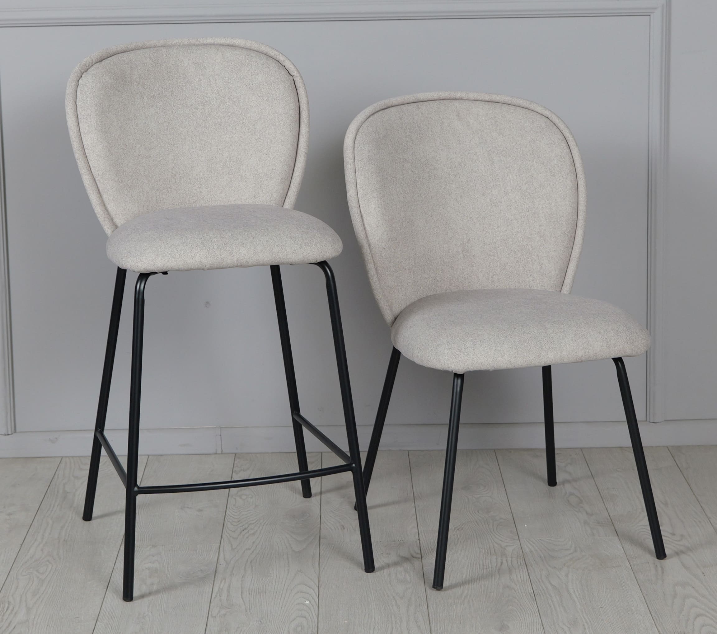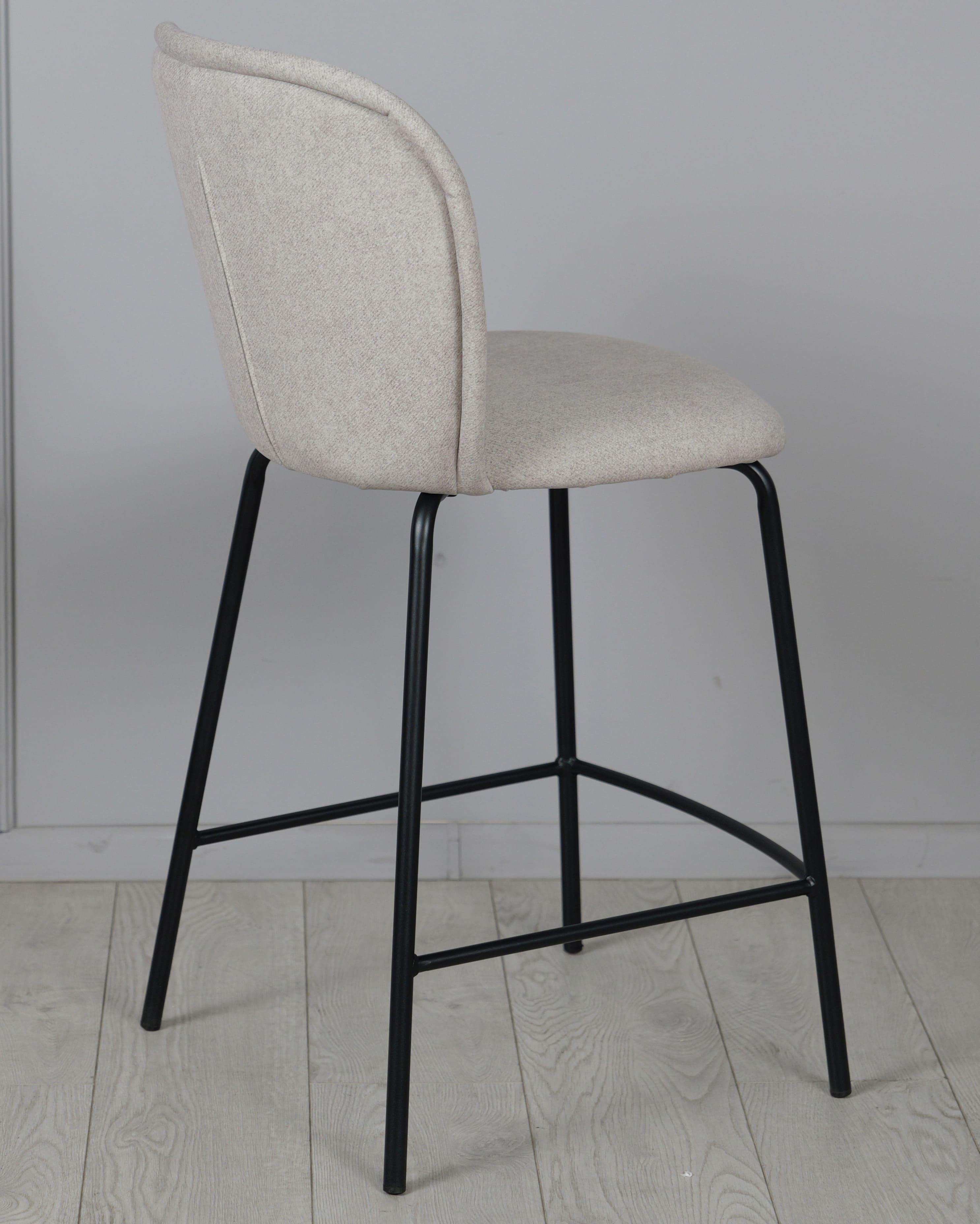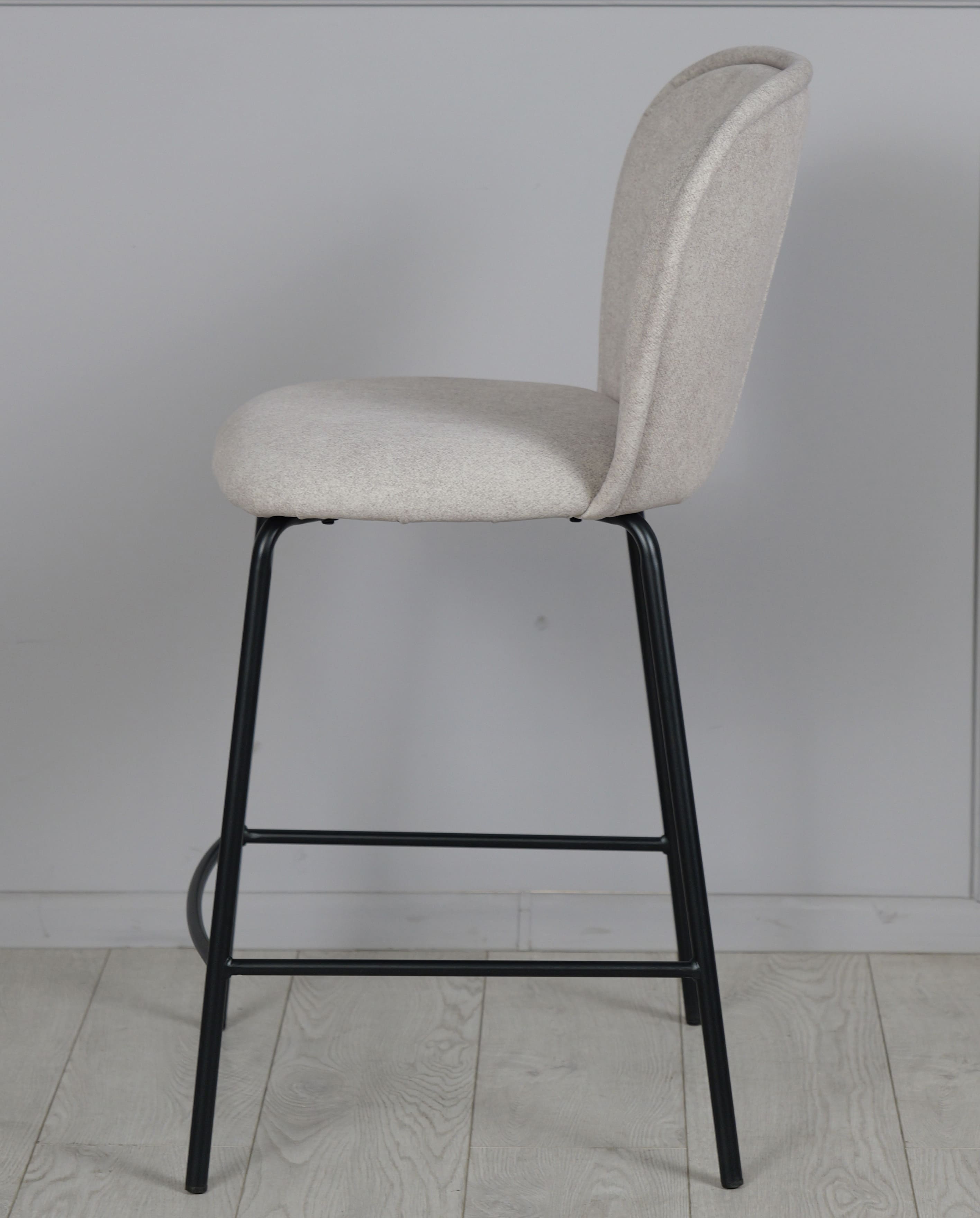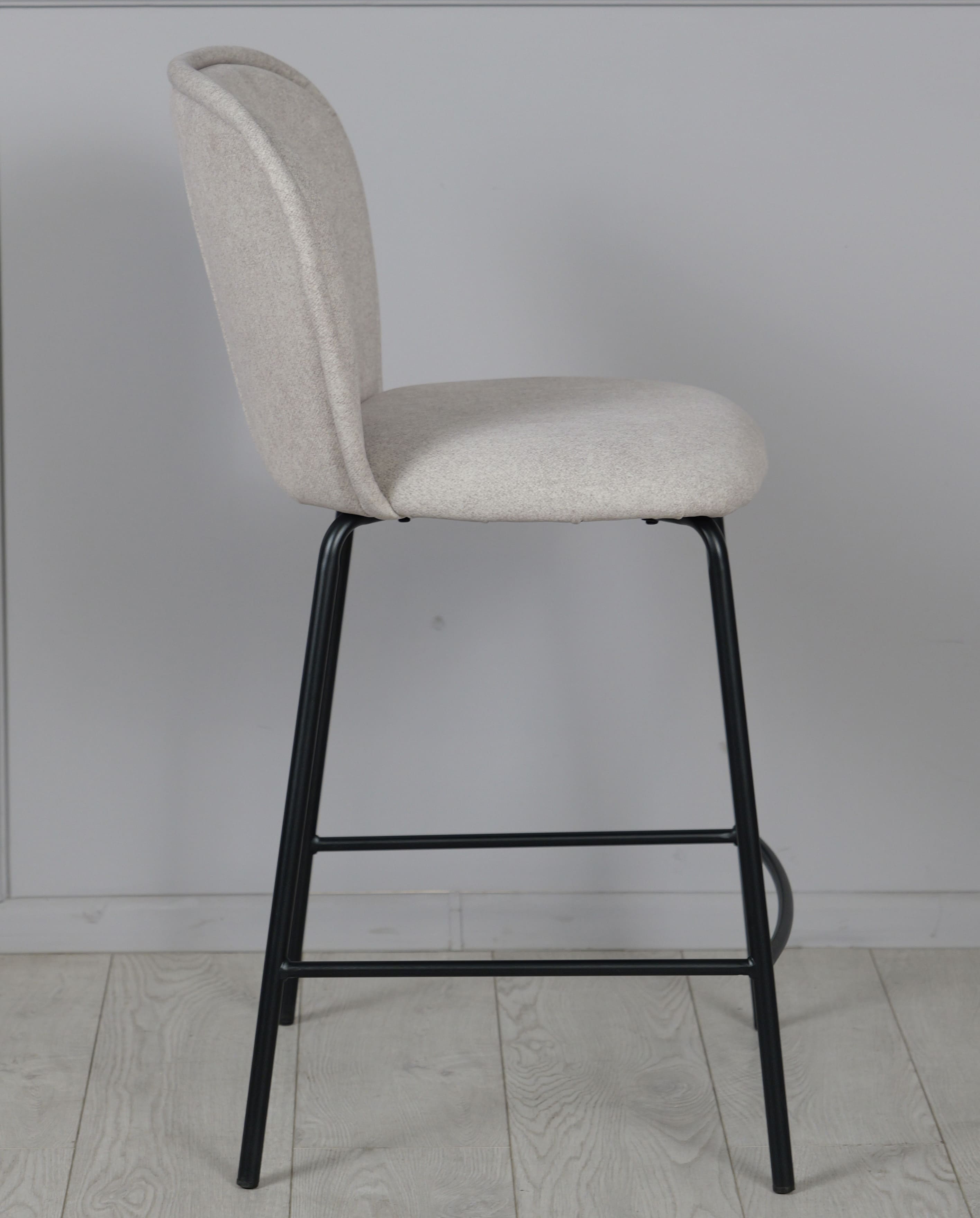 Напівбарний стілець Prestol Симпл Світло-сірий/чорний - стильне та практичне рішення для кухонного острова, барної стійки або обідньої зони з підвищеною посадкою. Світло-сіра тканинна оббивка створює відчуття затишку, а міцні металеві чорні ніжки підкреслюють сучасний характер виробу.