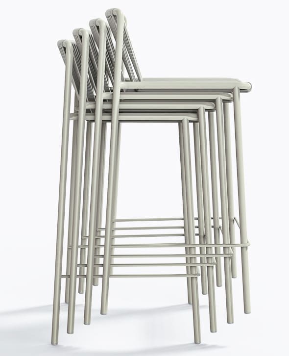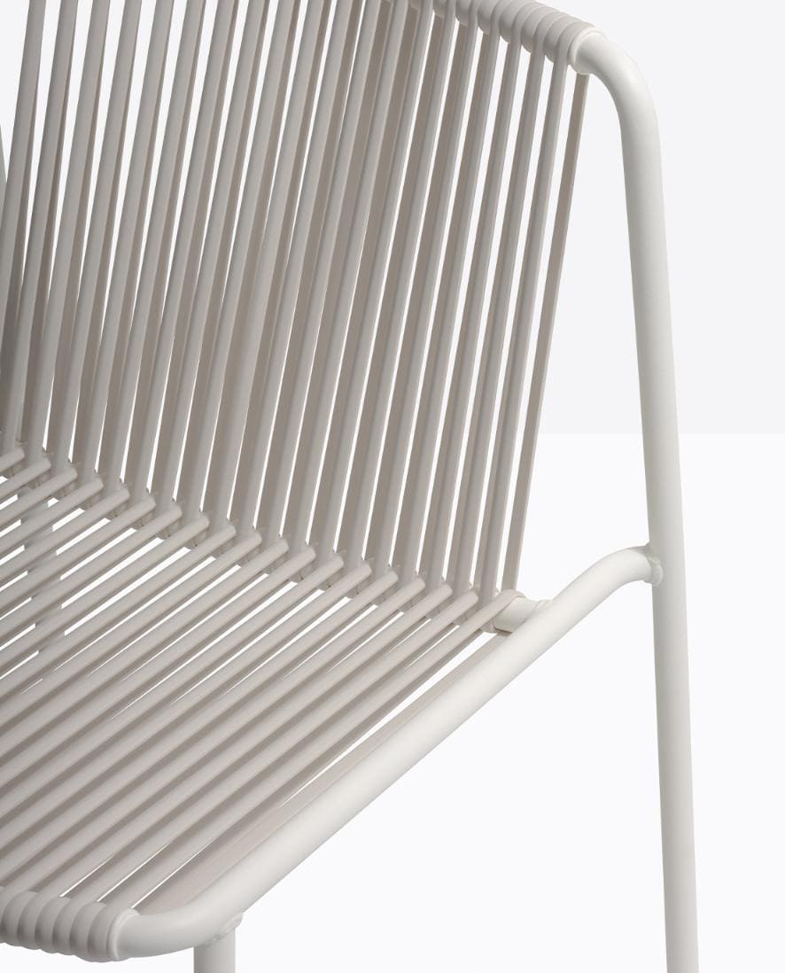 Стілець підходить для використання на вулиці, штабелюється та доступний у різних кольорах і висотах.