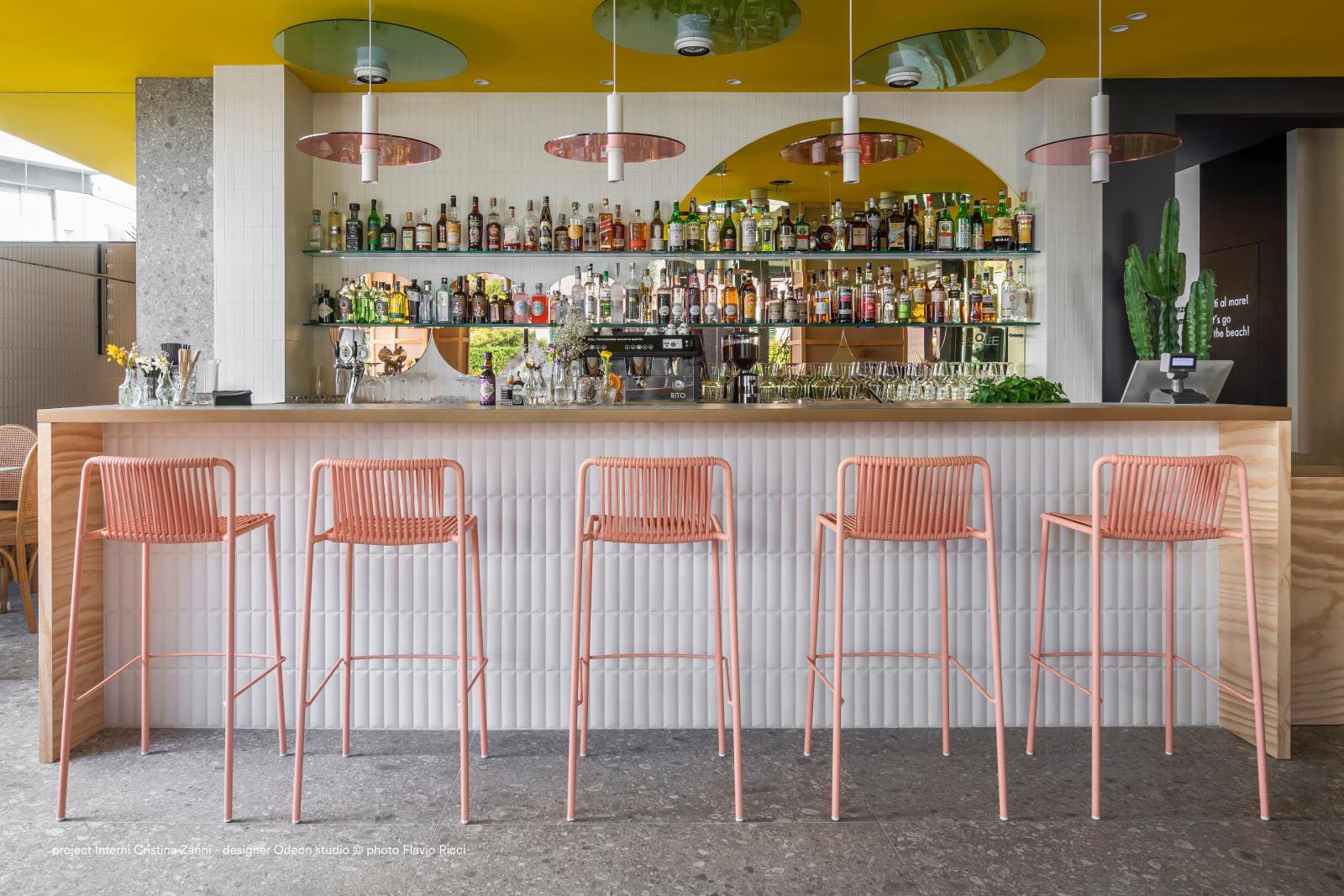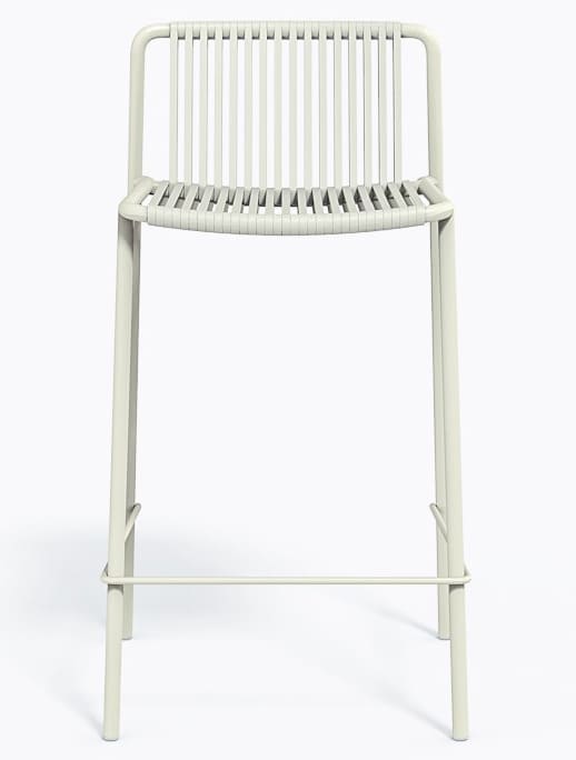 Вуличний напівбарний стілець Pedrali Tribeca 3667 – це дизайнерська модель у стилі 60-х для тераси, бару або ресторану. Каркас виготовлений зі сталі, а сидіння та спинка — з еластичного ПВХ-плетіння з нейлоновим сердечником, стійкого до вологи та сонця.