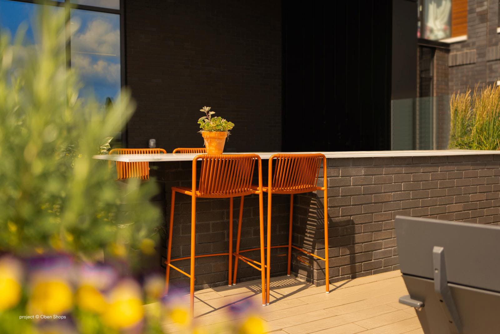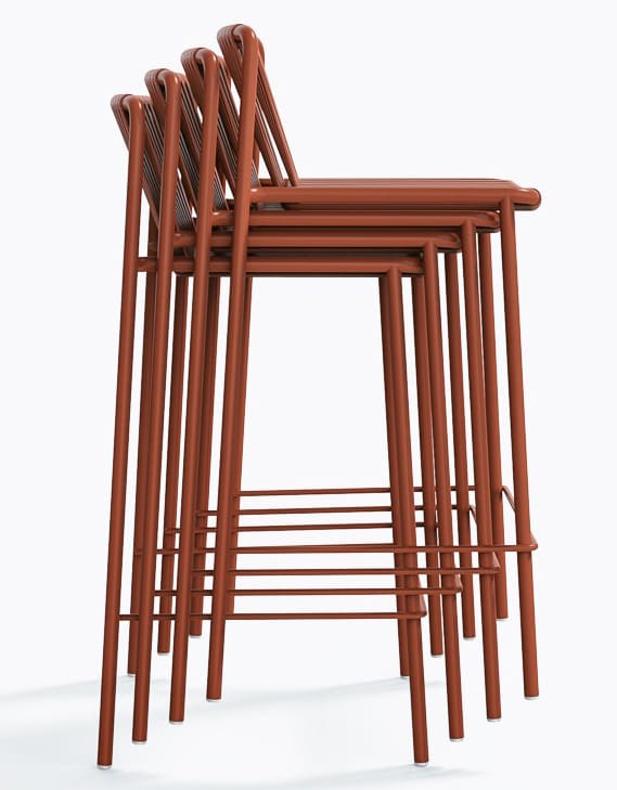 Стілець підходить для використання на вулиці, штабелюється та доступний у різних кольорах і висотах.