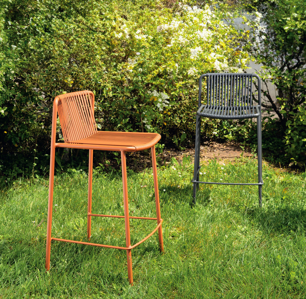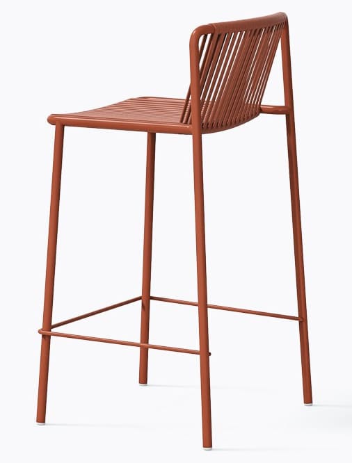 Вуличний напівбарний стілець Pedrali Tribeca 3667 – це дизайнерська модель у стилі 60-х для тераси, бару або ресторану. Каркас виготовлений зі сталі, а сидіння та спинка — з еластичного ПВХ-плетіння з нейлоновим сердечником, стійкого до вологи та сонця.