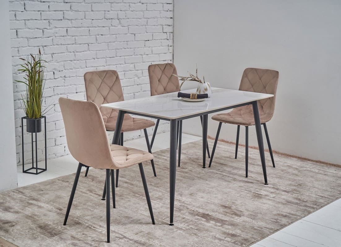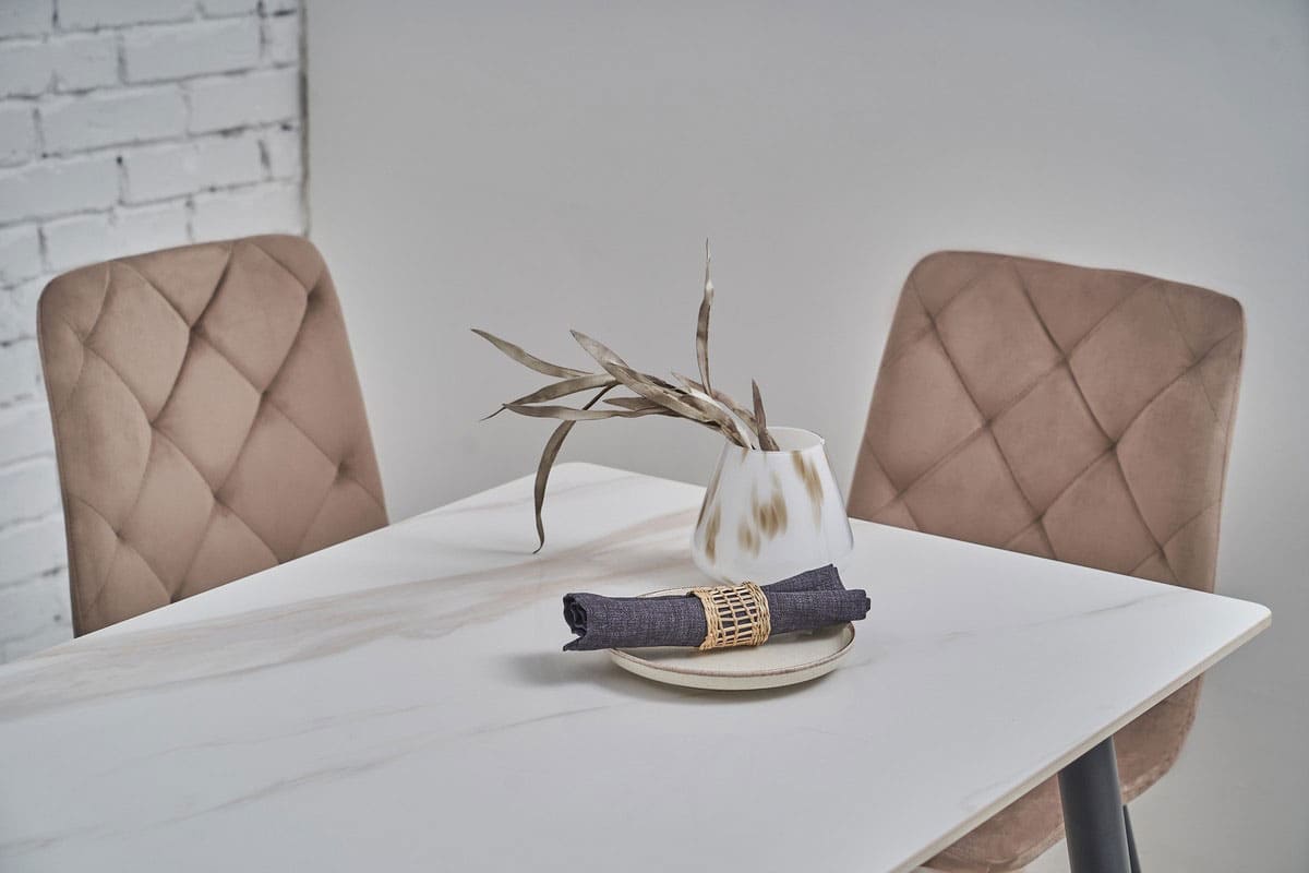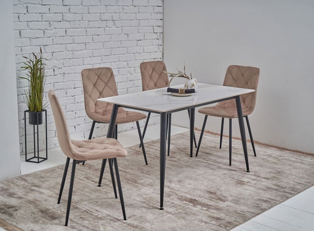 Обідній керамічний стіл Vetro Mebel TM-100 Олімпо вайт-чорний