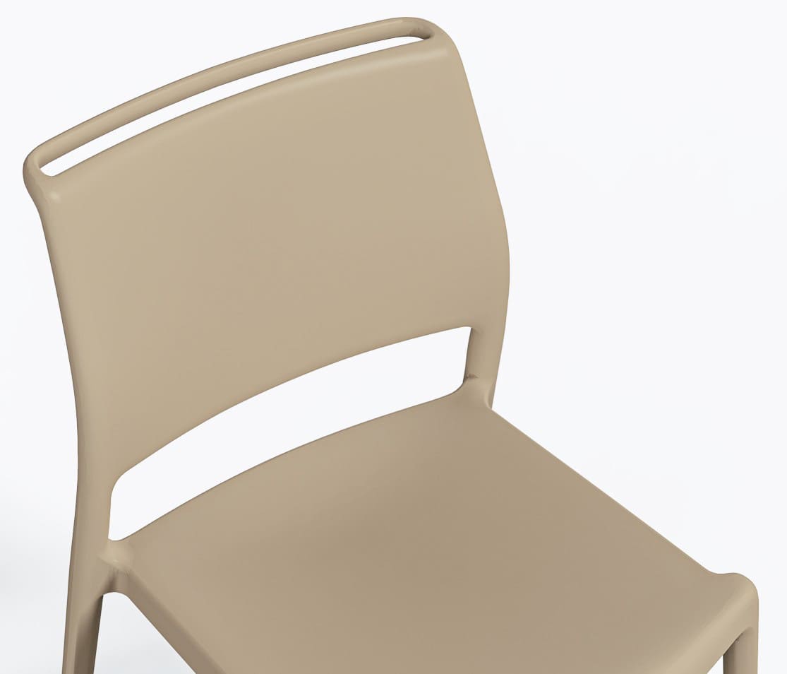 Стілець Ara Бежевий – сучасний пластиковий стілець для вулиці та інтер’єру. Підходить для тераси, саду, кафе та ресторану. Виготовлений з міцного поліпропілену, стійкий до вологи, УФ-променів та перепадів температури.