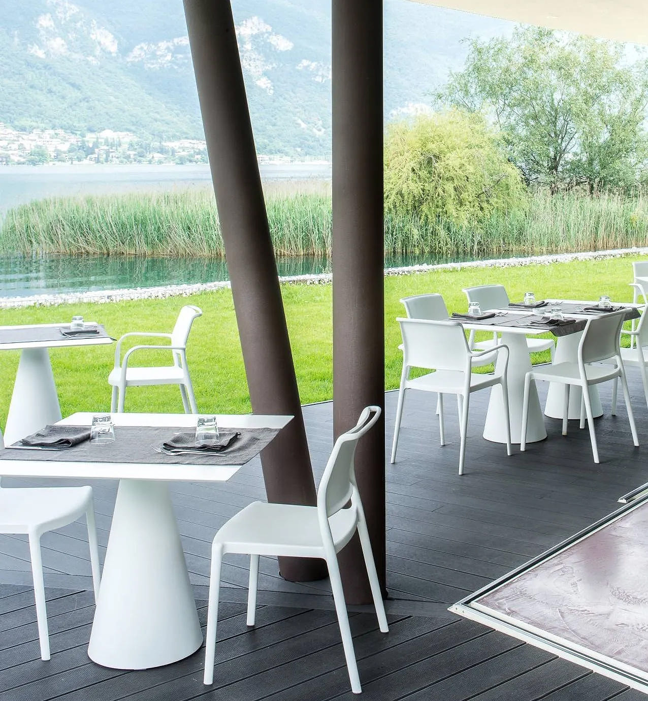 Стілець Ara Білий – сучасний пластиковий стілець для вулиці та інтер’єру. Підходить для тераси, саду, кафе та ресторану. Виготовлений з міцного поліпропілену, стійкий до вологи, УФ-променів та перепадів температури.