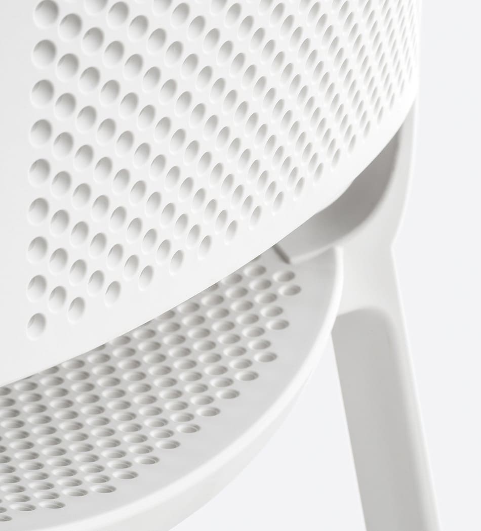 Стілець Dome 261/BI Білий – сучасний пластиковий стілець для вулиці та інтер’єру. Підходить для тераси, саду, кафе та ресторану. Виготовлений з міцного поліпропілену, стійкий до вологи, УФ-променів та перепадів температури.