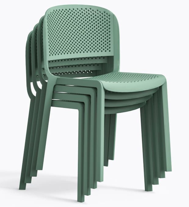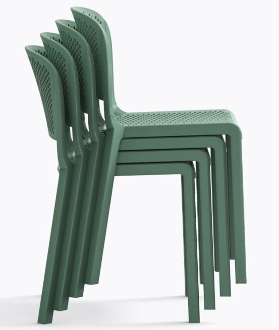 Стілець Dome 261/VE2 Зелений – сучасний пластиковий стілець для вулиці та інтер’єру. Підходить для тераси, саду, кафе та ресторану. Виготовлений з міцного поліпропілену, стійкий до вологи, УФ-променів та перепадів температури.