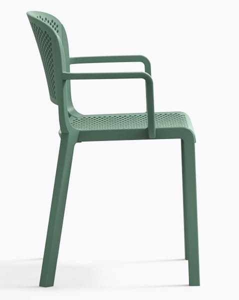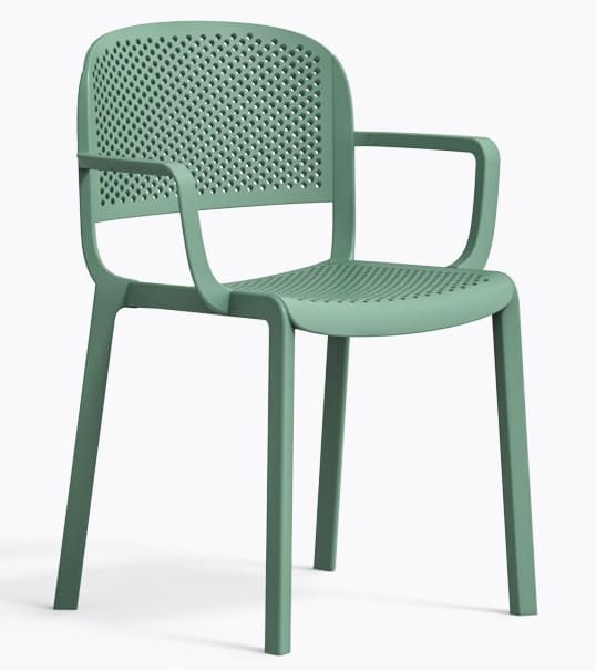 Стілець Dome 266/VE2 Зелений – сучасний пластиковий стілець для вулиці та інтер’єру. Підходить для тераси, саду, кафе та ресторану. Виготовлений з міцного поліпропілену, стійкий до вологи, УФ-променів та перепадів температури.