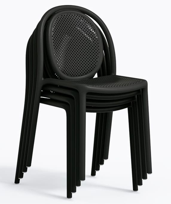 Стілець Remind Чорний – сучасний пластиковий стілець для вулиці та інтер’єру. Підходить для тераси, саду, кафе та ресторану. Виготовлений з міцного поліпропілену, стійкий до вологи, УФ-променів та перепадів температури.