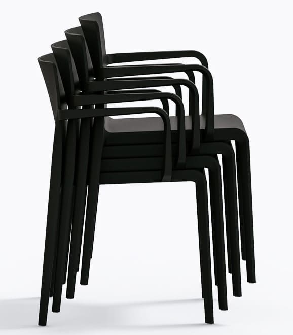 Модель представлена в різних кольорах, доступна версія з підлокітниками та без. Стілець, який можна штабелювати, зручний для зберігання, транспортування та комерційного використання. Відмінний вибір для літньої тераси, саду або стильного оформлення дому.