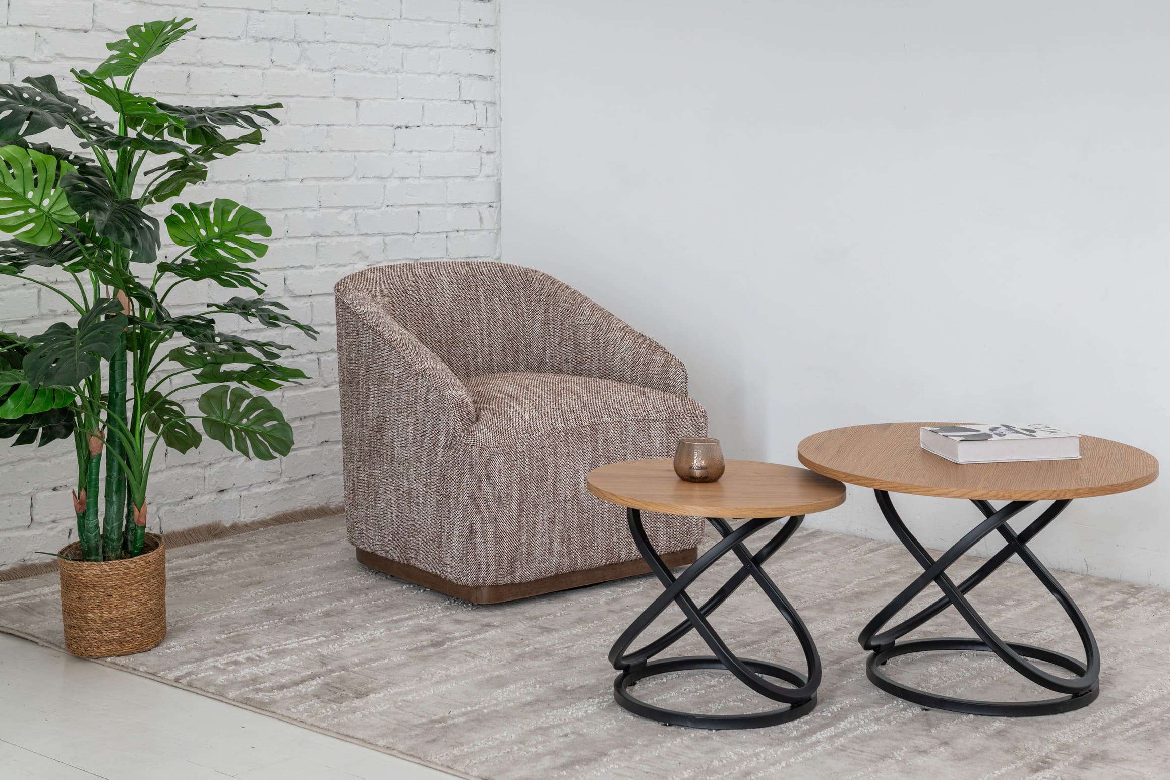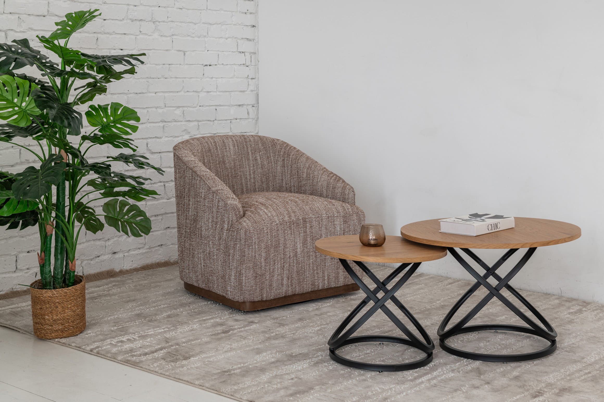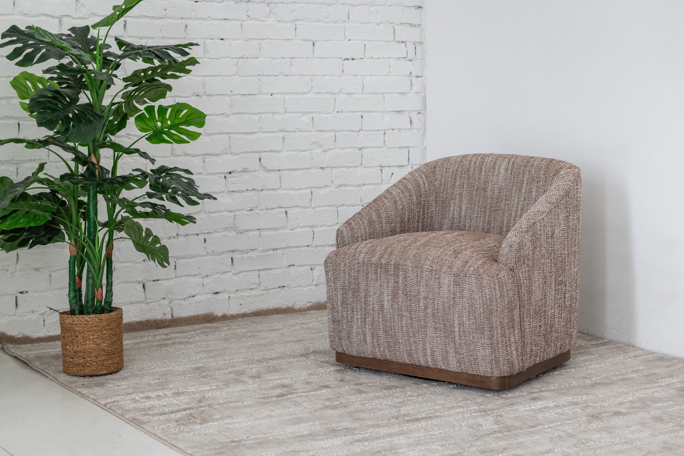 М’яка оббивка з фактурної тканини приємна на дотик та вирізняється зносостійкістю, а теплий каштановий колір додає інтер’єру природної гармонії та вишуканості. Завдяки надійному механізму повороту крісло забезпечує свободу руху та зручність у повсякденному користуванні.