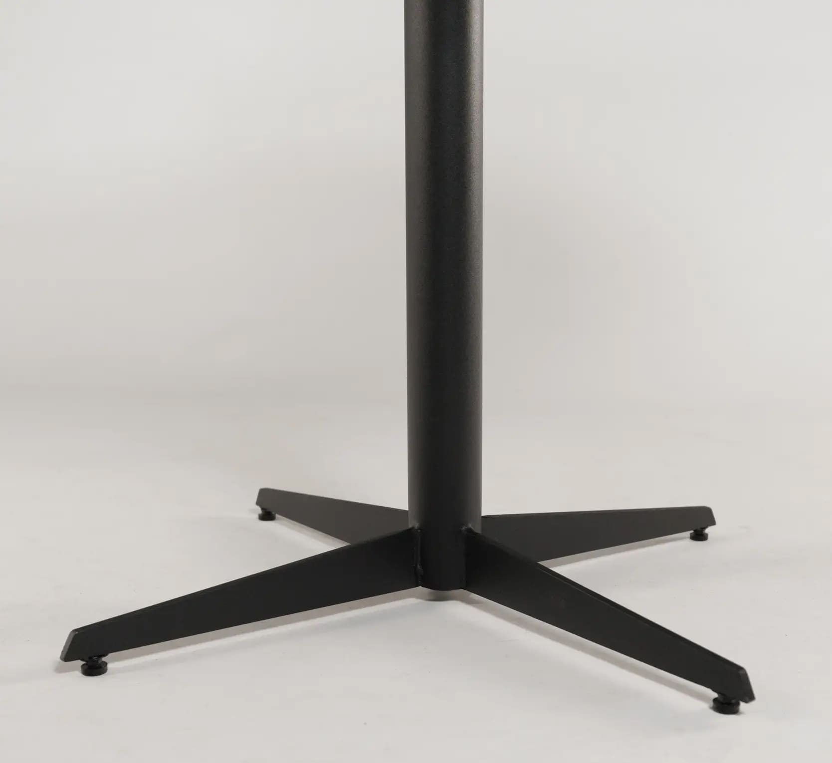 Опора столу цільносварна, виготовлена з міцної сталі та покрита порошковим методом фарбування, що забезпечує довговічність та стійкість до зносу. Габарити опори 650х650, h-725.