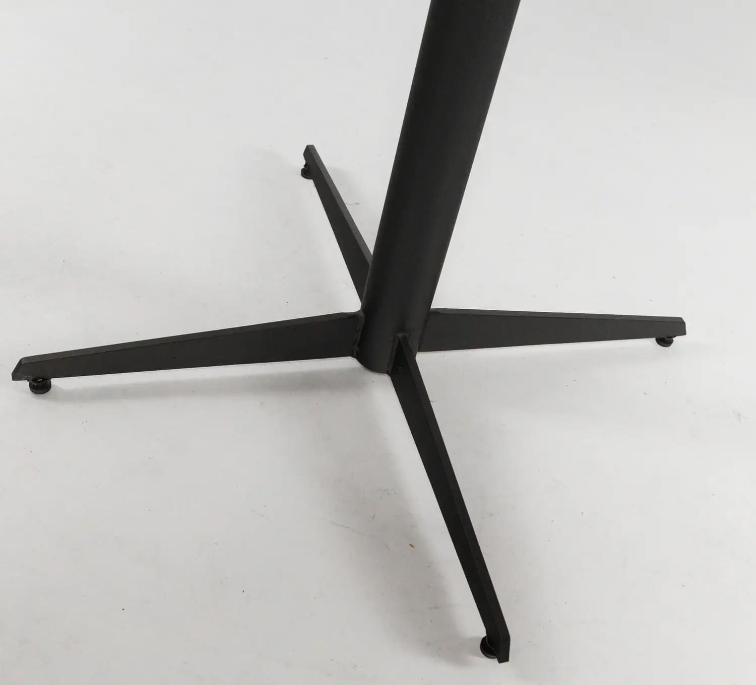 Опора столу цільносварна, виготовлена з міцної сталі та покрита порошковим методом фарбування, що забезпечує довговічність та стійкість до зносу. Габарити опори 650х650, h-725.
