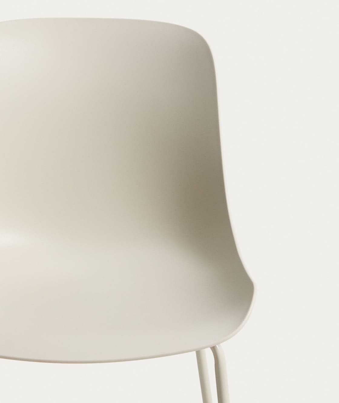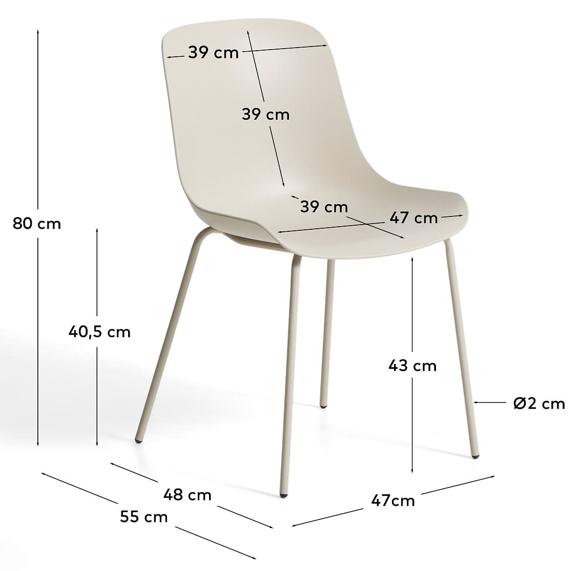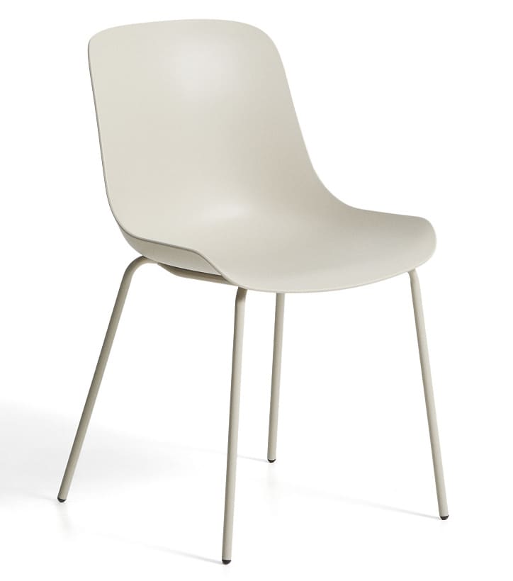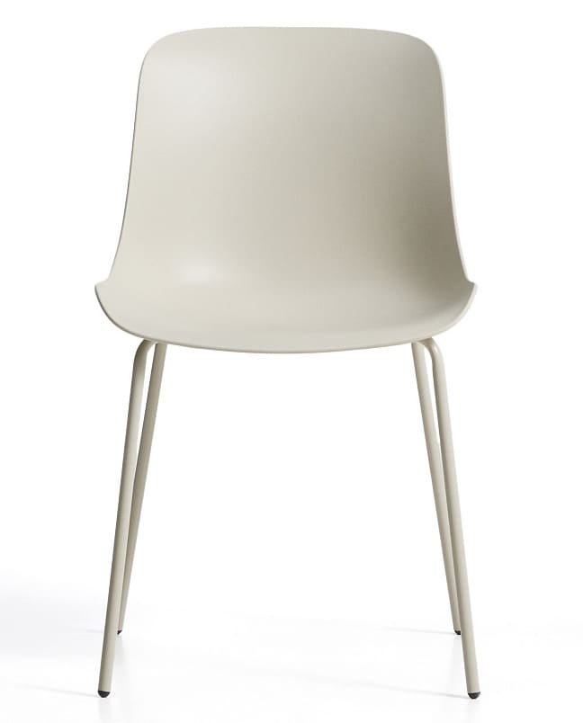 - Стілець із сидінням з пластику та сталевими ніжками.