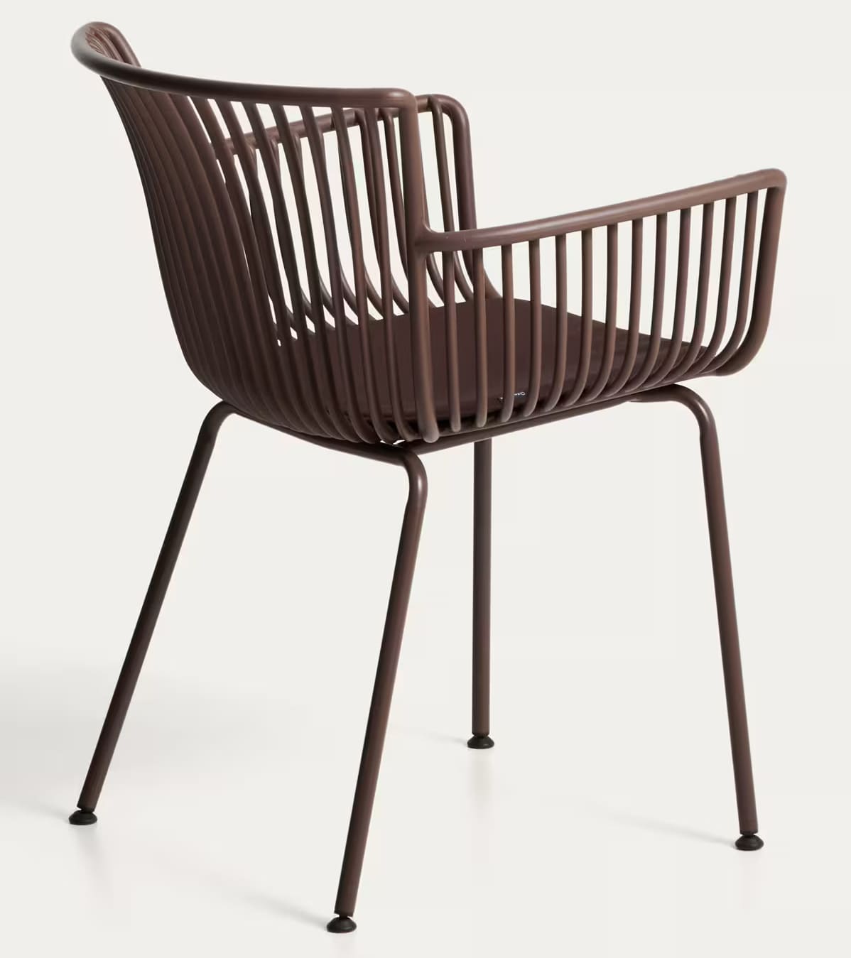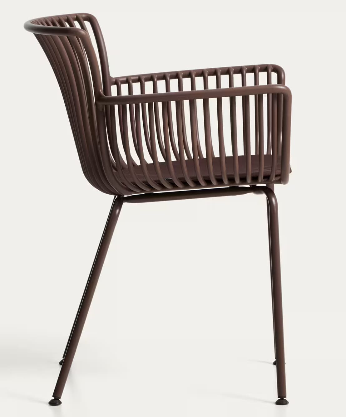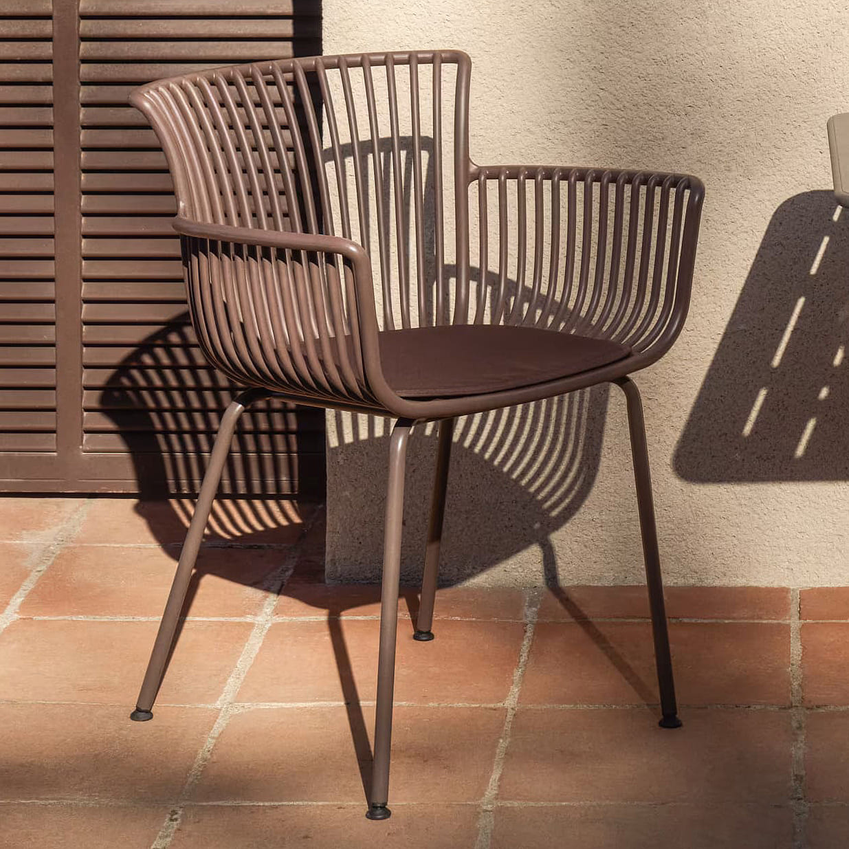 - Стілець із 100% перероблюваного пластику коричневого кольору зі сталевим каркасом.