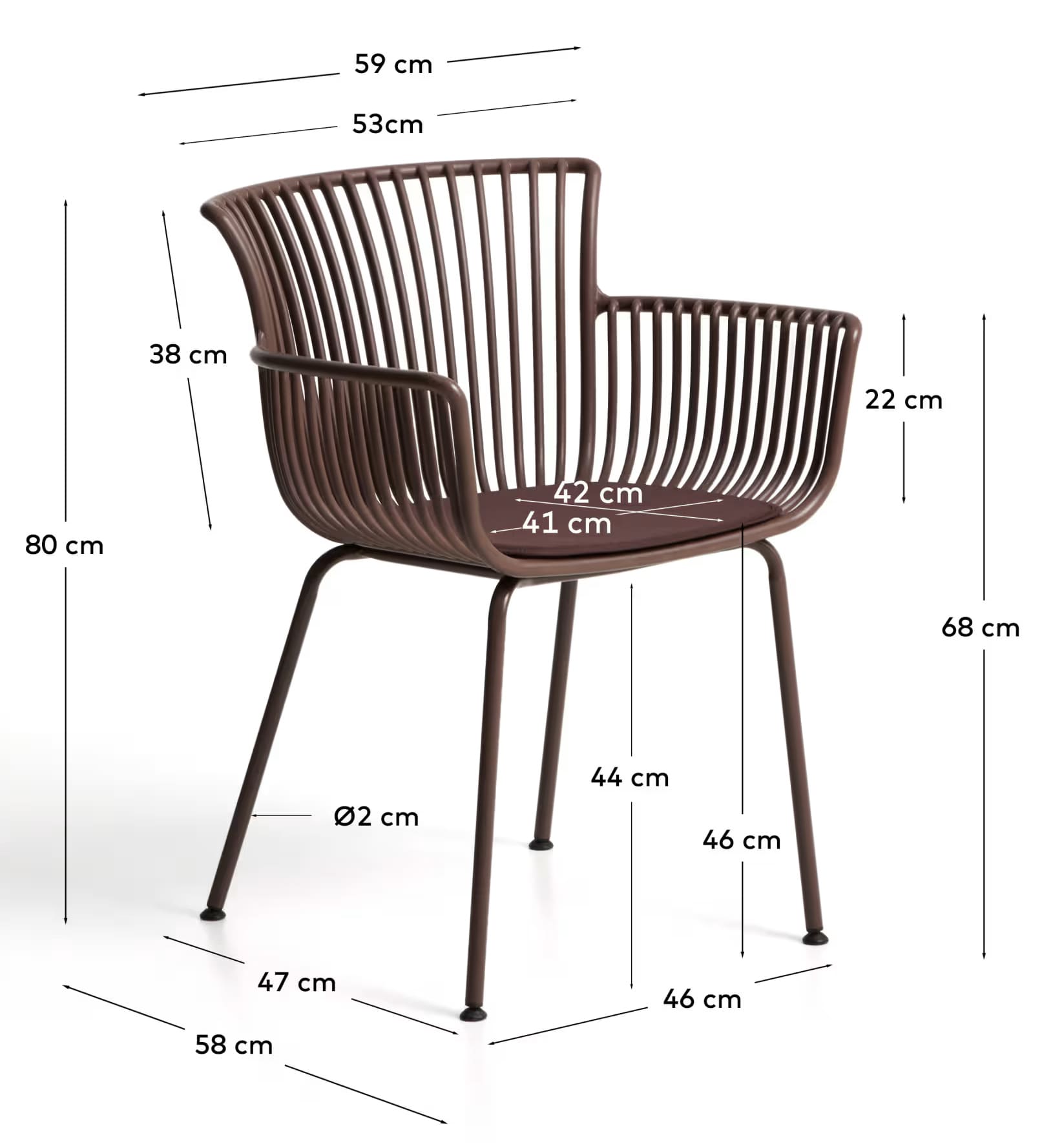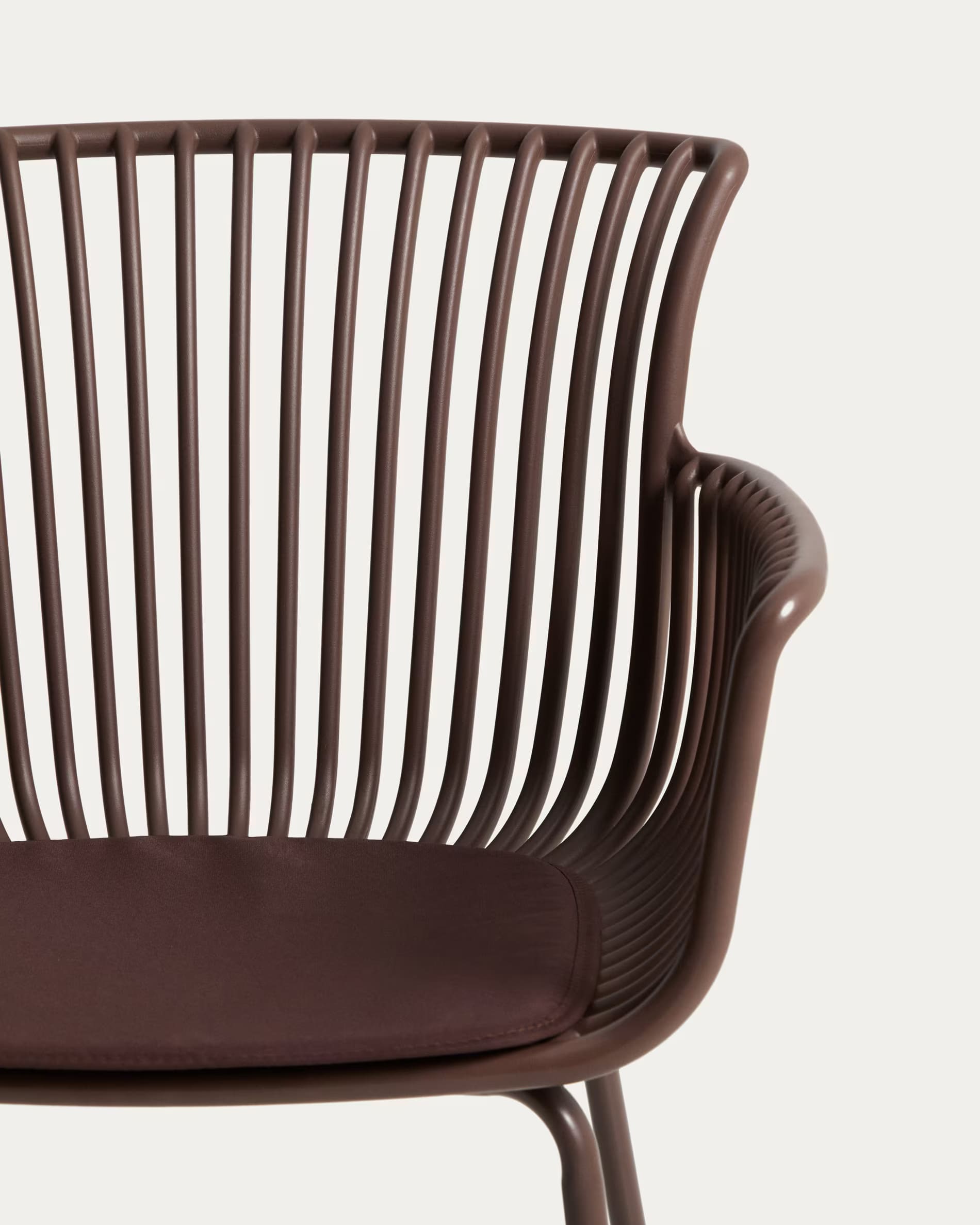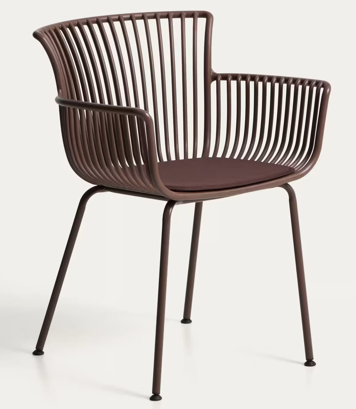 - Стілець із 100% перероблюваного пластику коричневого кольору зі сталевим каркасом.
