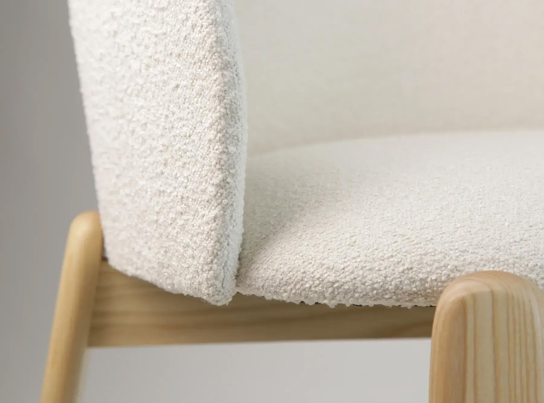 Каркас виготовлений з натурального ясена, що гарантує довговічність та благородний вигляд. Стілець доступний у будь-якому варіанті тканини за індивідуальним замовленням — ідеальний вибір для створення гармонійного інтер’єру у стилі, який підходить саме вам.