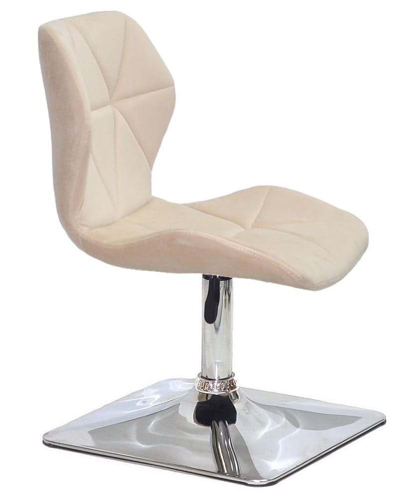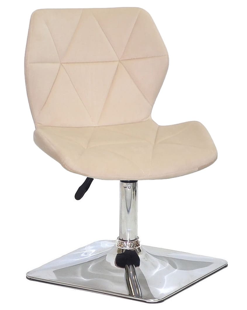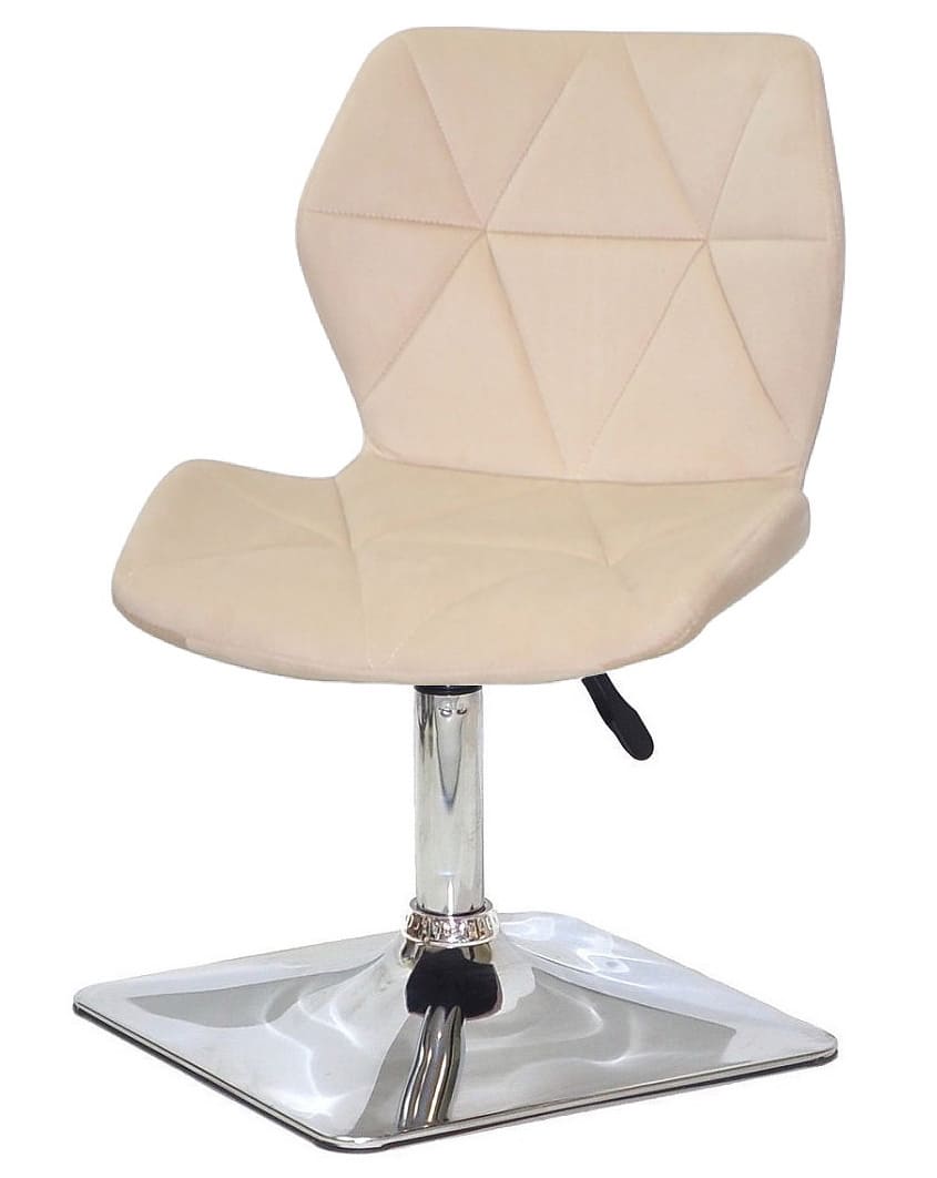 Сидіння та спинка виконані в приємній на дотик оббивці з оксамиту бежевого кольору, яка надає стільцю елегантності та візуальної м’якості. Міцний металевий каркас та стійка основа забезпечують стабільність і довговічність при щоденному використанні.