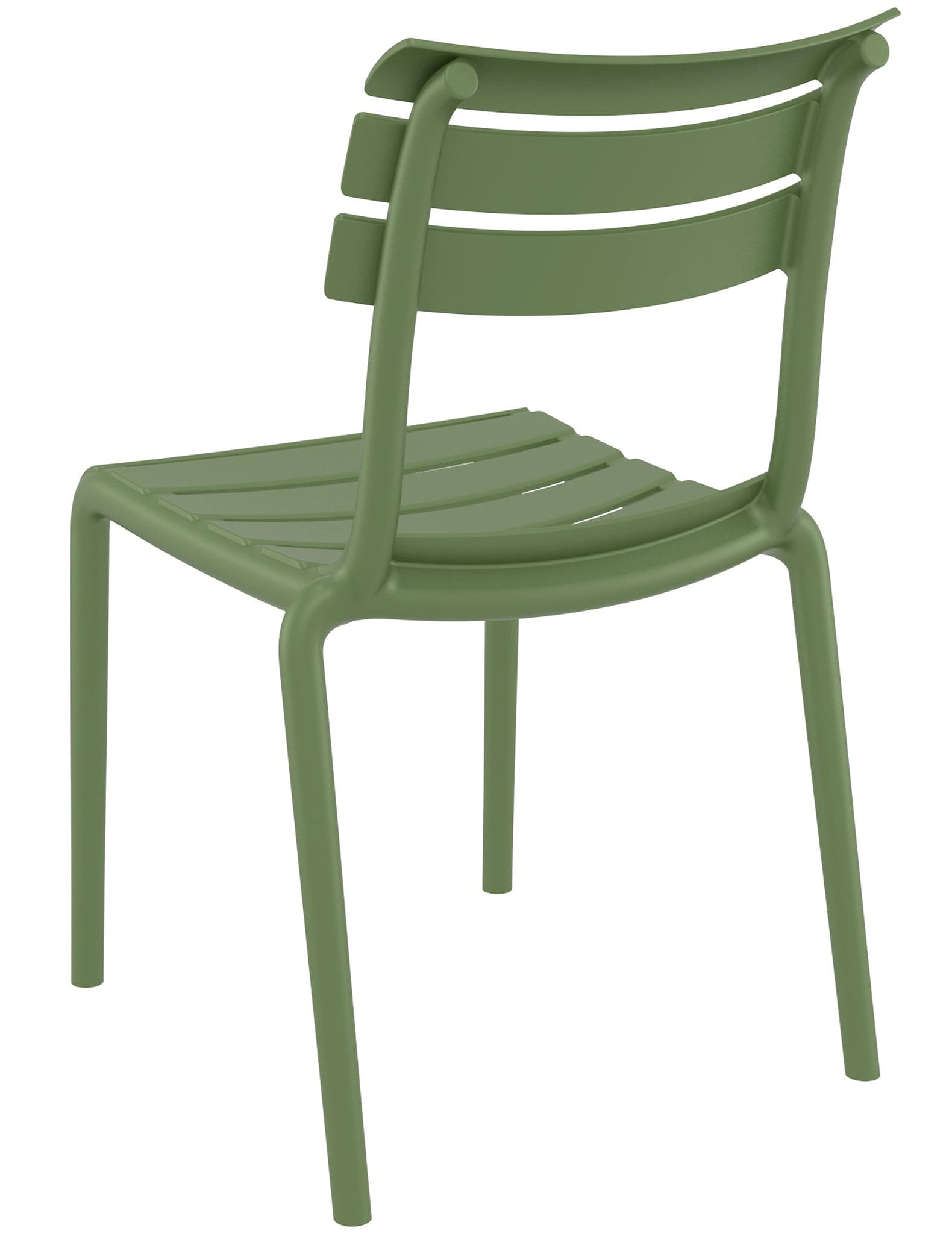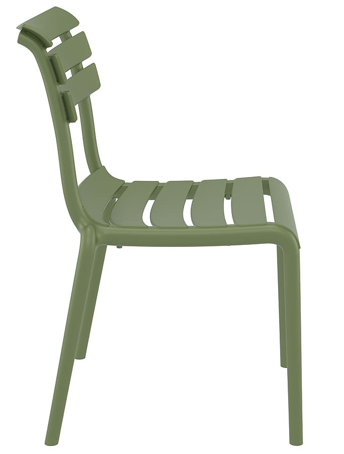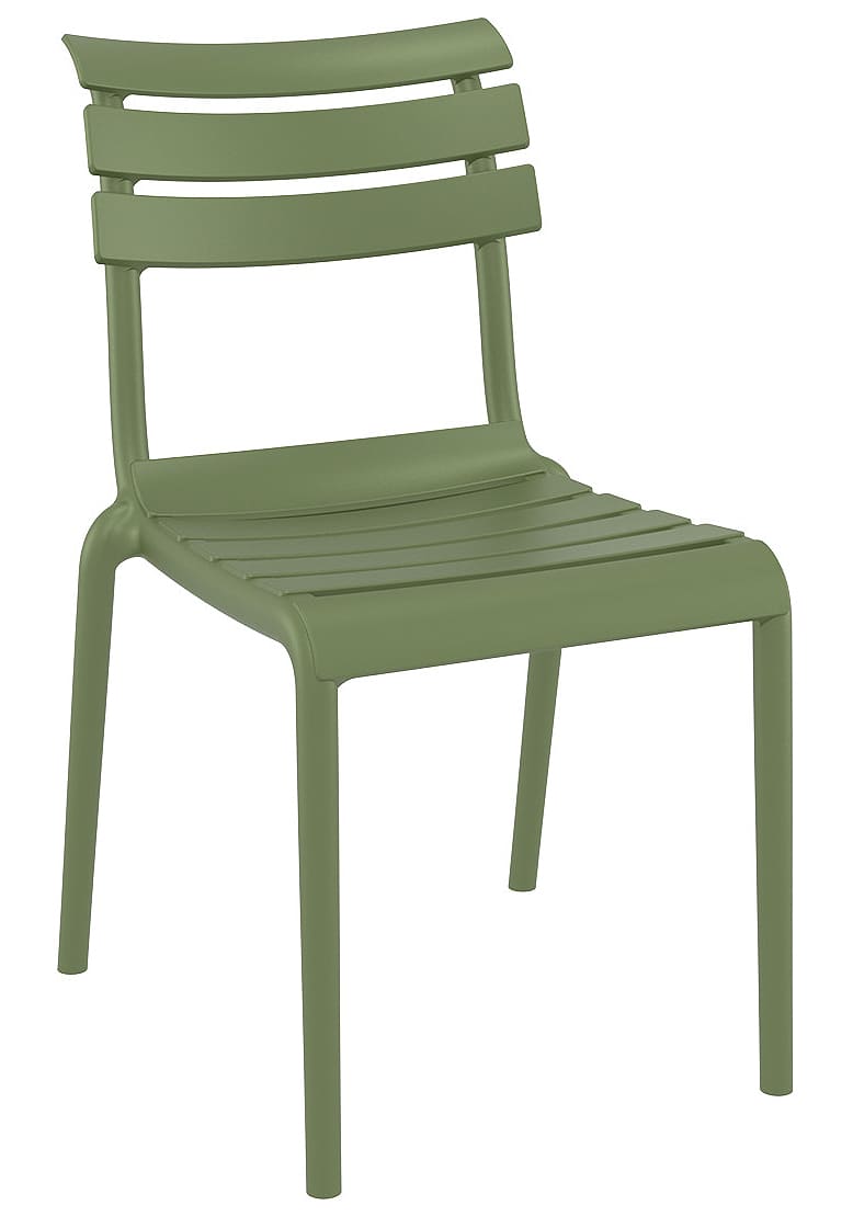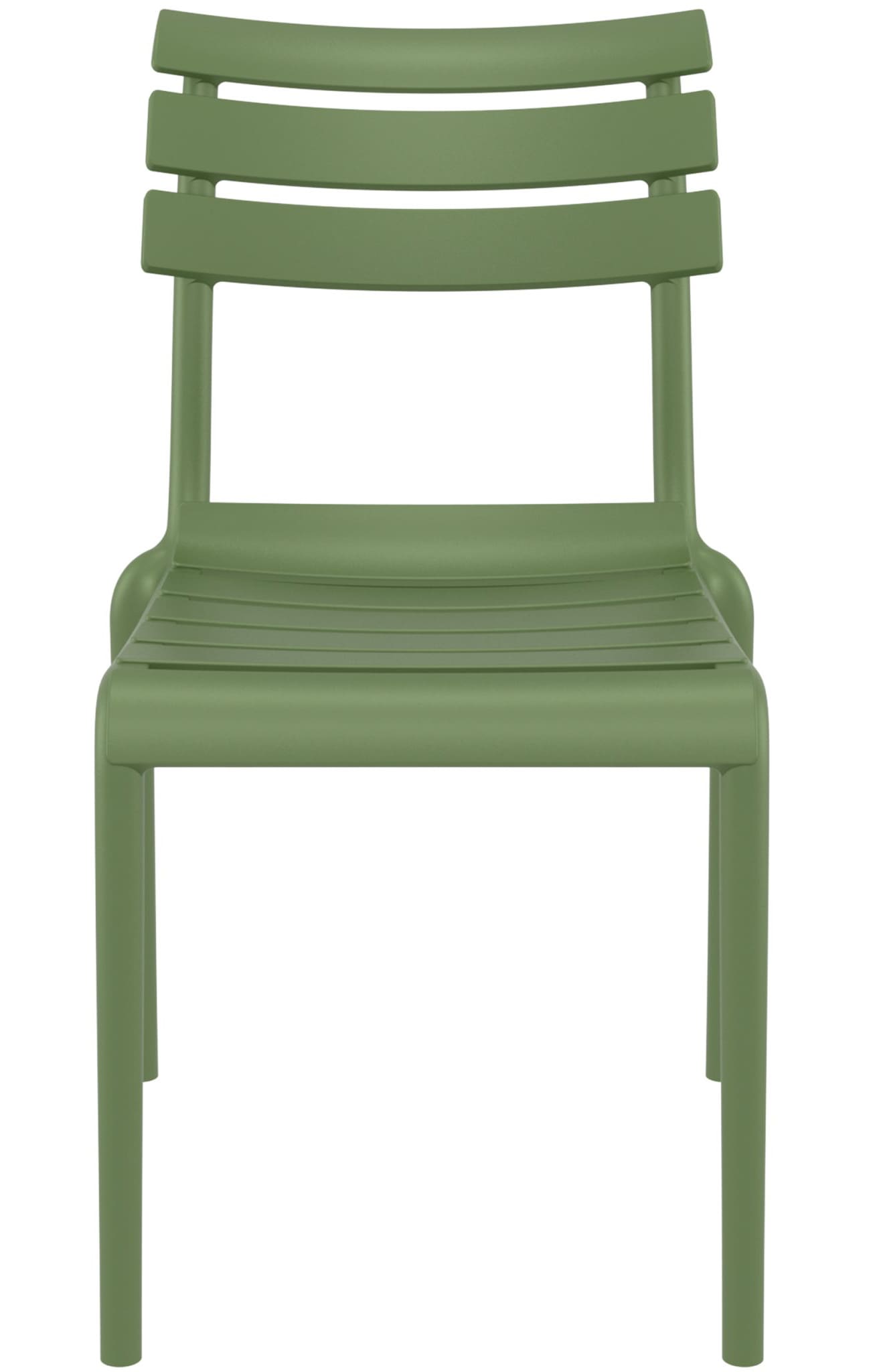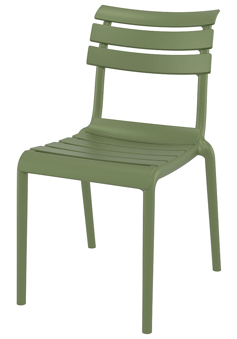 Стілець пластиковий Siesta Helen Зелений (Olive Green) – сучасний пластиковий стілець для вулиці та інтер'єру. Підходить для тераси, саду, кафе та ресторану. Виготовлений з міцного поліпропілену, стійкий до ударів, вигинів, вологи, УФ-променів та перепадів температури, повністю антистатичний.
