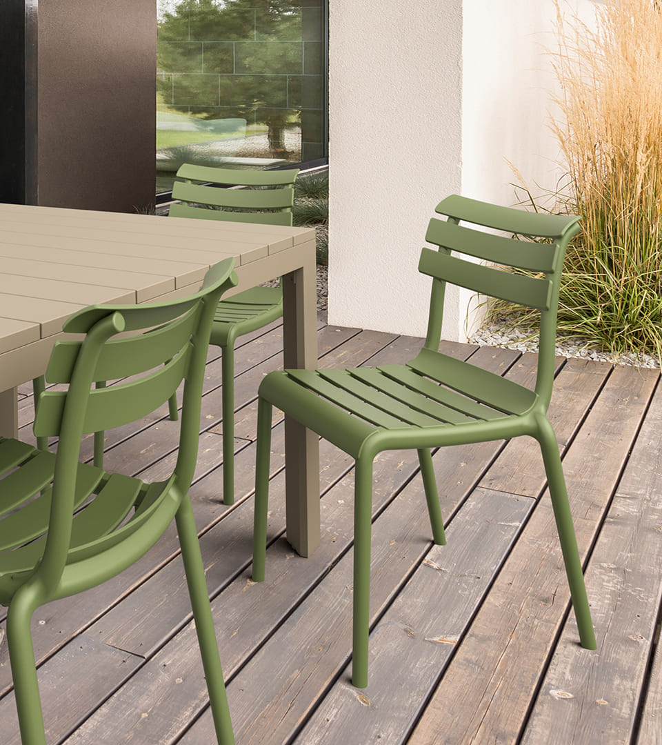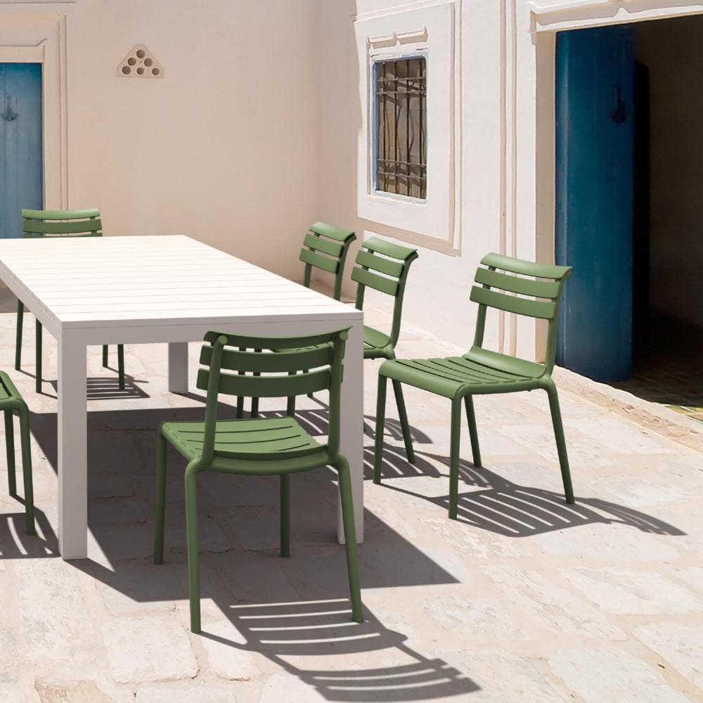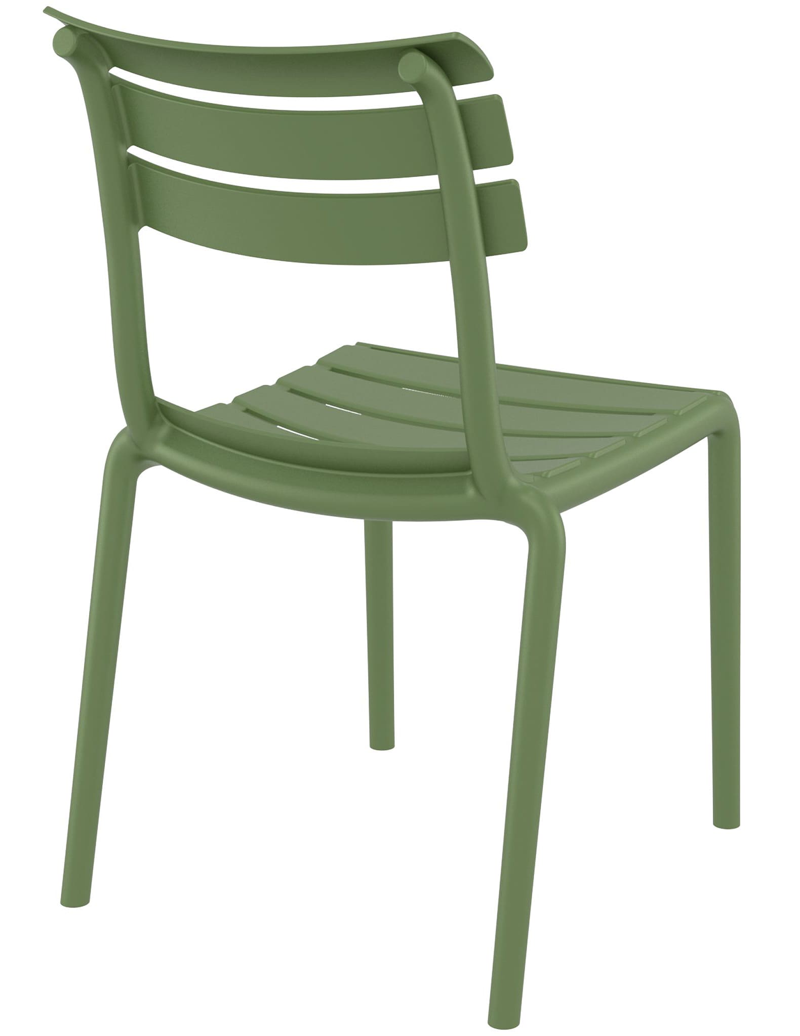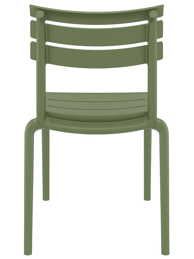 Стілець пластиковий Siesta Helen Зелений (Olive Green) – сучасний пластиковий стілець для вулиці та інтер'єру. Підходить для тераси, саду, кафе та ресторану. Виготовлений з міцного поліпропілену, стійкий до ударів, вигинів, вологи, УФ-променів та перепадів температури, повністю антистатичний.