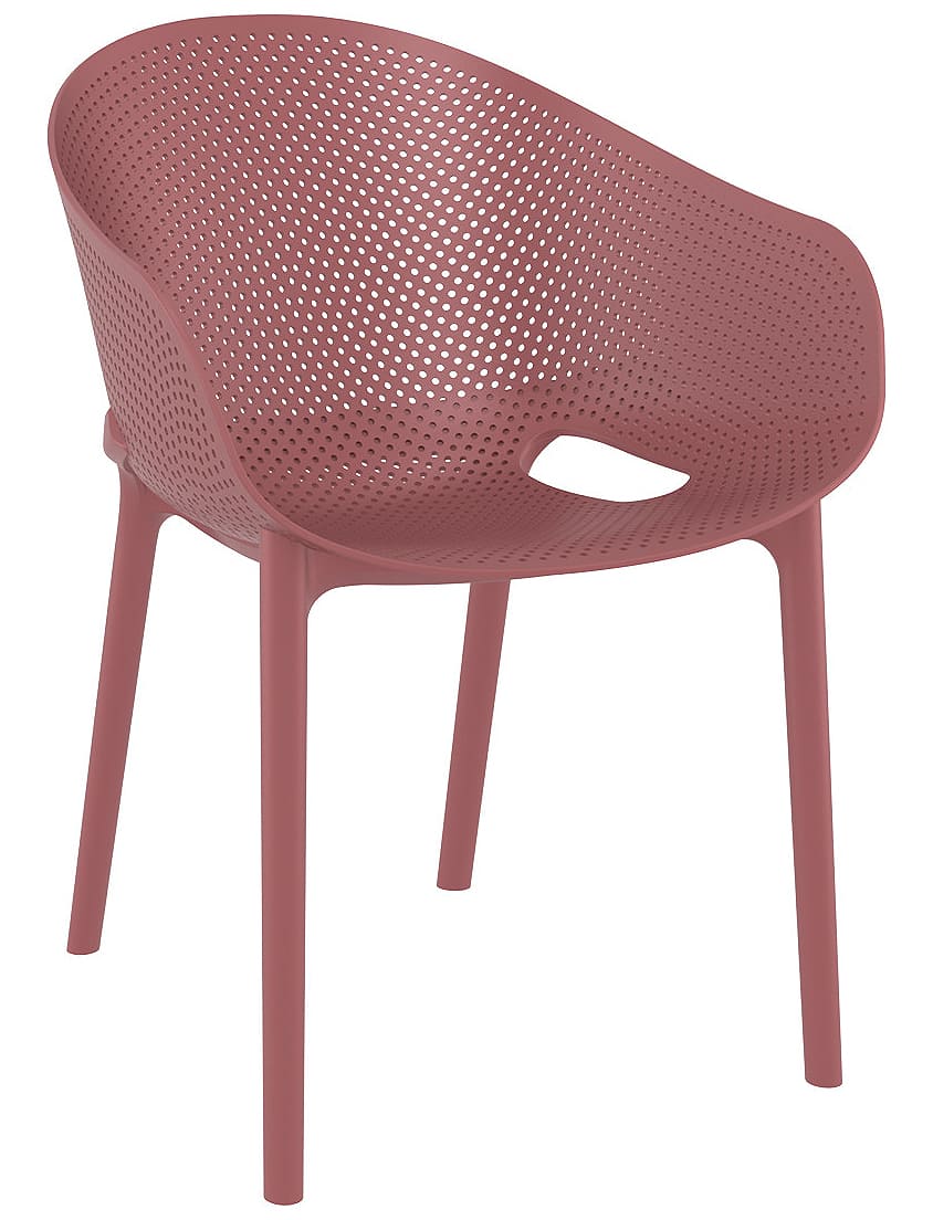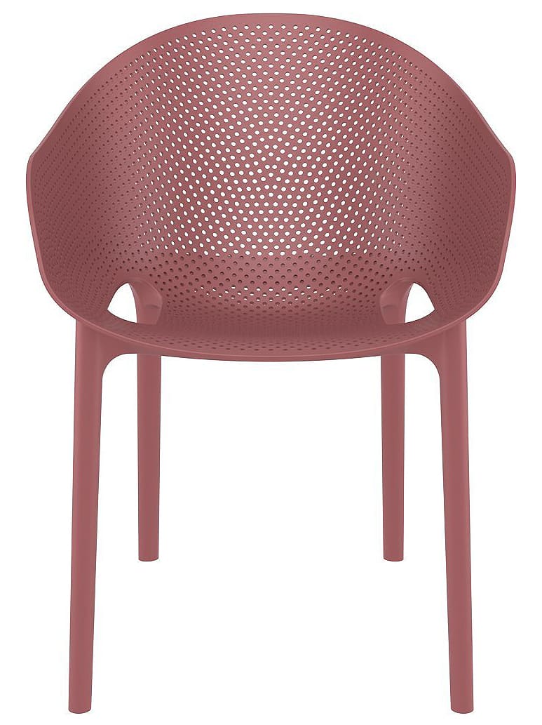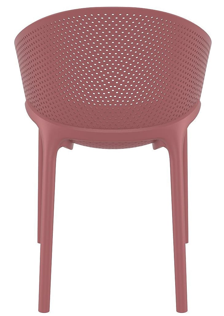 Стілець пластиковий Siesta Sky Pro Винний (Marsala) – сучасний пластиковий стілець для вулиці та інтер'єру. Підходить для тераси, саду, кафе та ресторану. Виготовлений з міцного поліпропілену, стійкий до ударів, вигинів, вологи, УФ-променів та перепадів температури, повністю антистатичний.