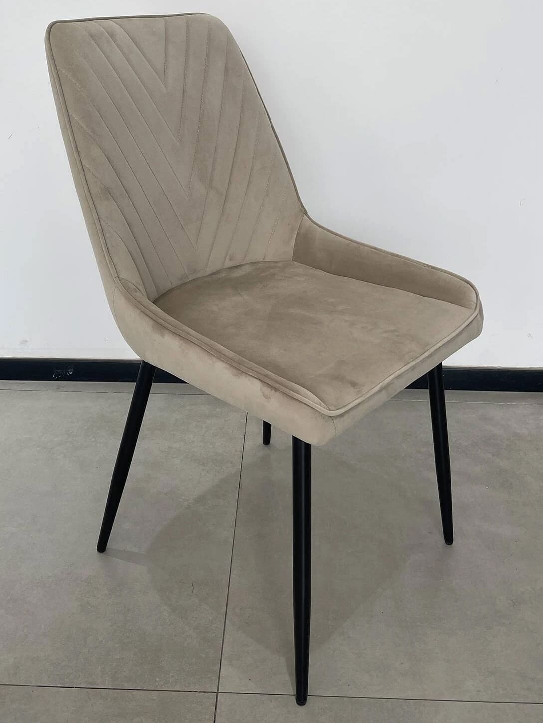 - Сидіння і спинка оббиті щільною тканиною з фактурною стібкою, яка не тільки надає візуального об'єму, але й робить кухонний стілець ще приємнішим на дотик.