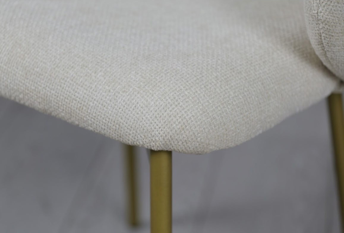 - Витончене поєднання тканини в кольорі айворі та золотих металевих ніжок.