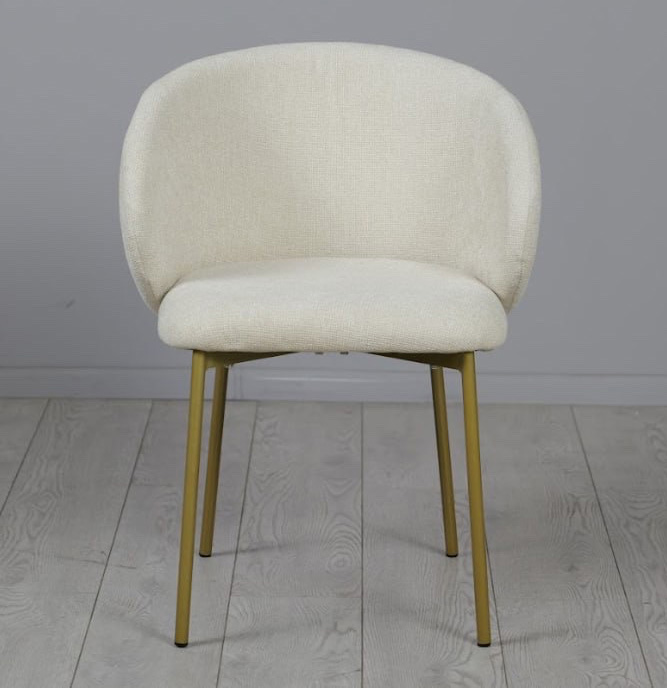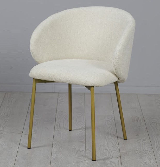 Стілець Софі – привертає увагу м'якими округлими лініями та легкістю силуету. Завдяки універсальному кольору стілець легко поєднується з будь-якими меблями на кухні або вітальні, а золоте покриття металевих ніжок надає вишуканого акценту.