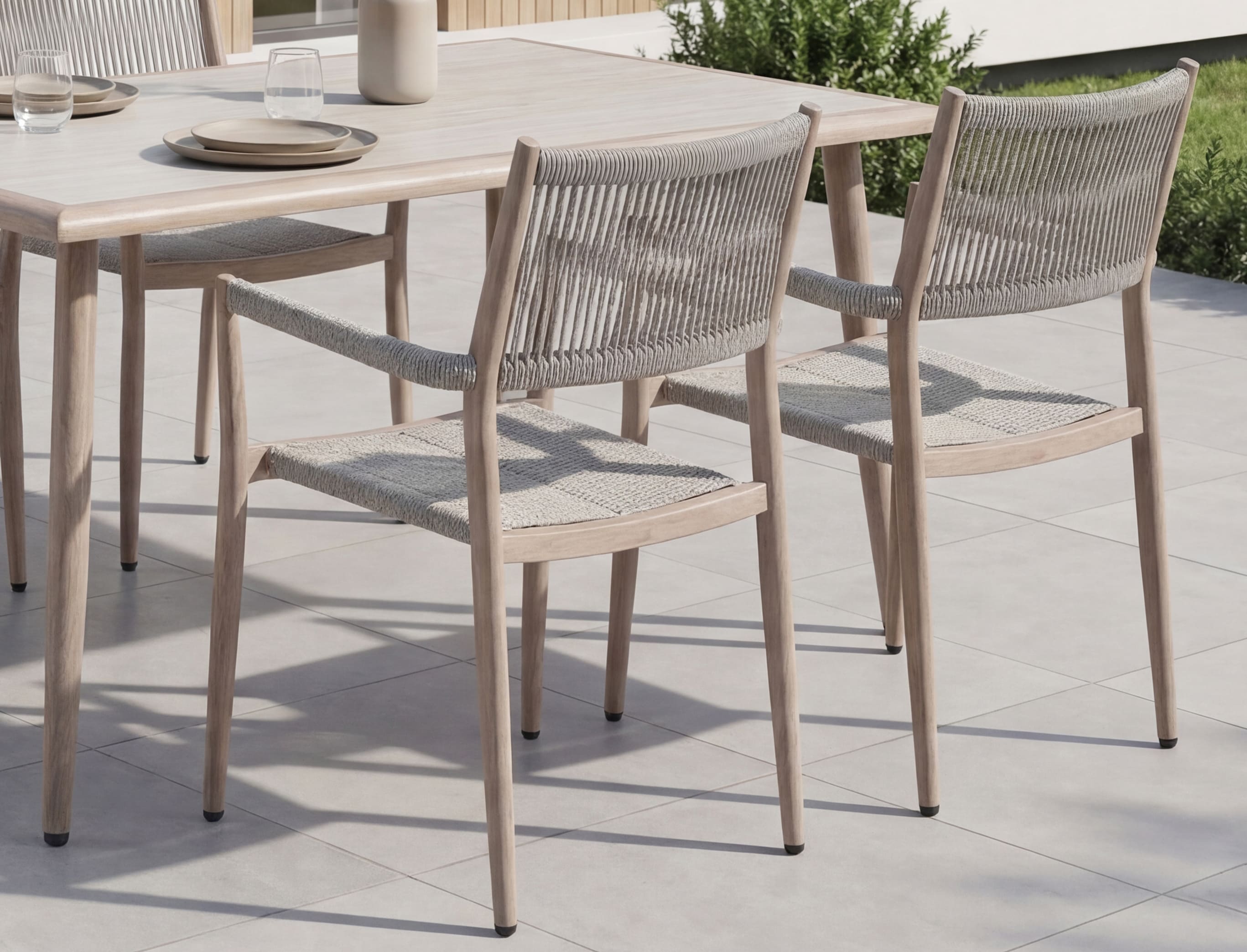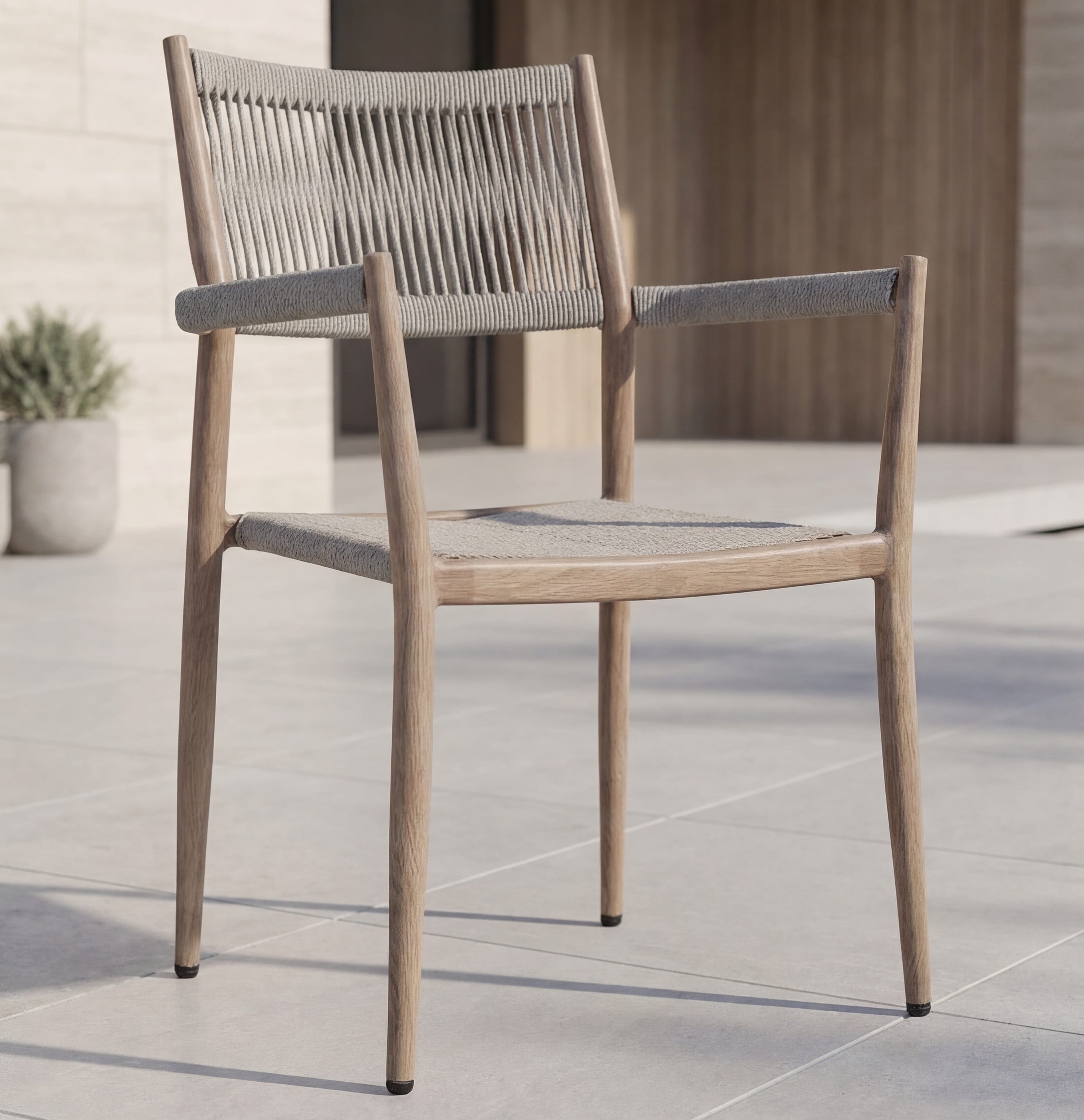 Садовий стілець Етна ODC-15 від Vetro – стильне рішення для тераси, саду чи балкону. Металевий каркас з покриттям під дерево у поєднанні з плетінням із міцного синтетичного шнура забезпечує легкість, комфорт та стійкість до зовнішніх умов.