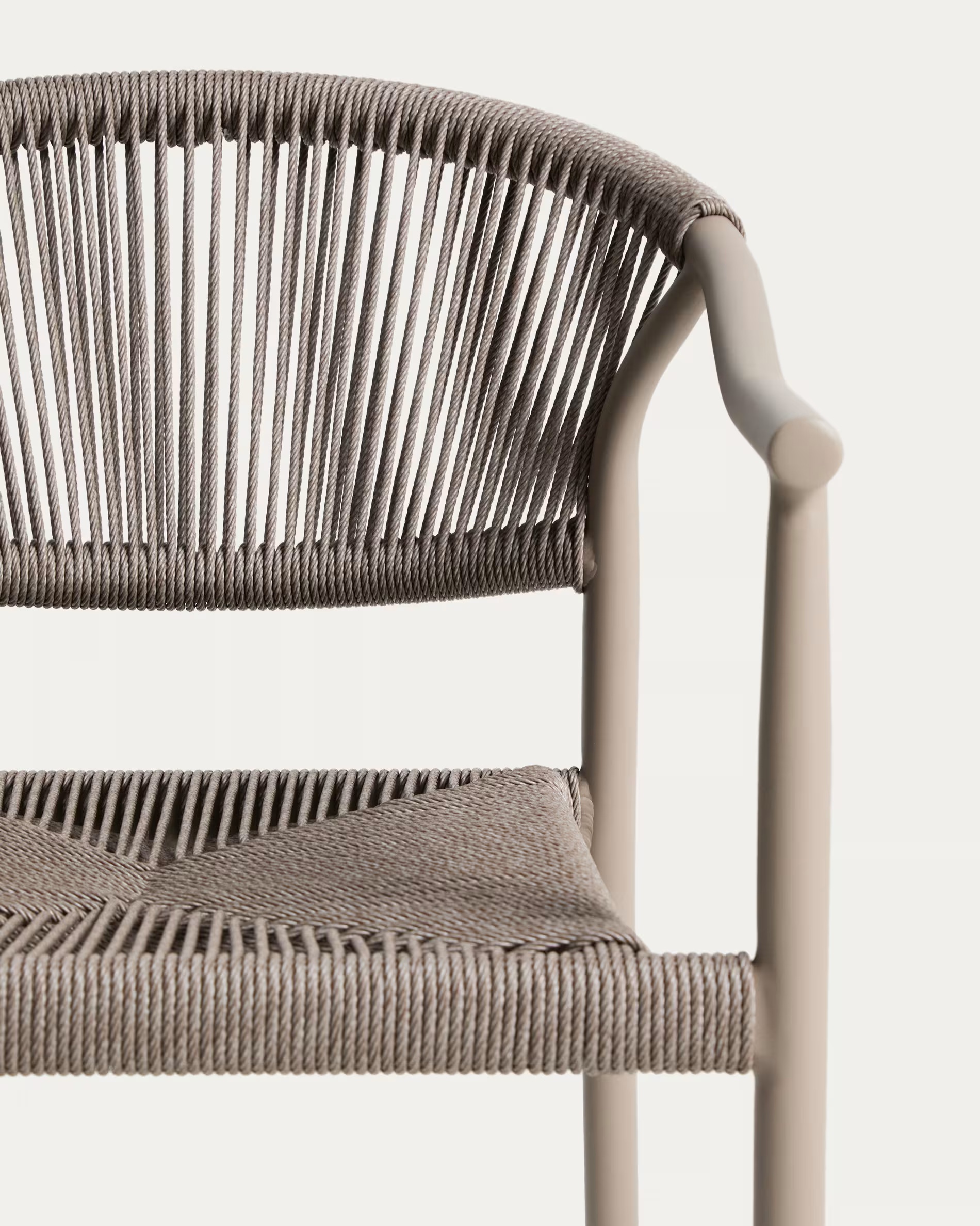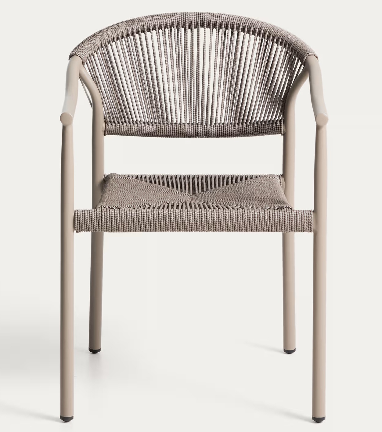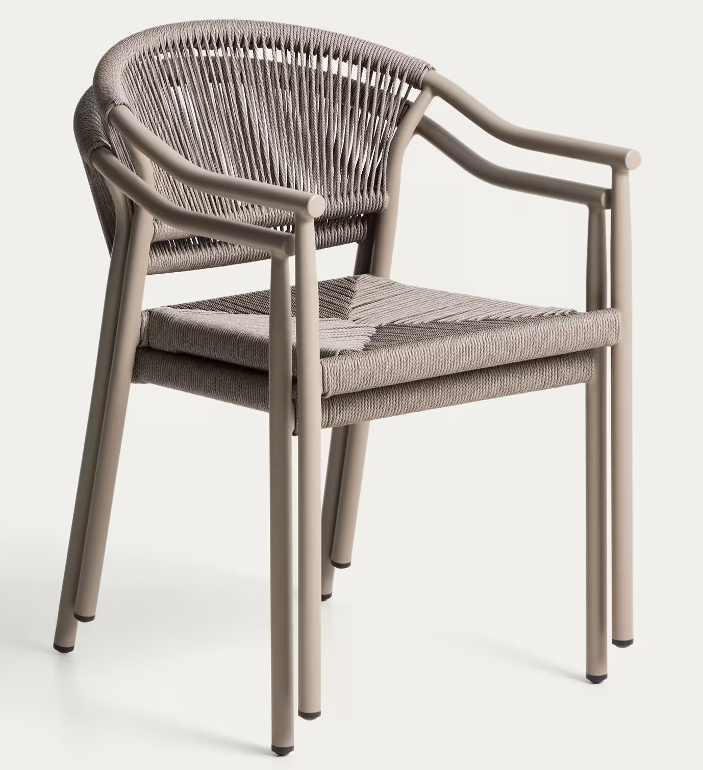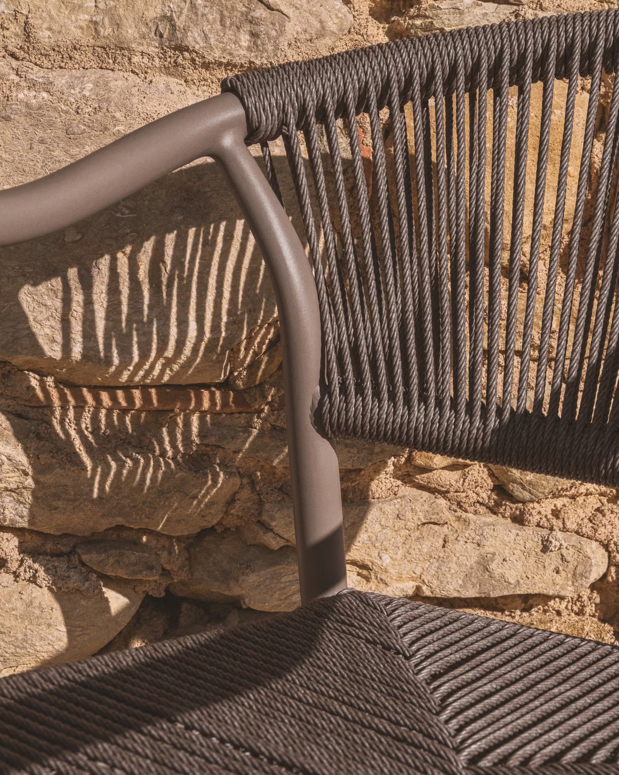 Вуличний стілець La Forma Livadia Сіро-коричневий - сучасний стілець для тераси, балкону або кафе. Легкий алюмінієвий каркас стійкий до вологи, корозії та ультрафіолету, а плетене сидіння із синтетичної мотузки забезпечує комфорт та вентиляцію. Підходить для використання на вулиці та в приміщенні, легко штабелюється.