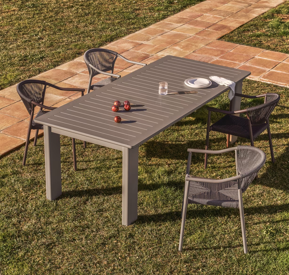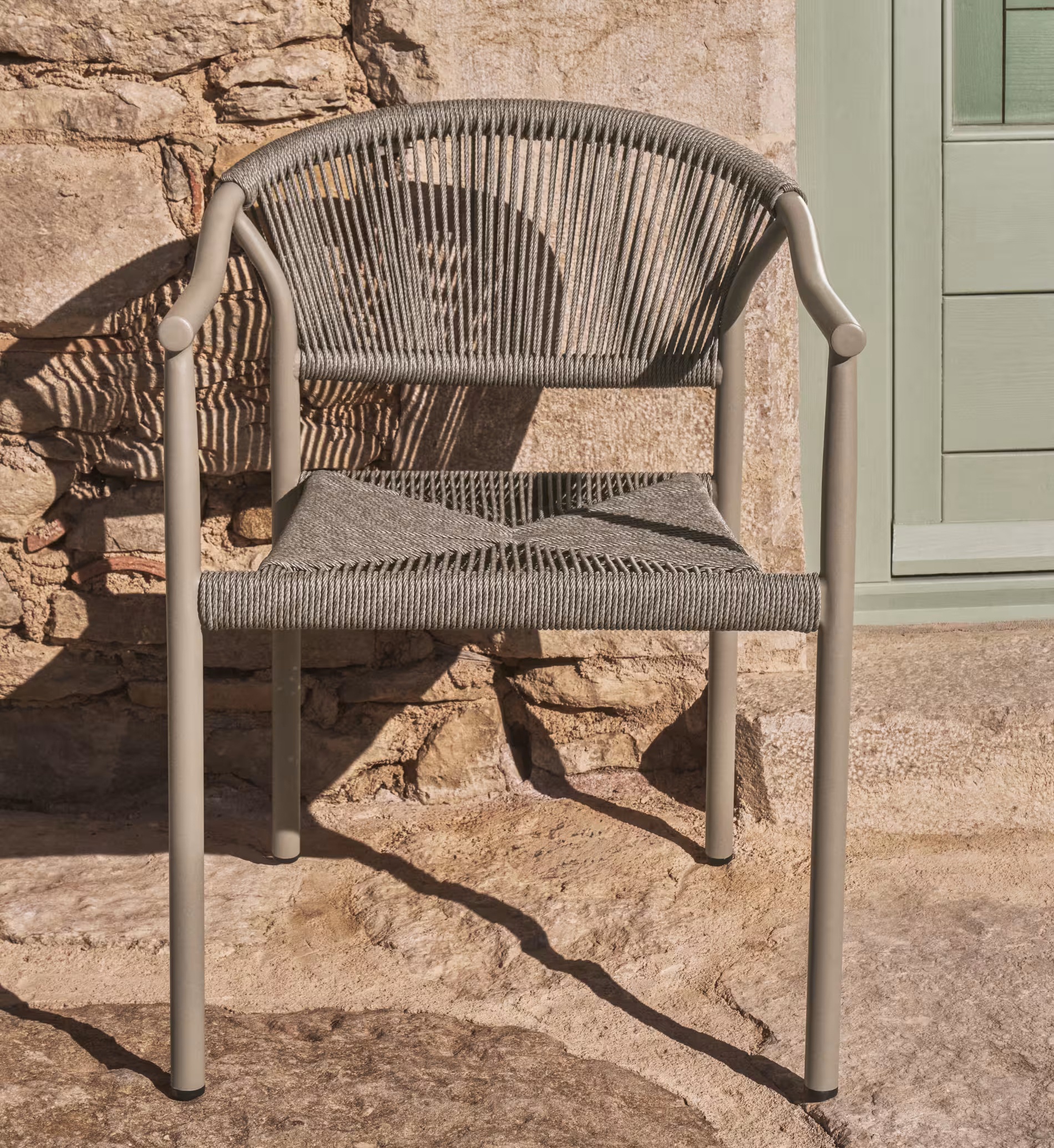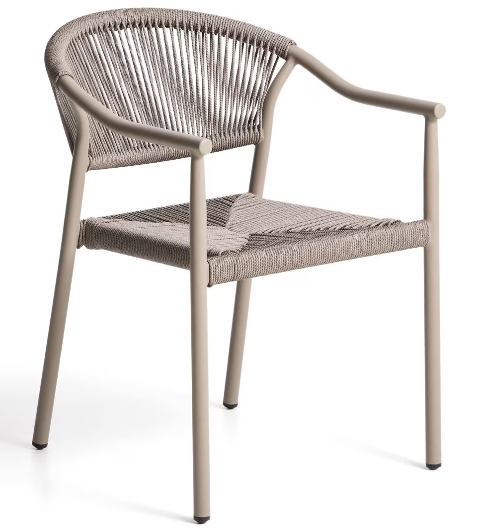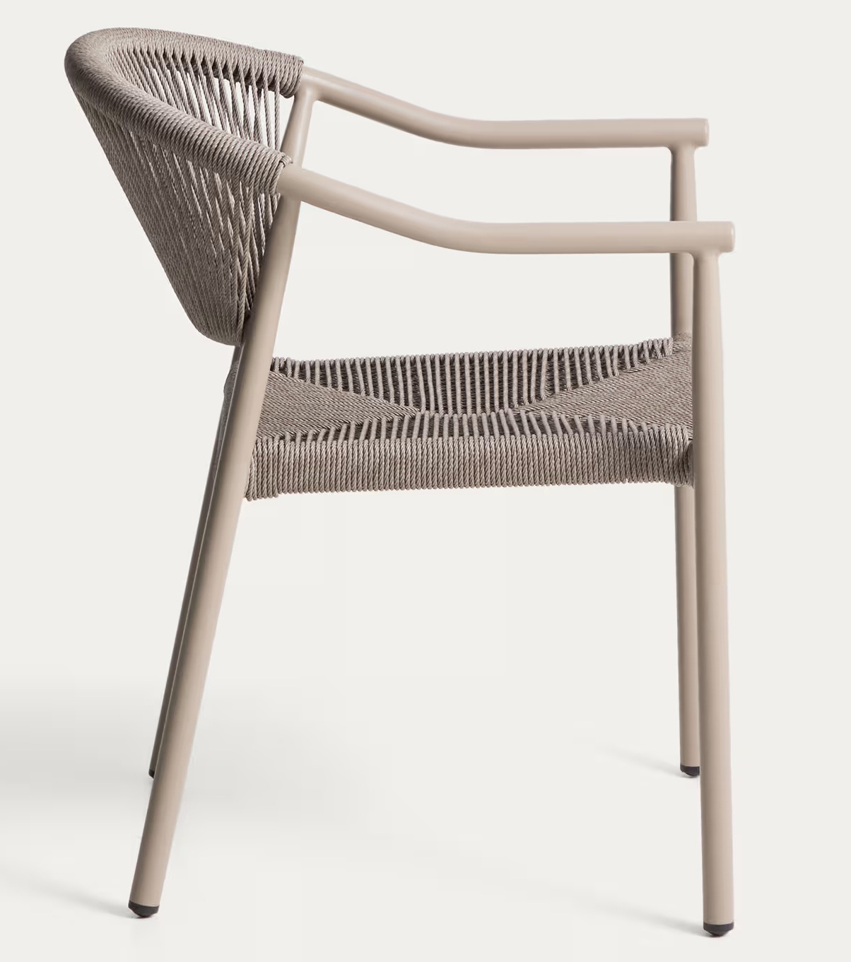 Вуличний стілець La Forma Livadia Сіро-коричневий - сучасний стілець для тераси, балкону або кафе. Легкий алюмінієвий каркас стійкий до вологи, корозії та ультрафіолету, а плетене сидіння із синтетичної мотузки забезпечує комфорт та вентиляцію. Підходить для використання на вулиці та в приміщенні, легко штабелюється.