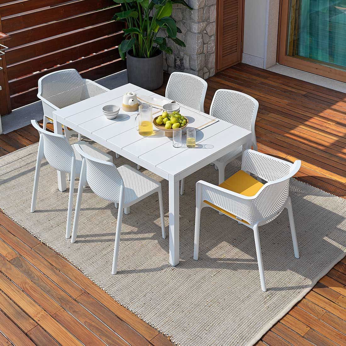 Стілець Net що штабелюється, зроблений з пофарбованого поліпропілену. Матове покриття захищене від ультрафіолету. Нековзні ніжки. Додатково можна замовити подушку.
