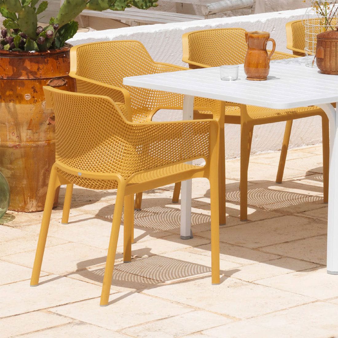 Стілець Net що штабелюється, зроблений з пофарбованого поліпропілену. Матове покриття захищене від ультрафіолету. Нековзні ніжки. Додатково можна замовити подушку.