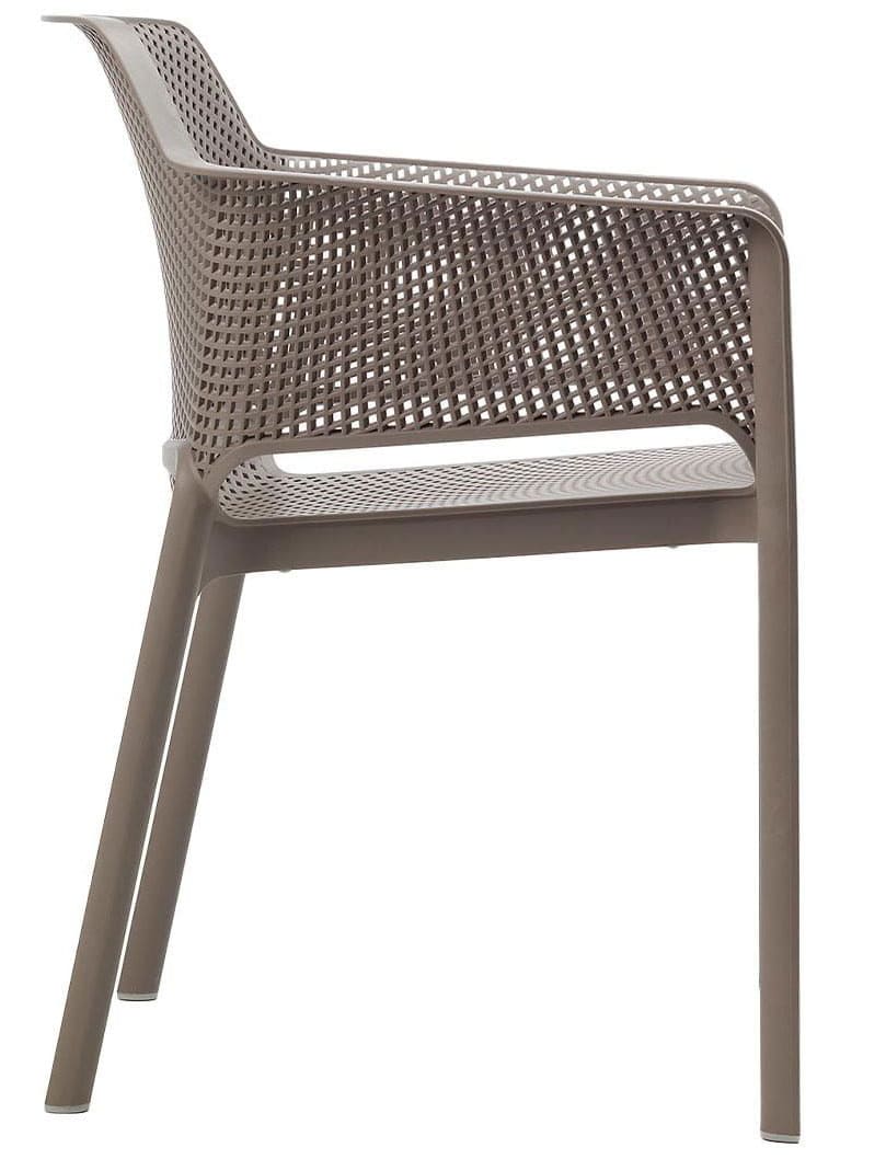 Стілець Net що штабелюється, зроблений з пофарбованого поліпропілену. Матове покриття захищене від ультрафіолету. Нековзні ніжки. Додатково можна замовити подушку.