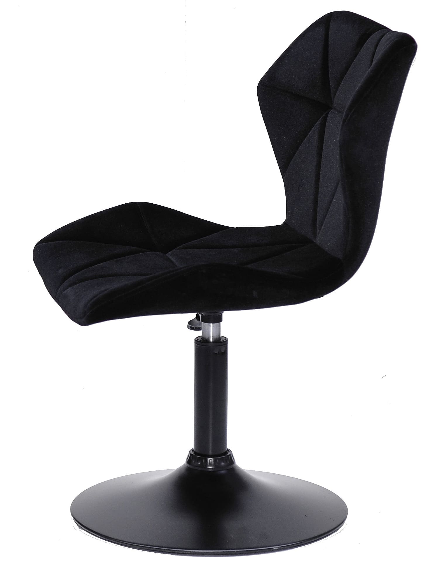 Сидіння та спинка виконані в приємній на дотик оббивці з чорного оксамиту, яка надає стільцю елегантності та візуальної м’якості. Міцний металевий каркас та стійка основа забезпечують стабільність і довговічність при щоденному використанні.