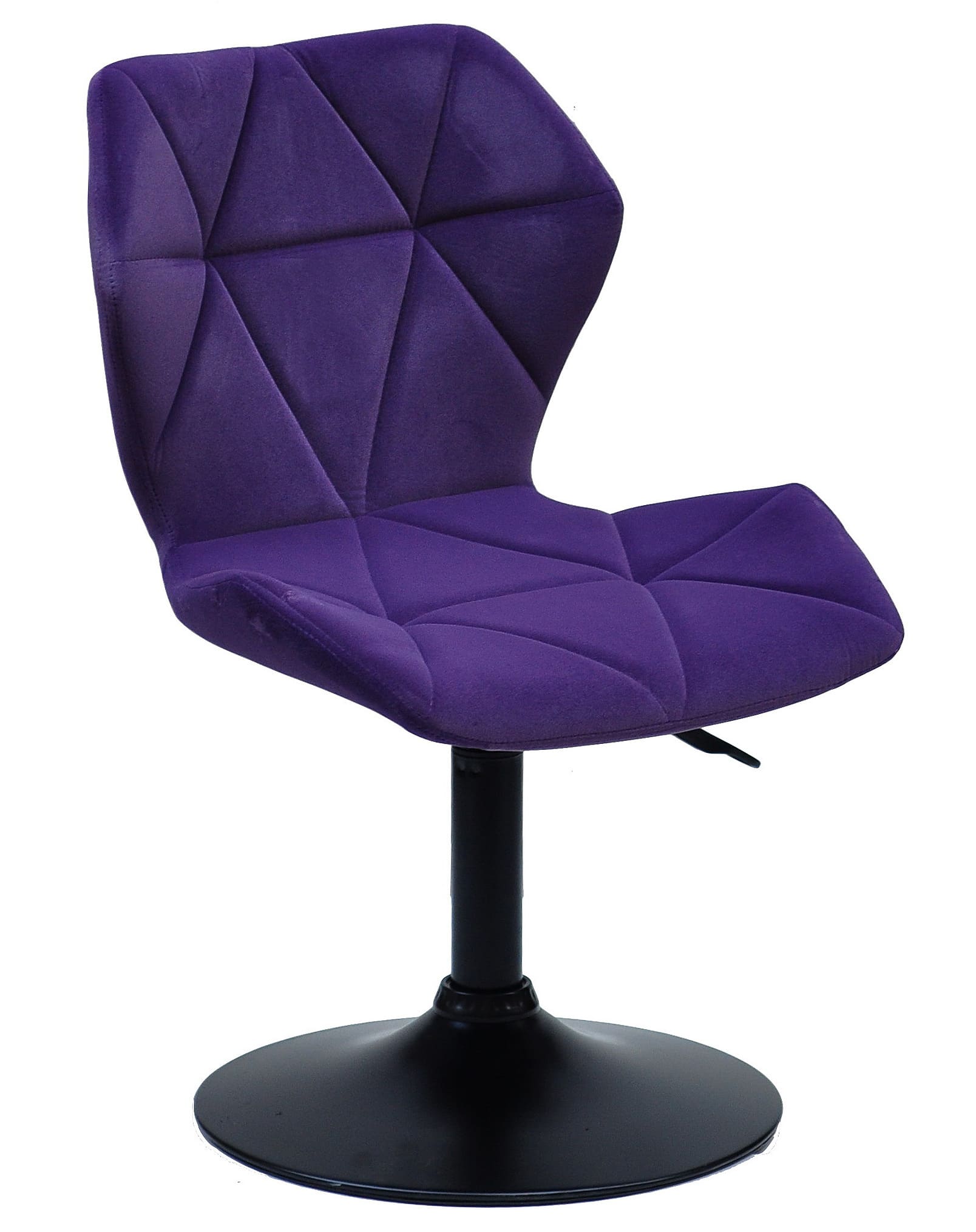 Сидіння та спинка виконані в приємній на дотик оббивці з пурпурового оксамиту, яка надає стільцю елегантності та візуальної м’якості. Міцний металевий каркас та стійка основа забезпечують стабільність і довговічність при щоденному використанні.