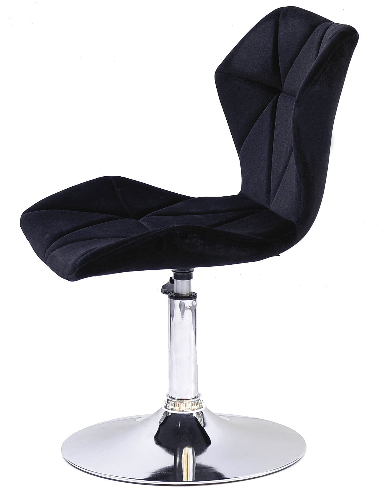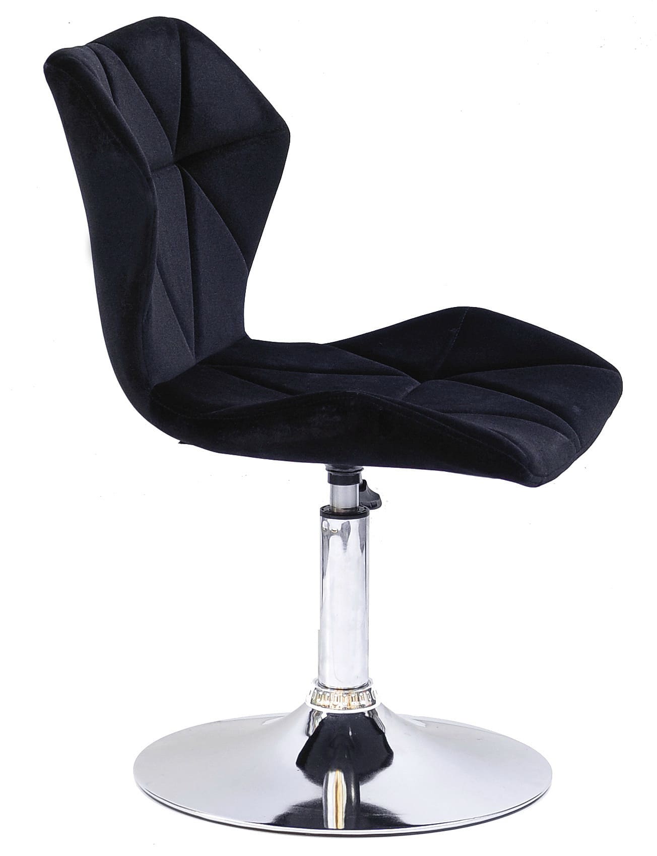 Сидіння та спинка виконані в приємній на дотик оббивці з оксамиту чорного кольору, яка надає стільцю елегантності та візуальної м’якості. Міцний металевий каркас та стійка основа забезпечують стабільність і довговічність при щоденному використанні.