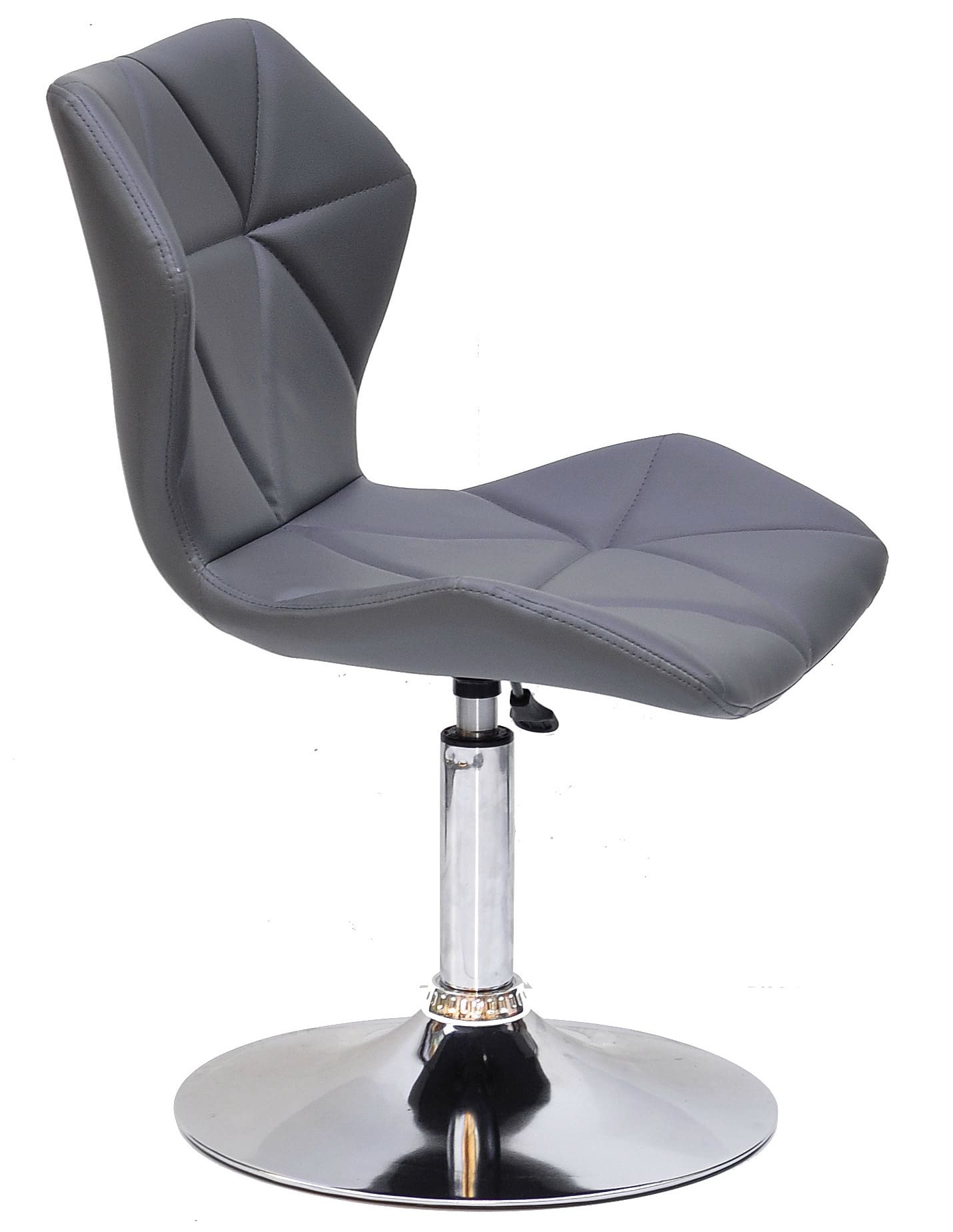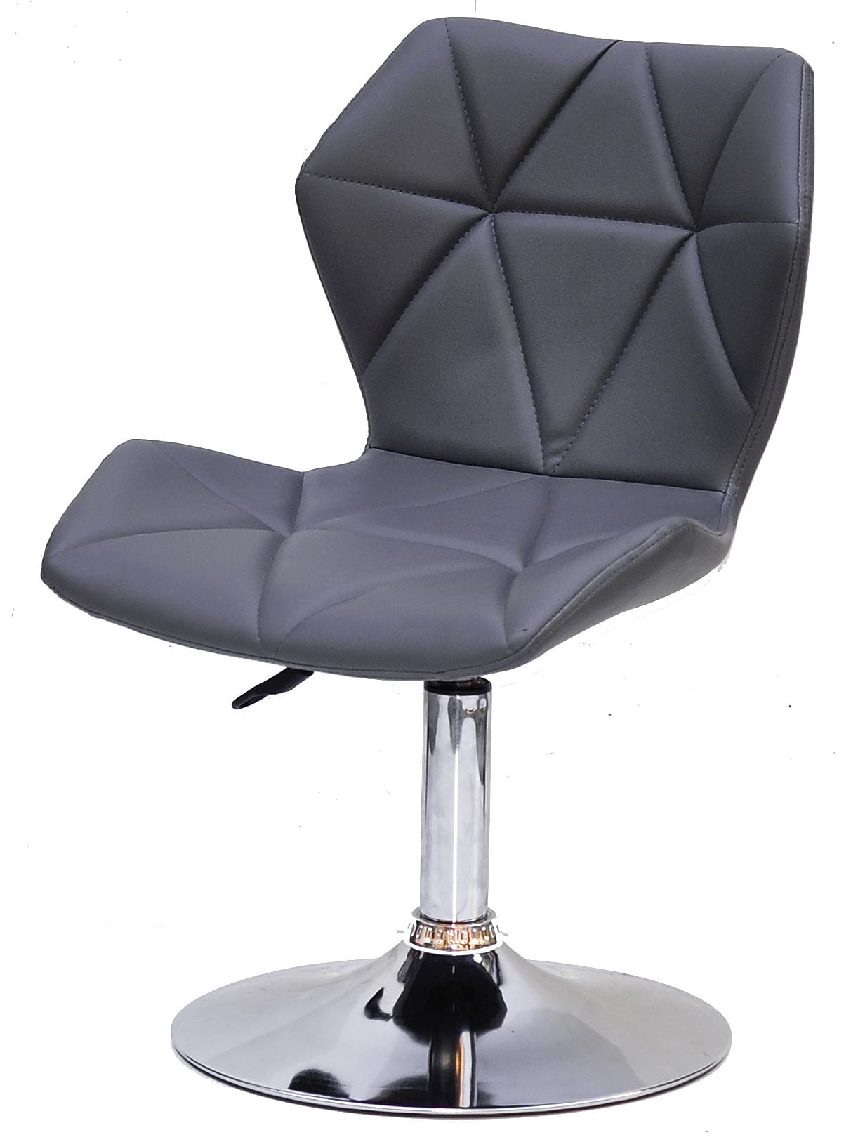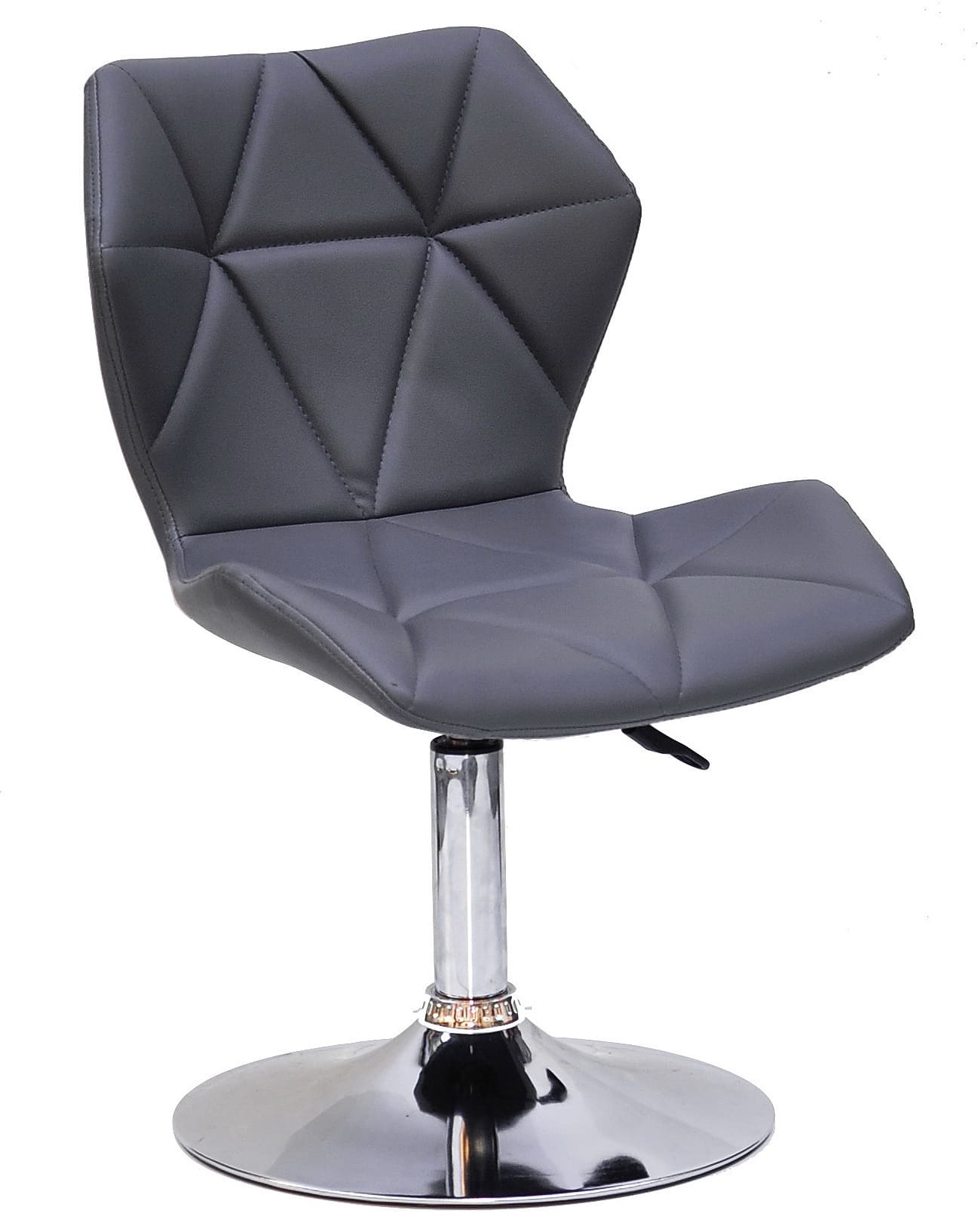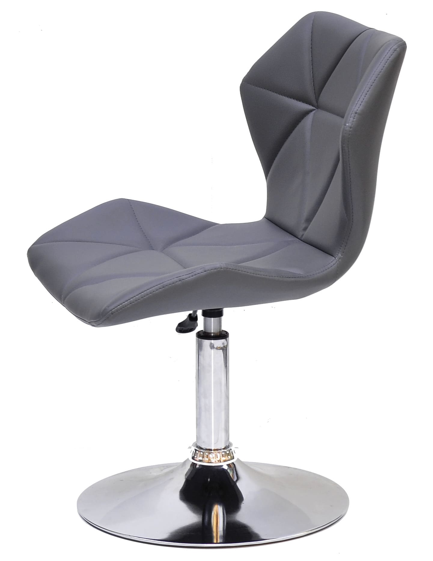 Сидіння та спинка виконані в оббивці з екошкіри сірого кольору, яка надає стільцю елегантності та візуальної м’якості. Міцний металевий каркас та стійка основа забезпечують стабільність і довговічність при щоденному використанні.