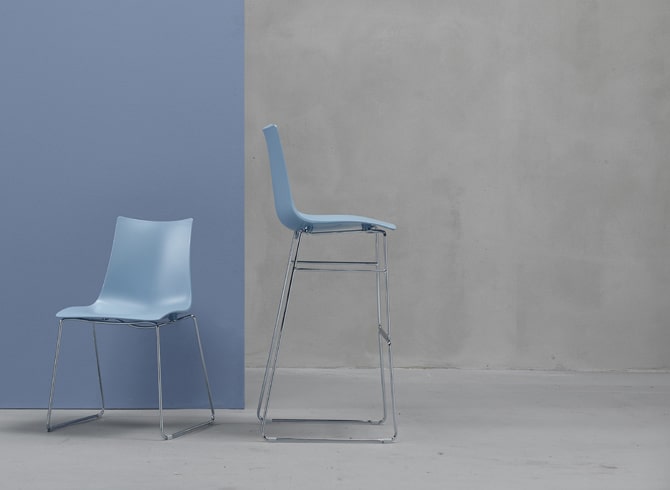 Пластиковый полубарный стул Zebra Technopolymer Barstool с корпусом из переработанного технополимера от дизайнера Luisa Battaglia. Каркас выполнен из хромированной стали диаметром 16 мм.