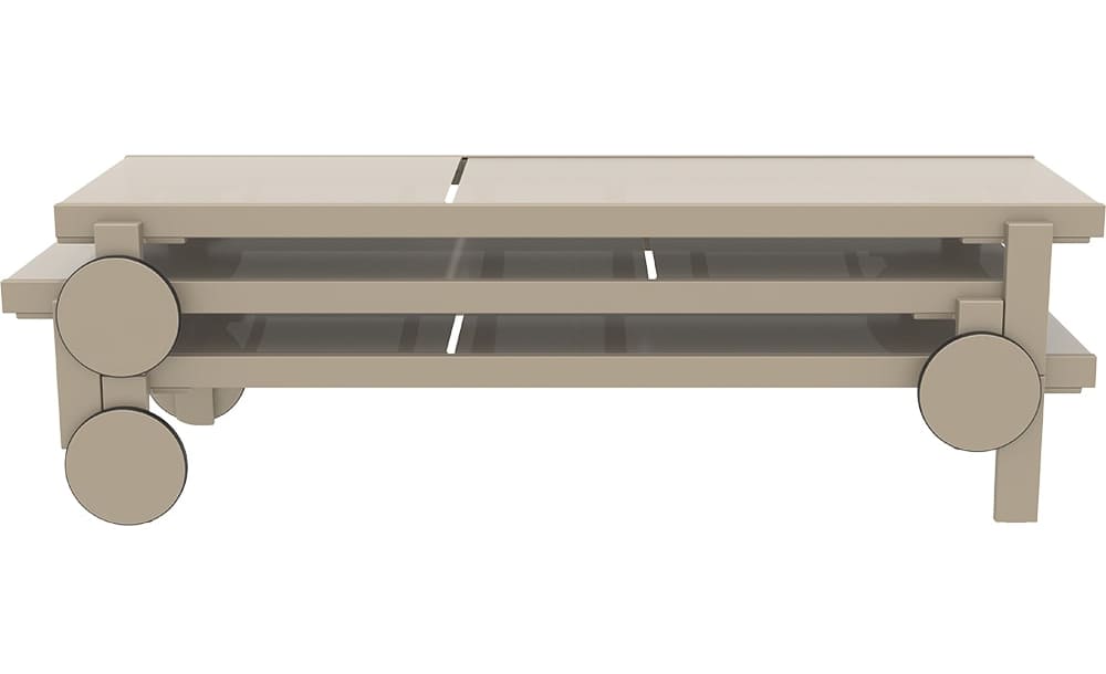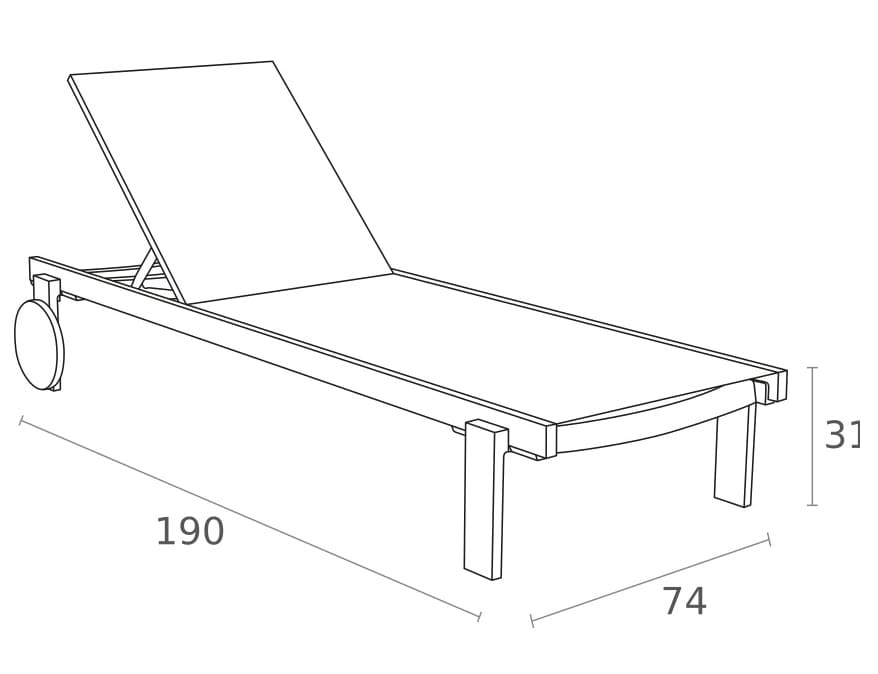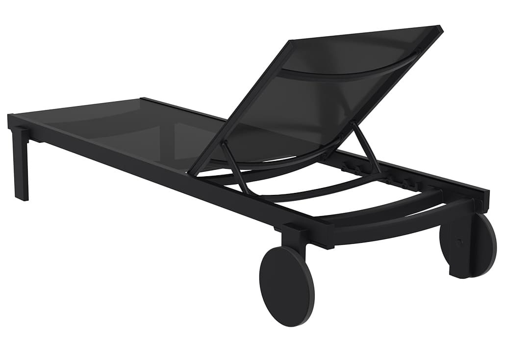 Лежак оснащений дихаючим синтетичним полотном, яке не нагрівається на сонці та легко очищується. Спинка регулюється у 5 положеннях, а колеса дозволяють зручно переміщати шезлонг. Легка, міцна та штабельована конструкція ідеально підходить для домашнього використання та HoReCa.